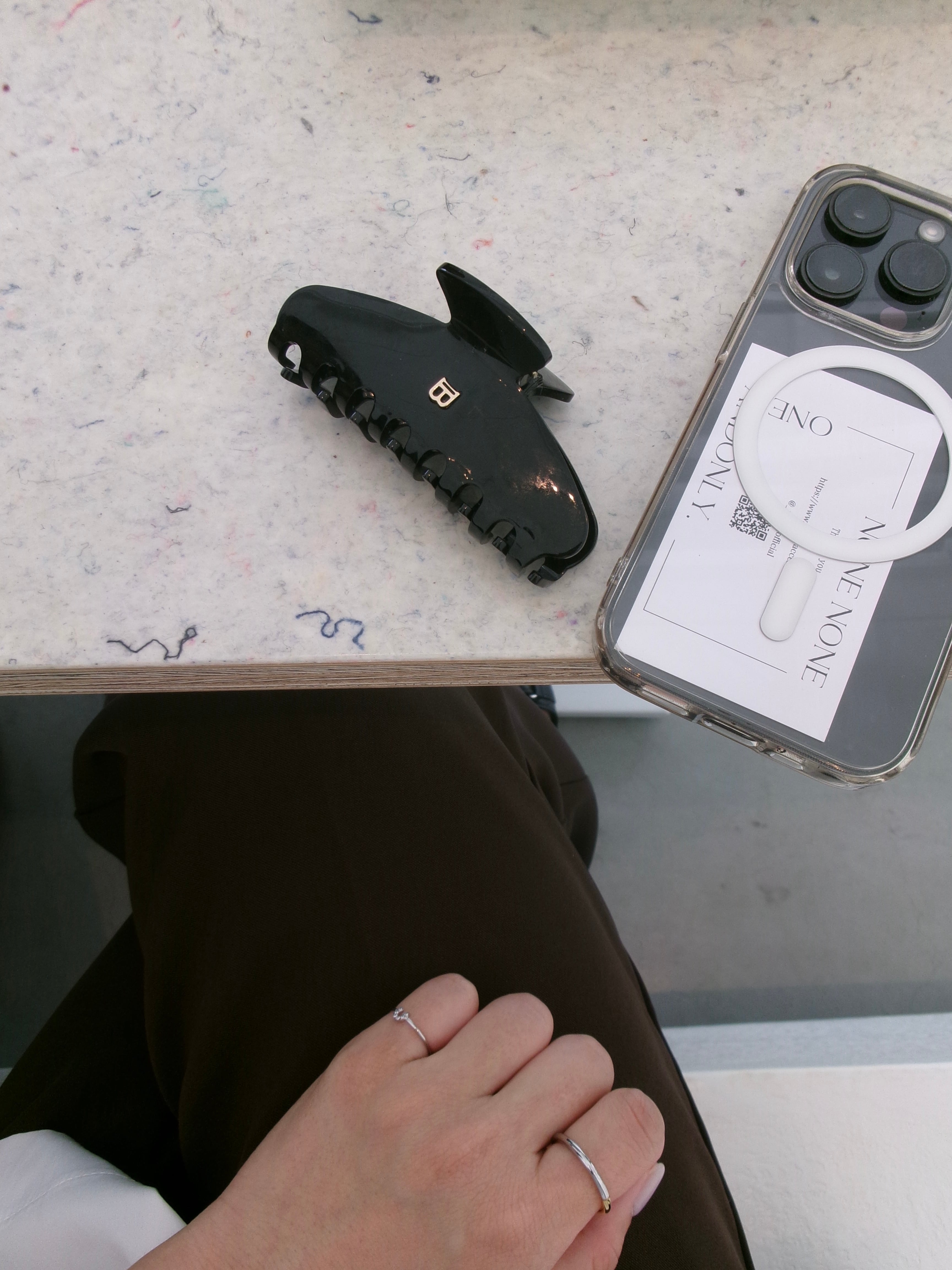 艶感のあるブラックに控えめな「B」ロゴがさりげないアクセント。まとめ髪やハーフアップに挟むだけで、こなれた雰囲気に仕上がります。