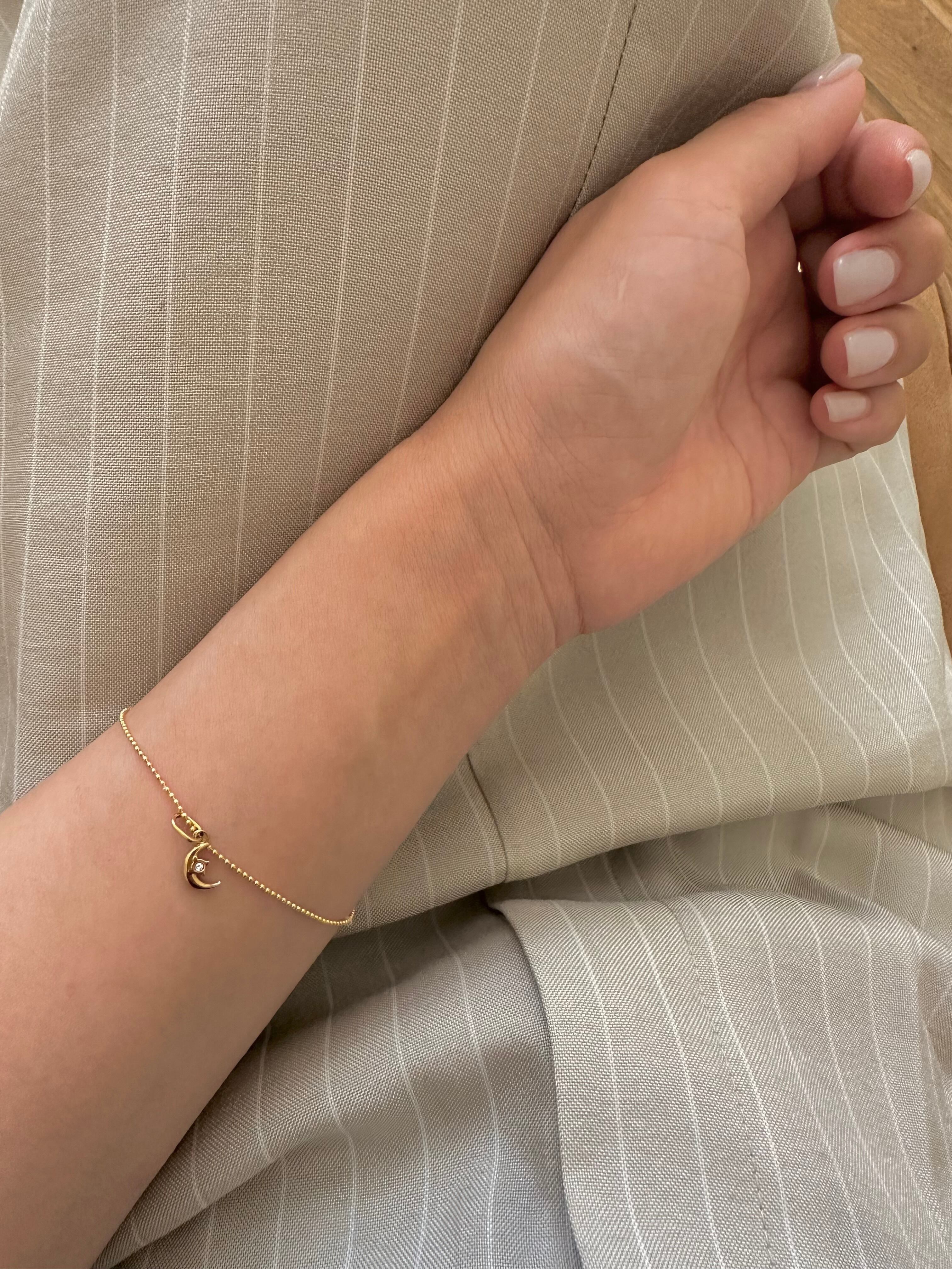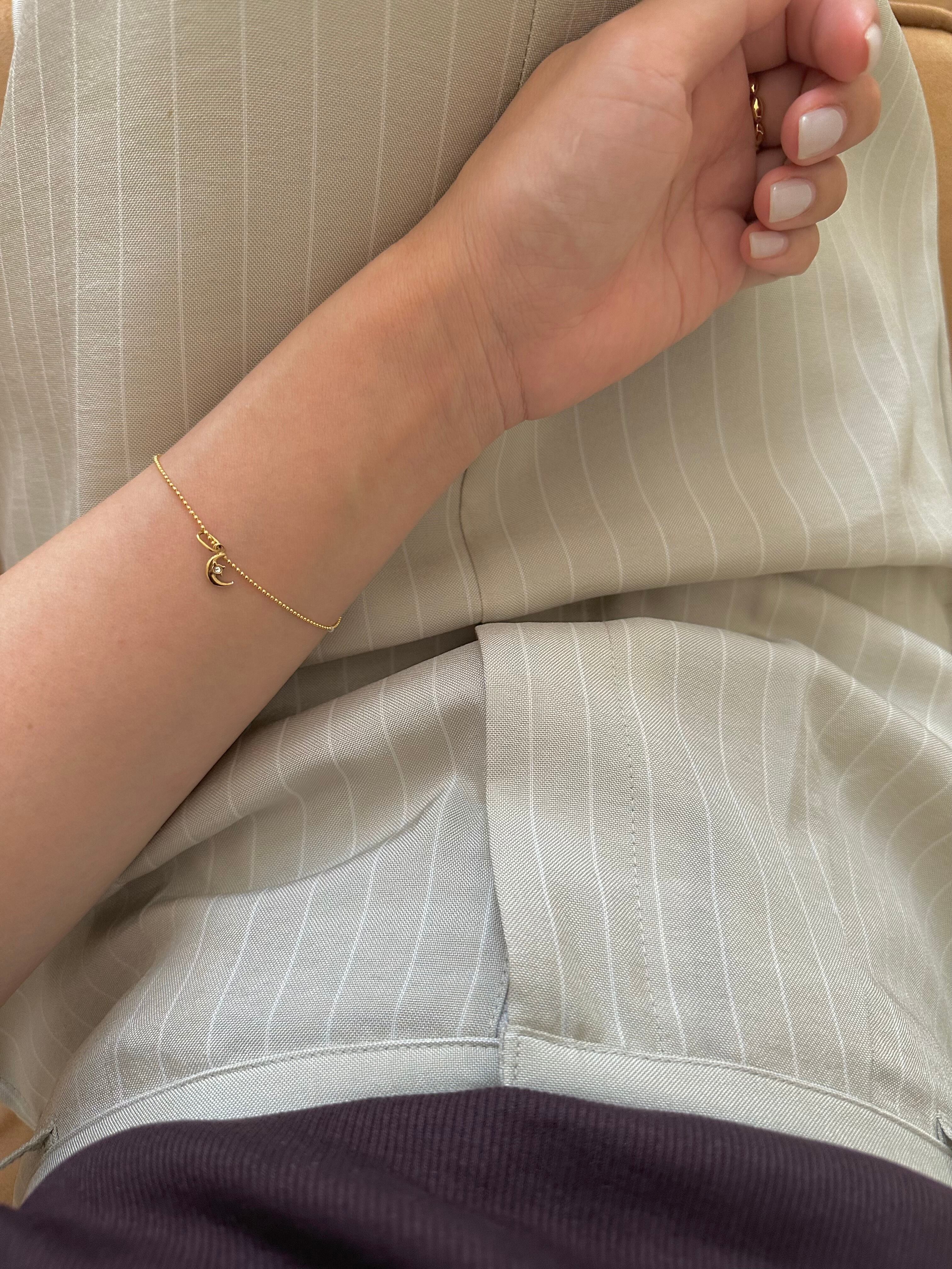 繊細なフォルムの三日月に、ひと粒のクリアストーンが輝く「SS プチムーンチャーム」。