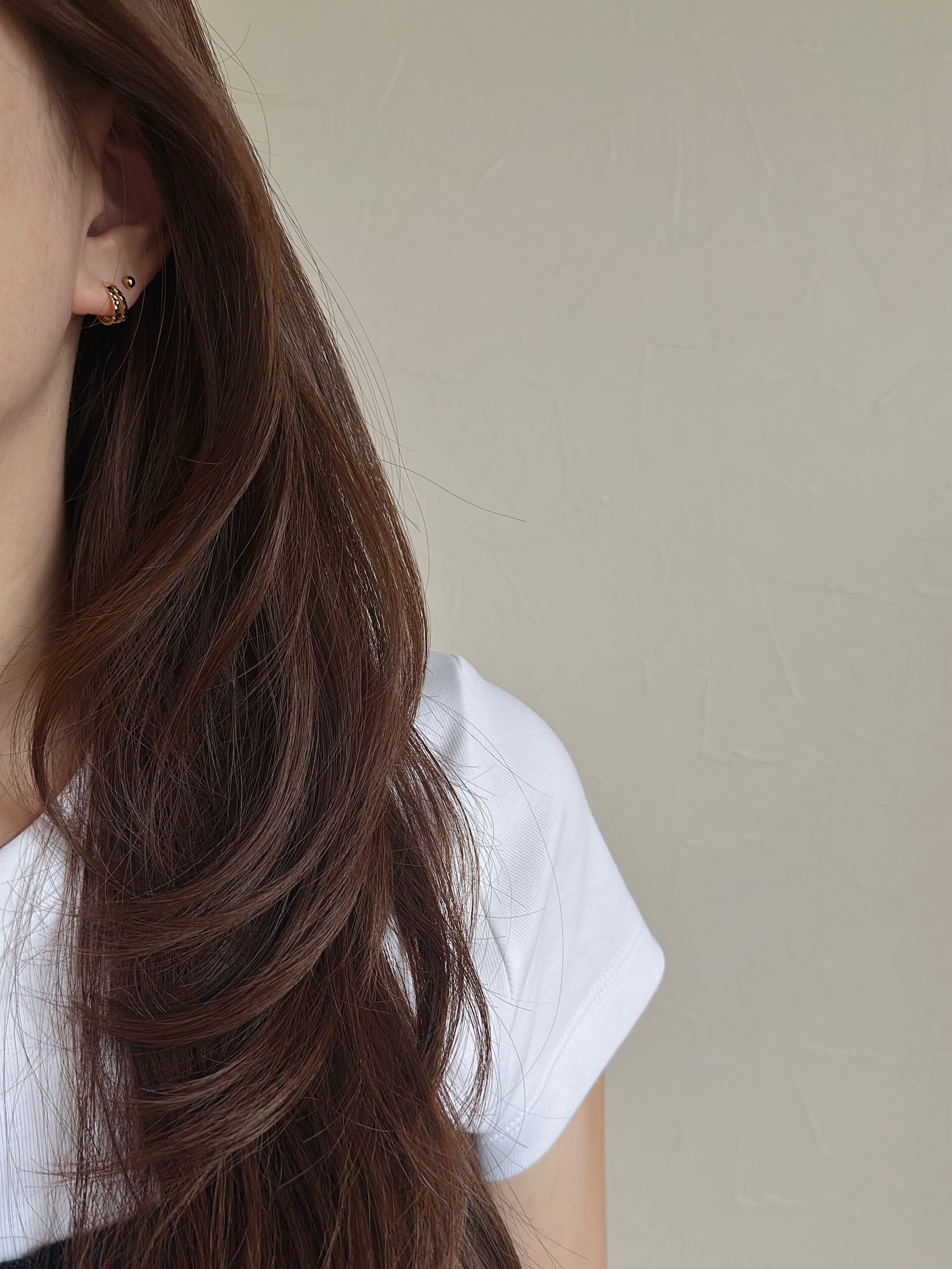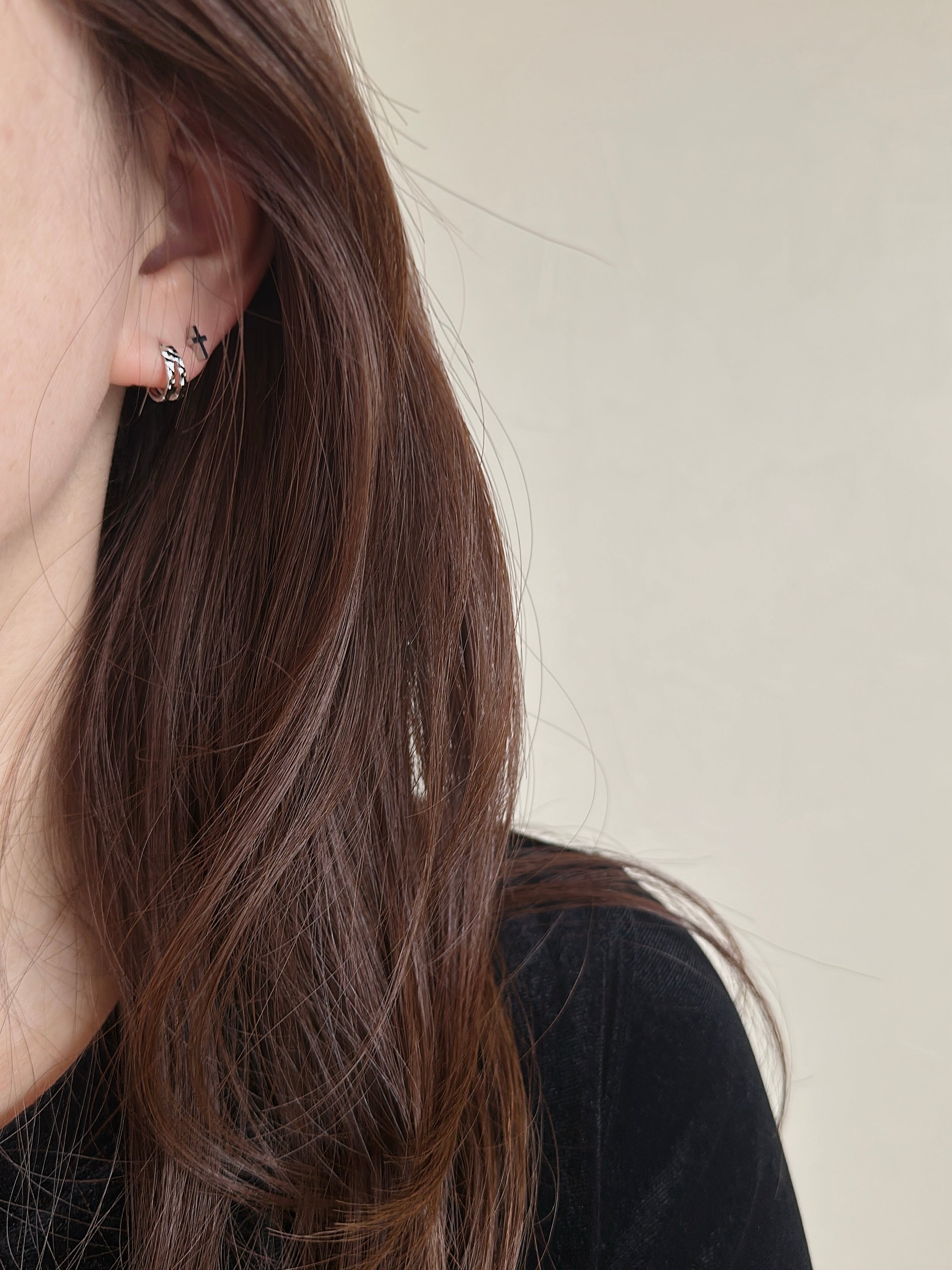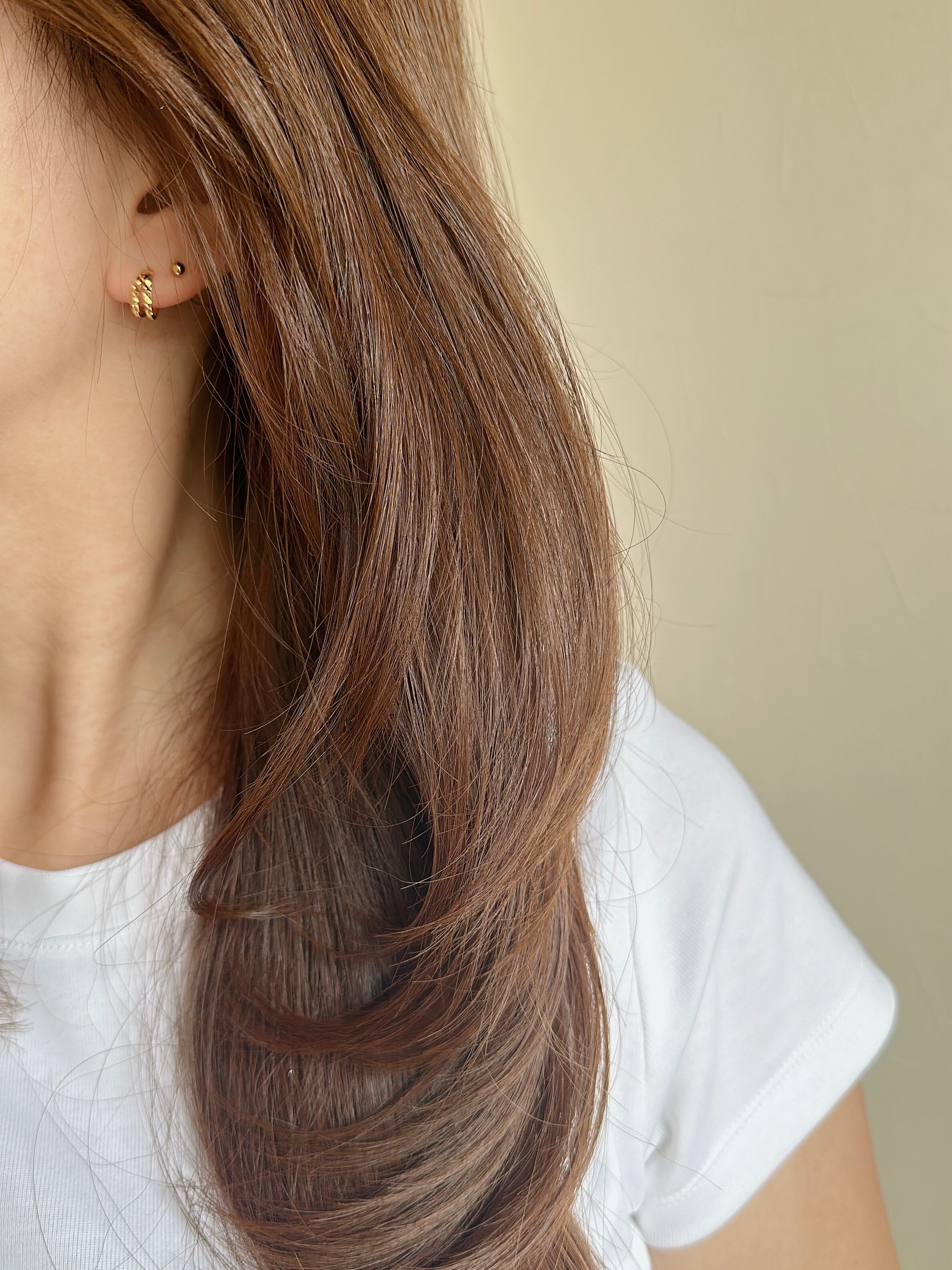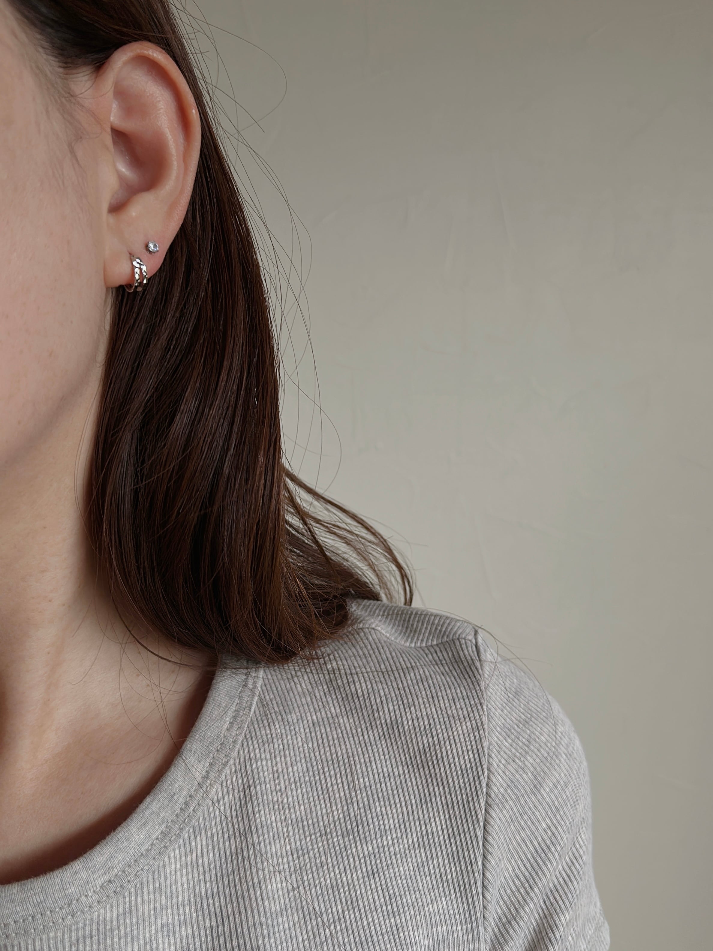 ひとつでつけるのはもちろん、手持ちの小さめピアスやイヤーカフとのレイヤードもおすすめ。