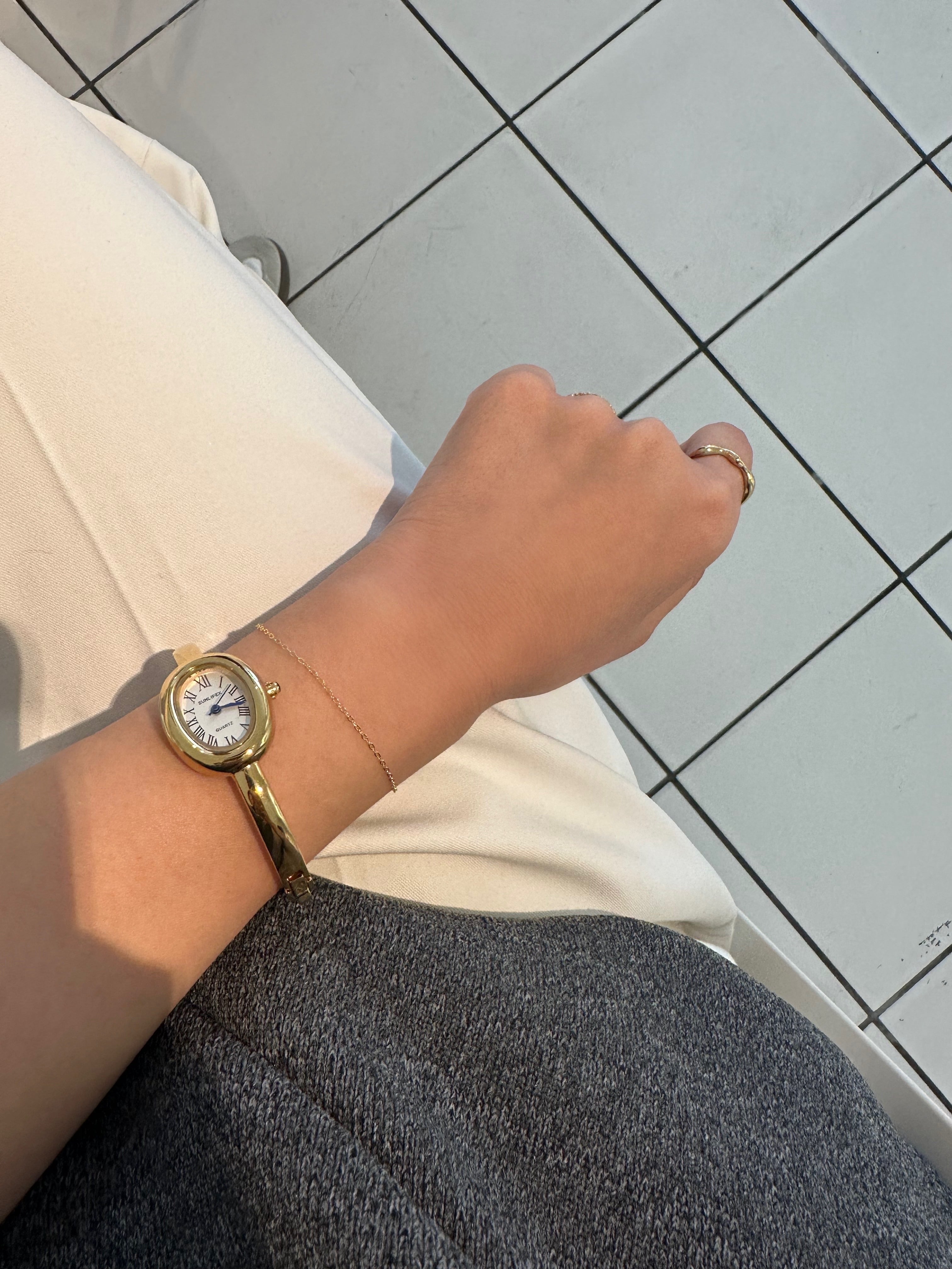 •	時計や他のブレスレットとの重ね付けも楽しめる、万能アクセ