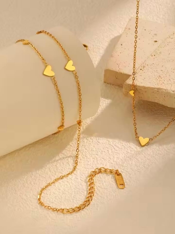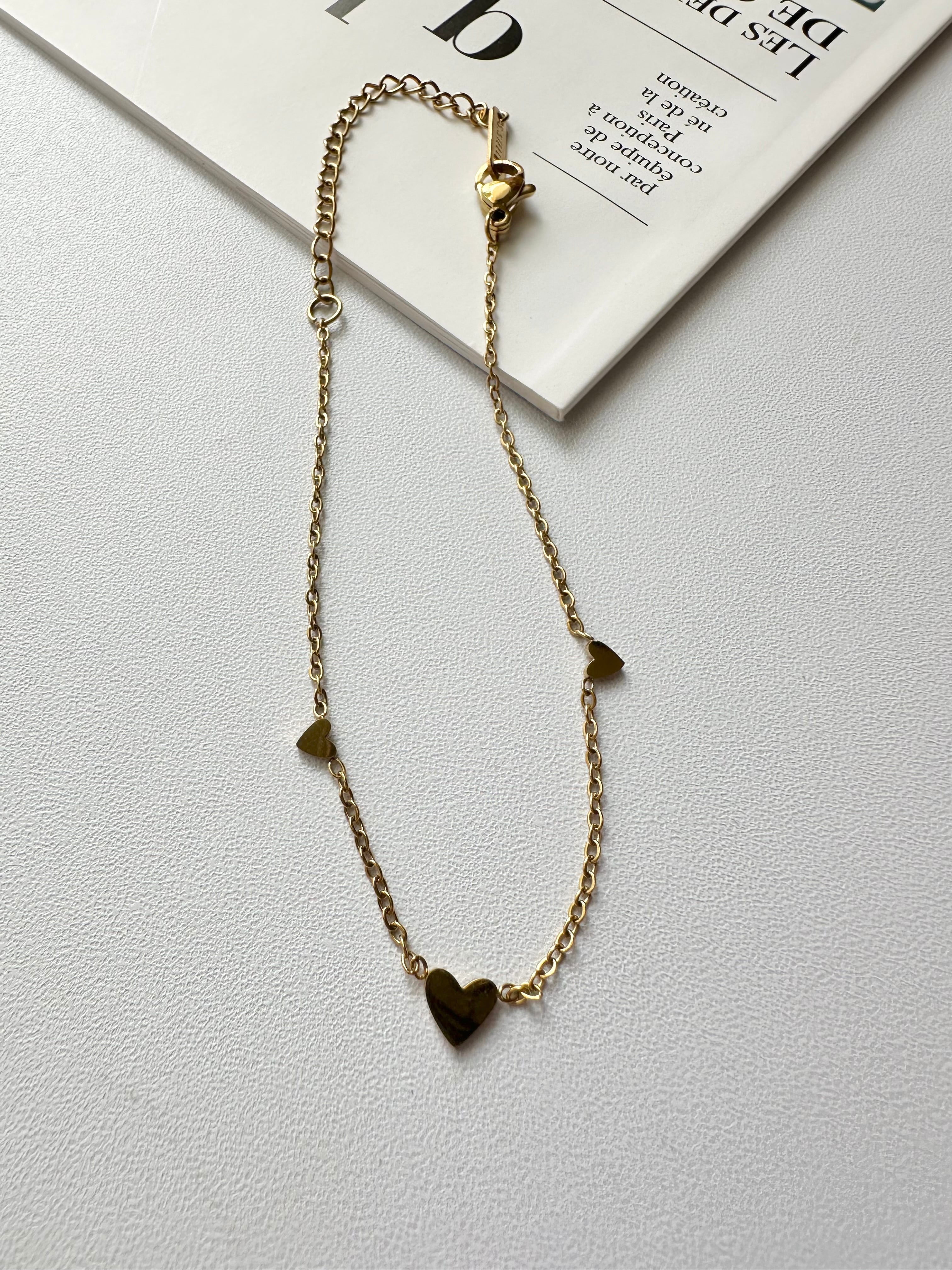 繊細なチェーンに並んだ3つのハートモチーフが、あなたの日常にさりげなく輝きを添えます。