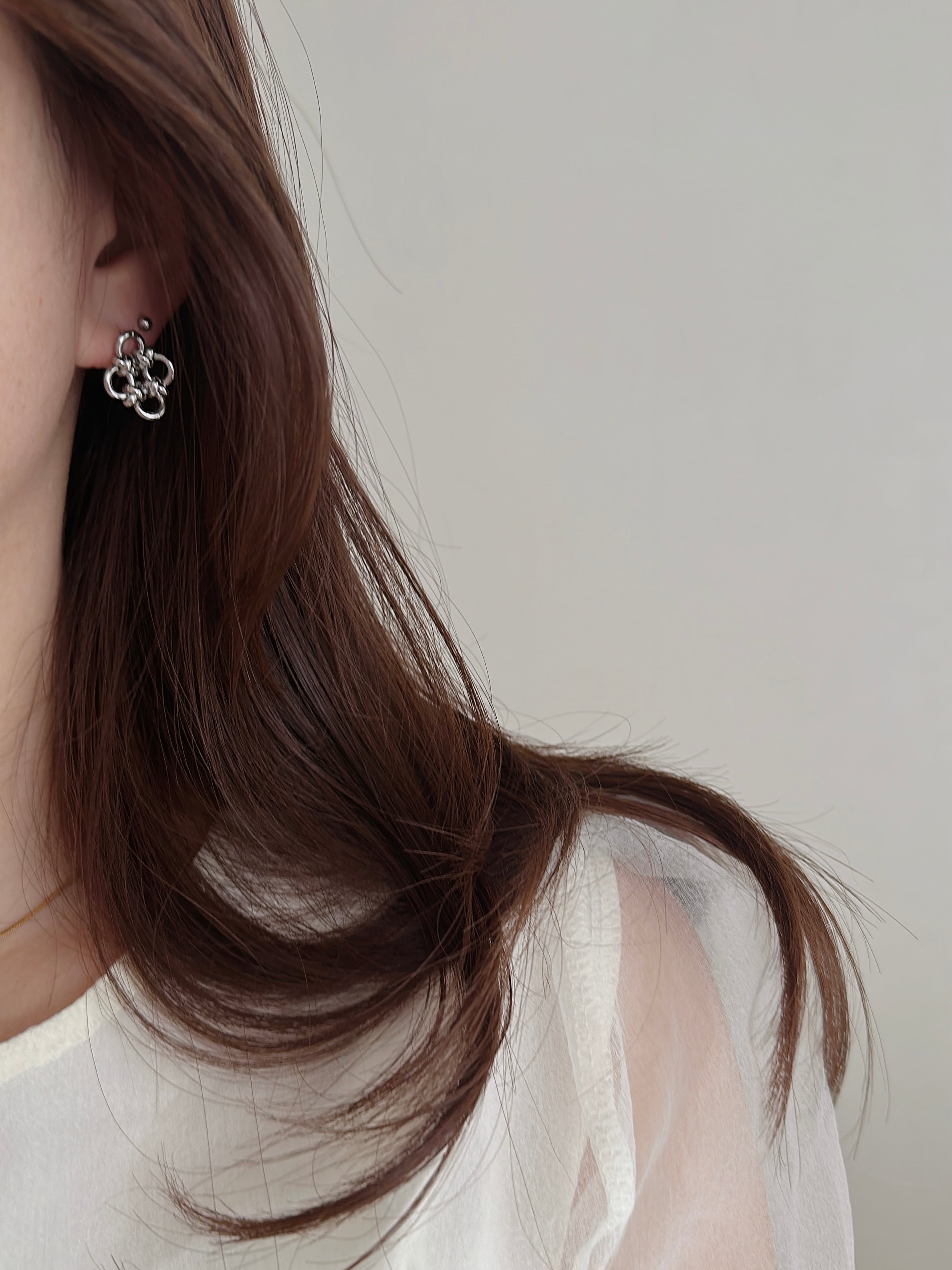 細やかなディテールと個性が光る「S925 ノットクローバーピアス」は、