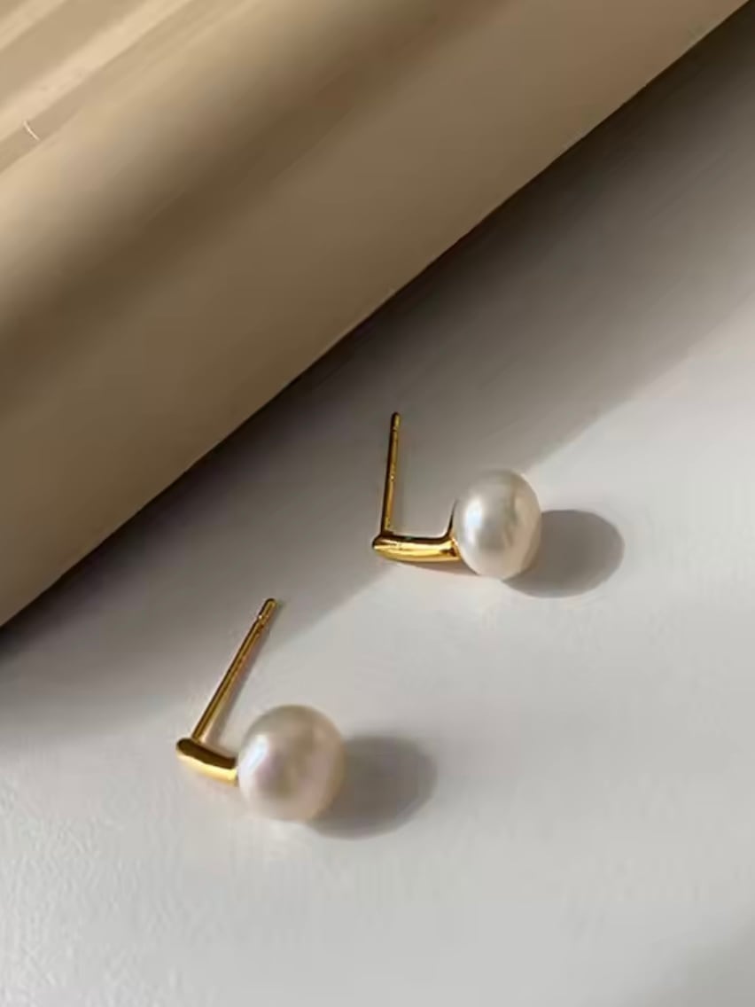 上品なパールとS字型フープが織りなす、洗練されたデザインの「S925 シンプルパールピアス」。