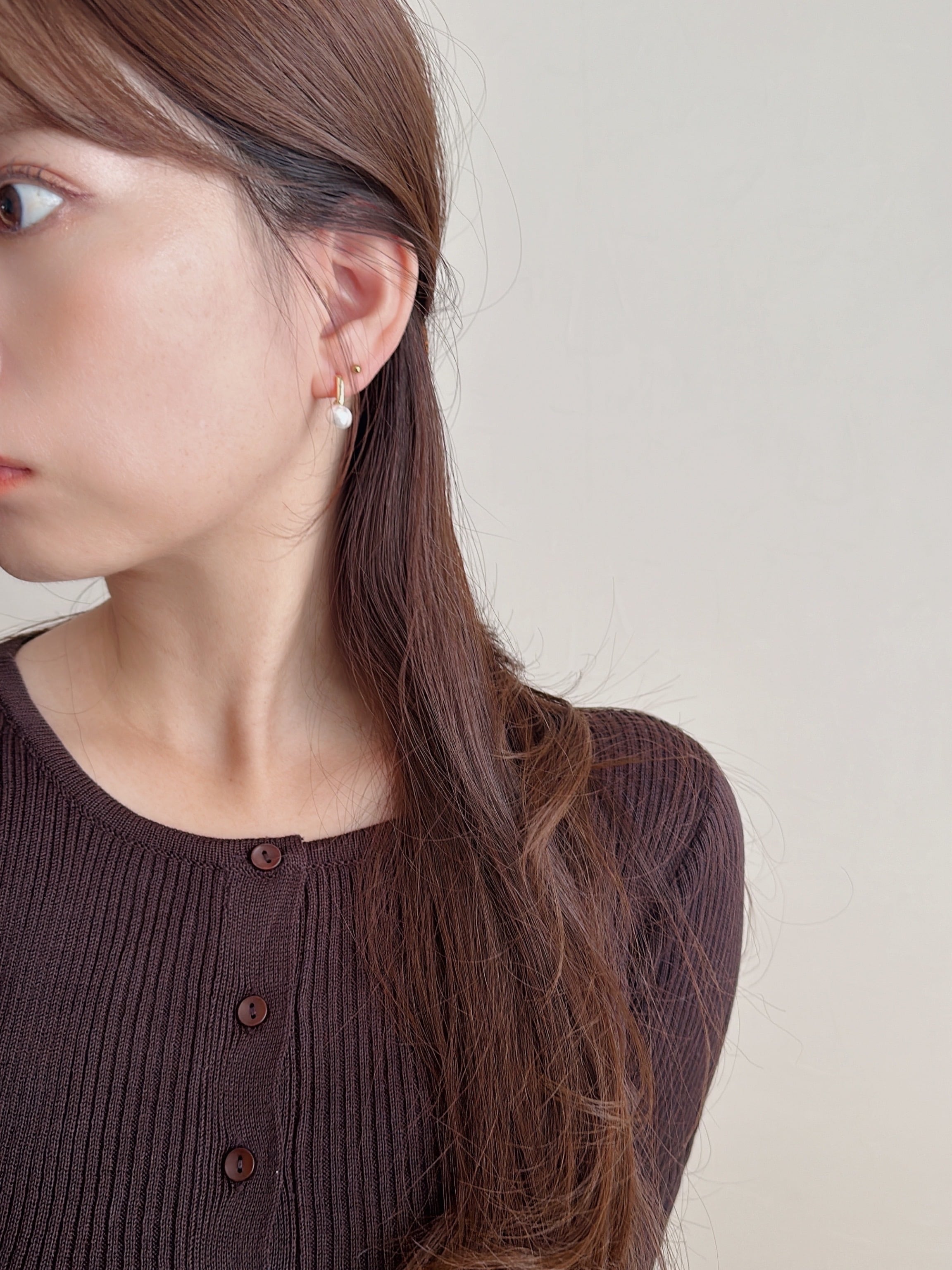 柔らかな艶を放つ一粒パールが、耳元にさりげない華やかさを添えてくれます。