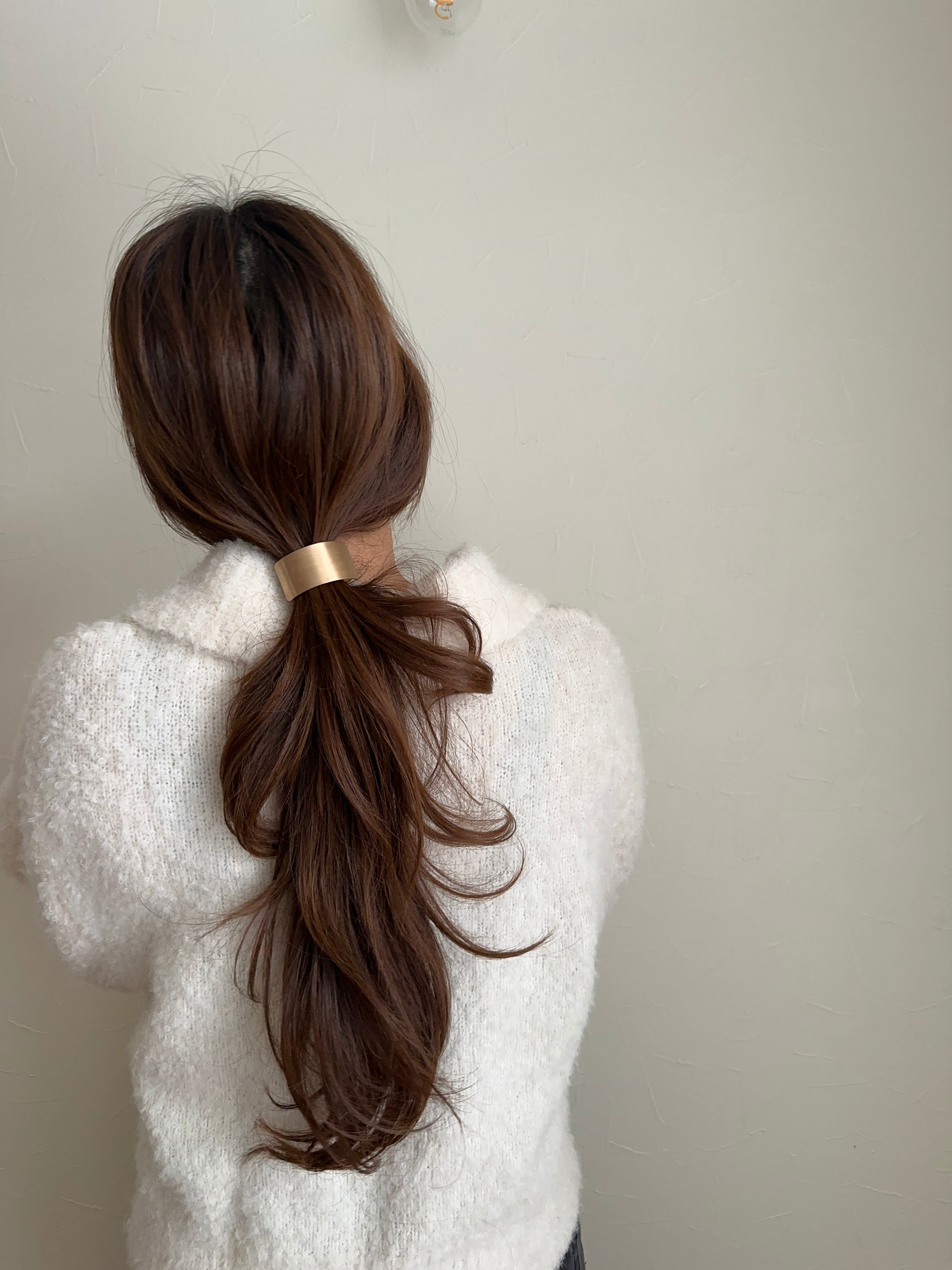 ゴムでひとつ結びにした髪に差し込むだけで、たった数秒で後ろ姿にこなれ感がプラスされます。手間もかからず、忙しい毎日でも気軽に使えるから、毎朝のヘアアレンジがぐんとラクに。