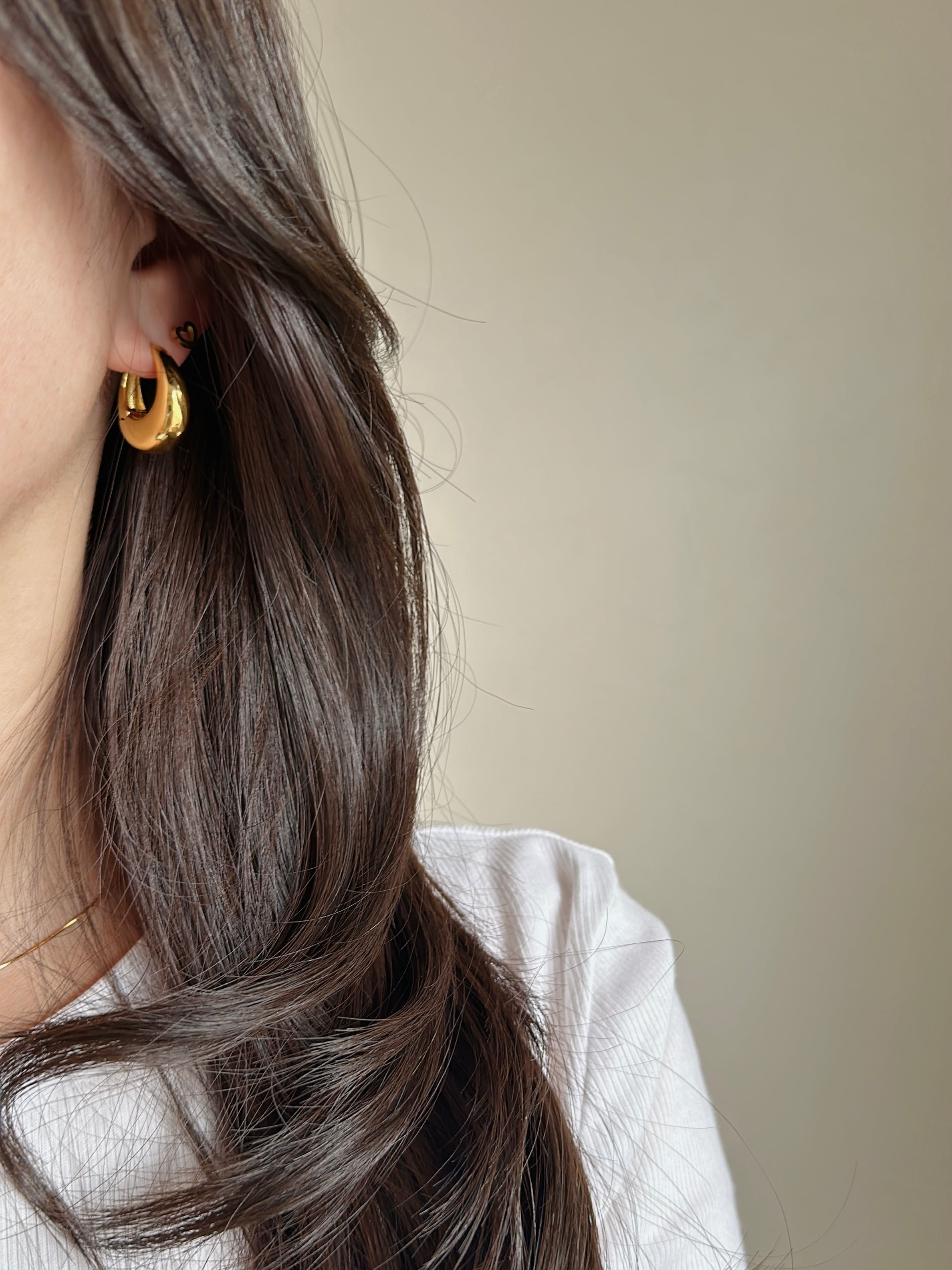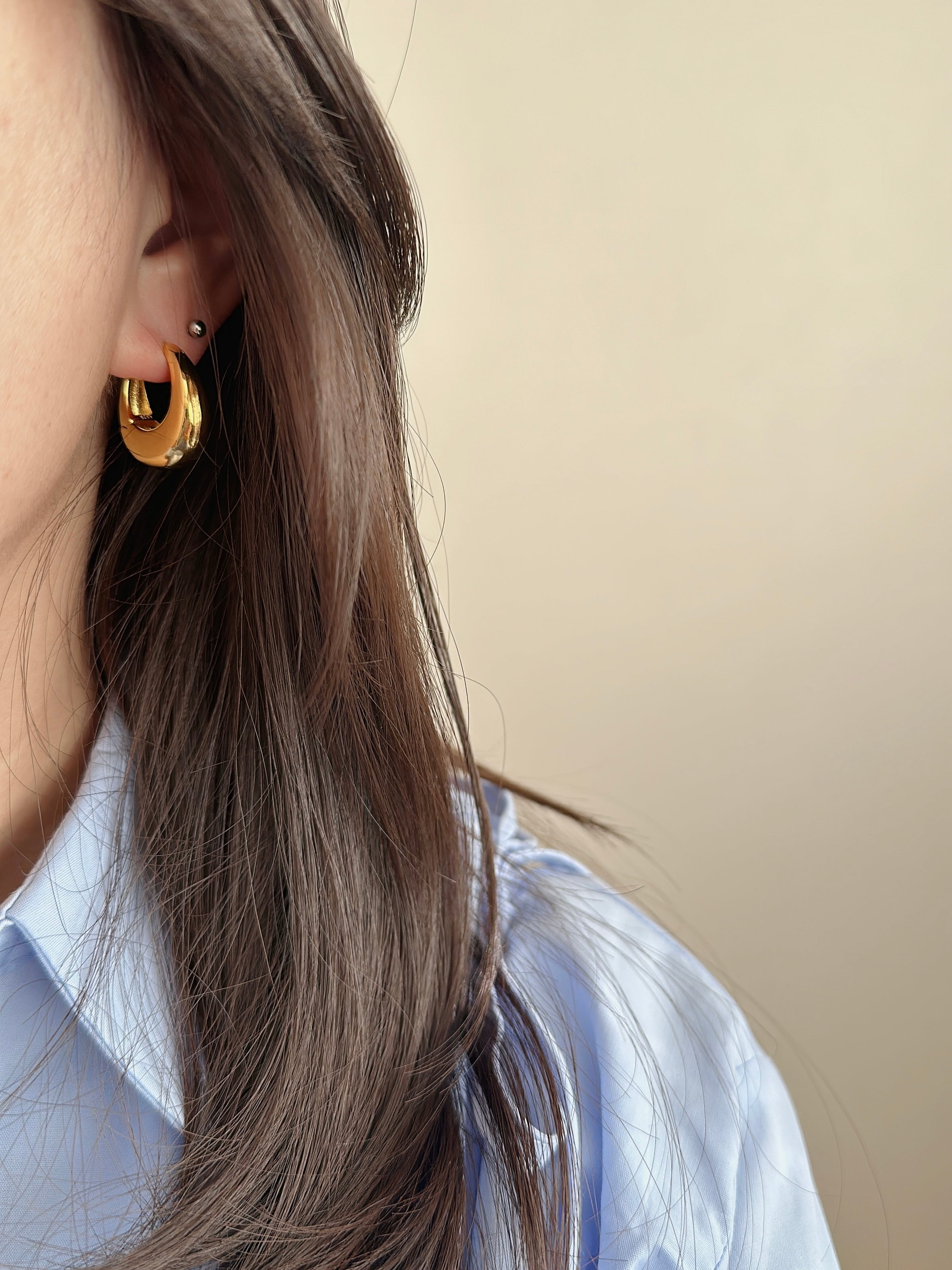 バタバタしがちな朝でも、片手でスッとつけられる“キャッチレス”のS925フープピアスに、