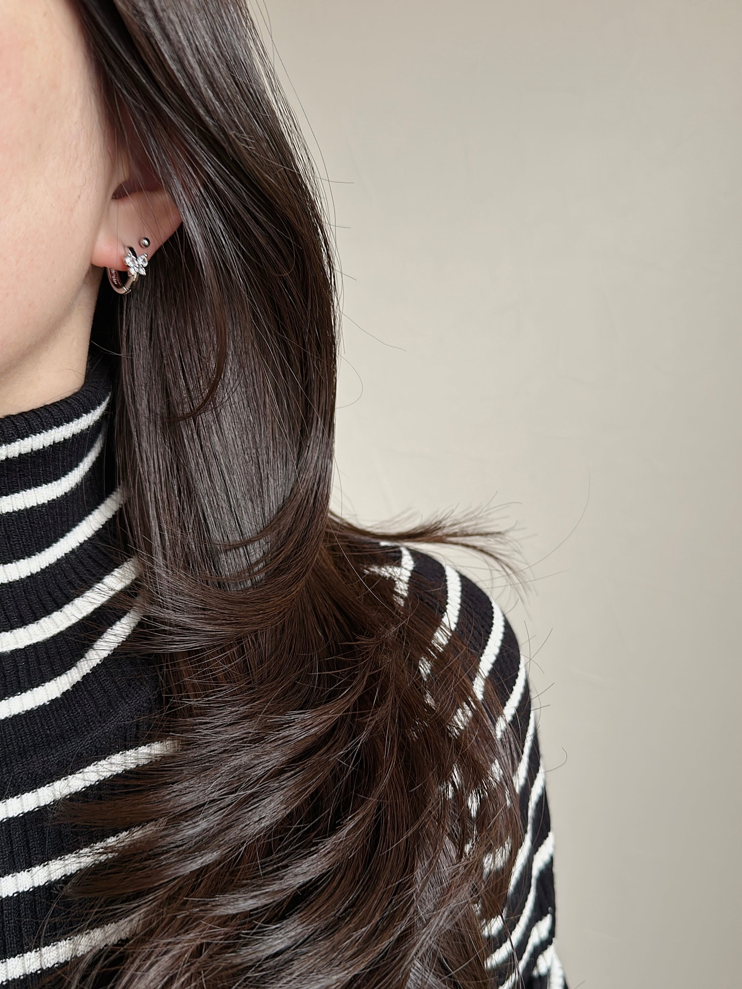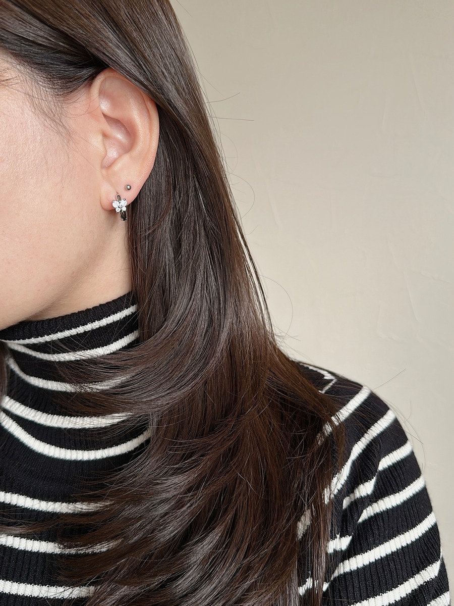 フープのサイズは控えめで主張しすぎず、それでいて存在感のあるデザインなので、どんなスタイルにも自然になじみます。