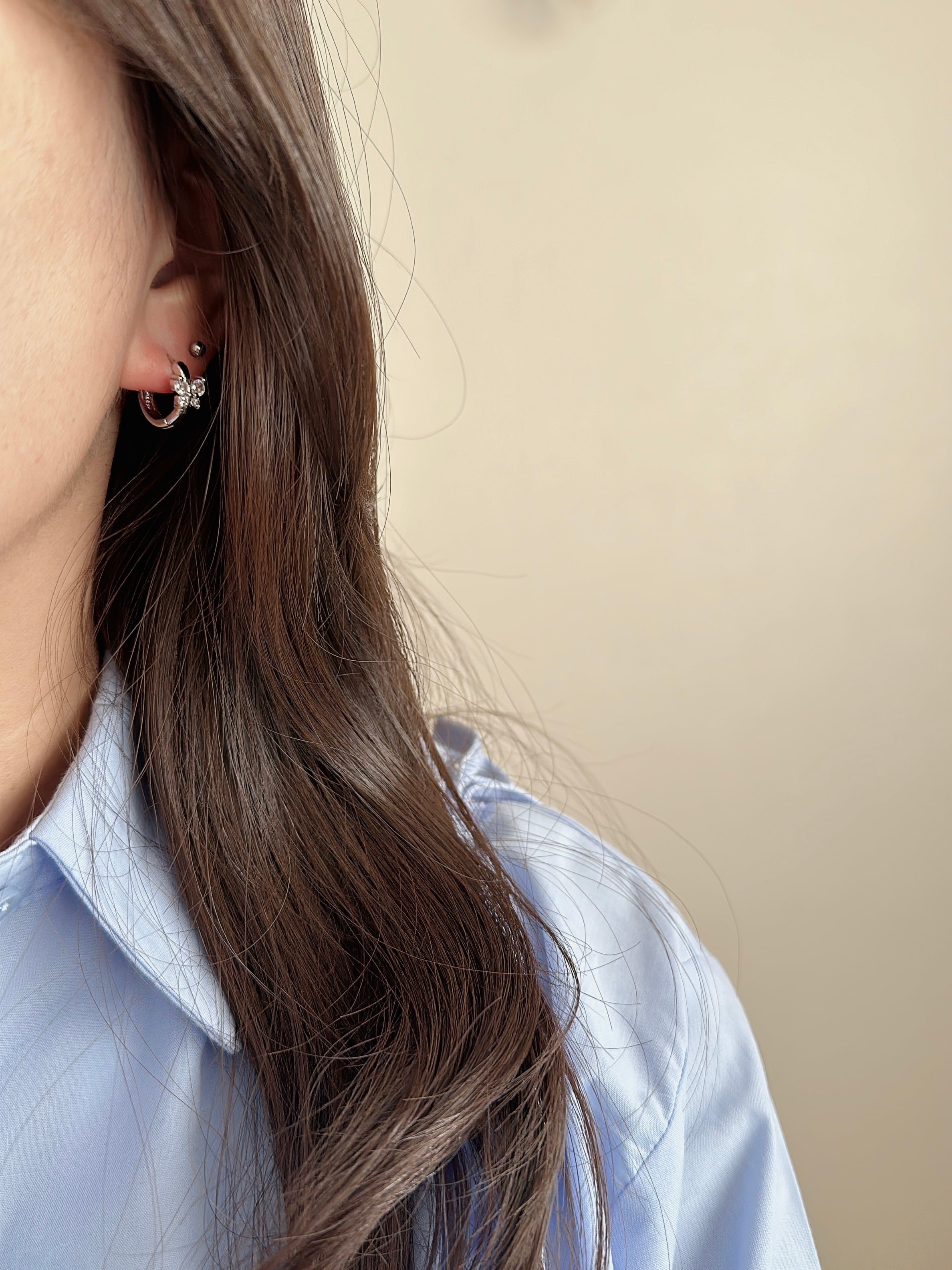 繊細なバタフライモチーフがさりげなく揺れて、耳元に女性らしさをプラス。
