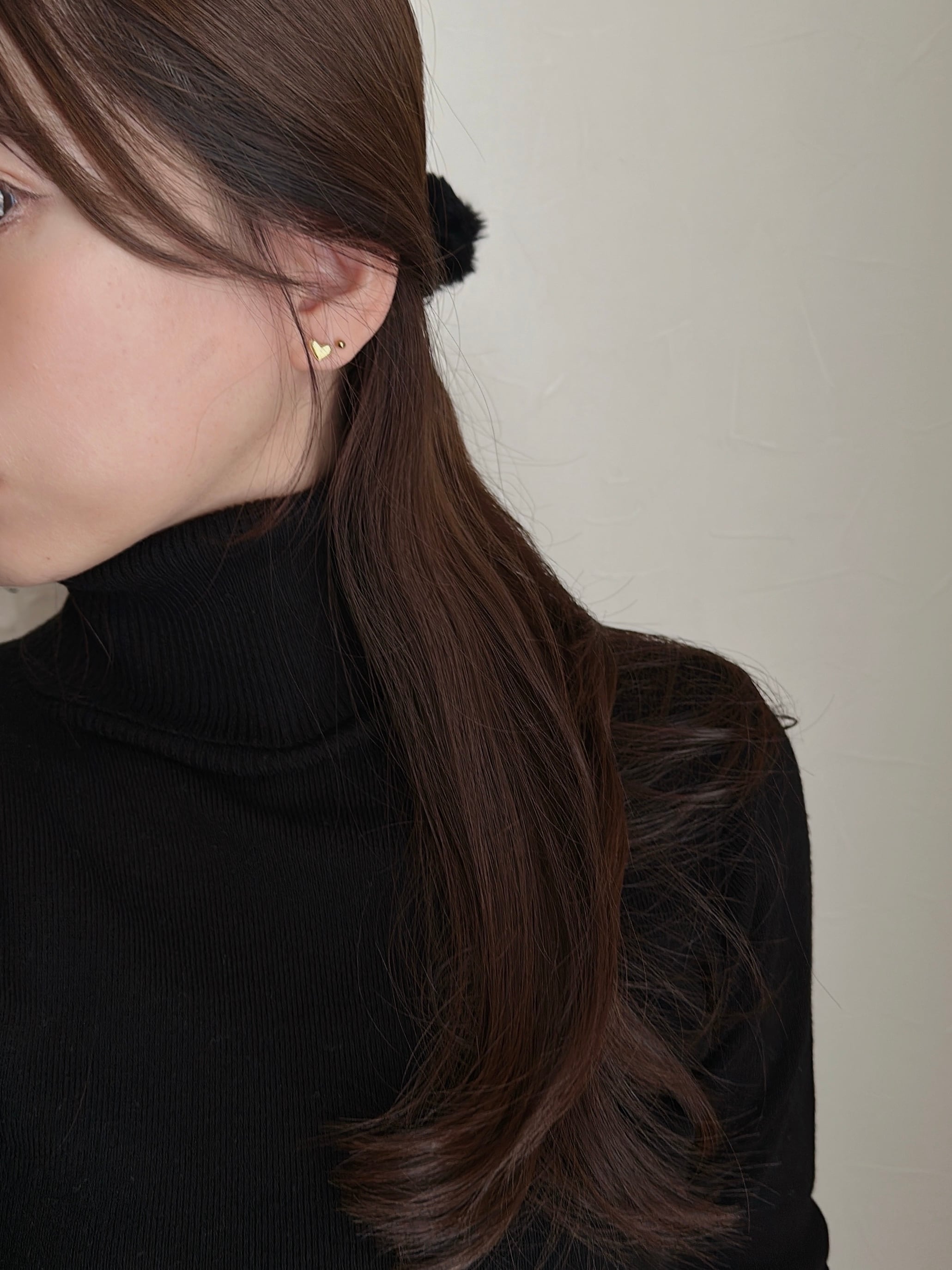 やわらかく丸みを帯びたハートモチーフが、さりげなく耳元を飾るスタッドピアス。