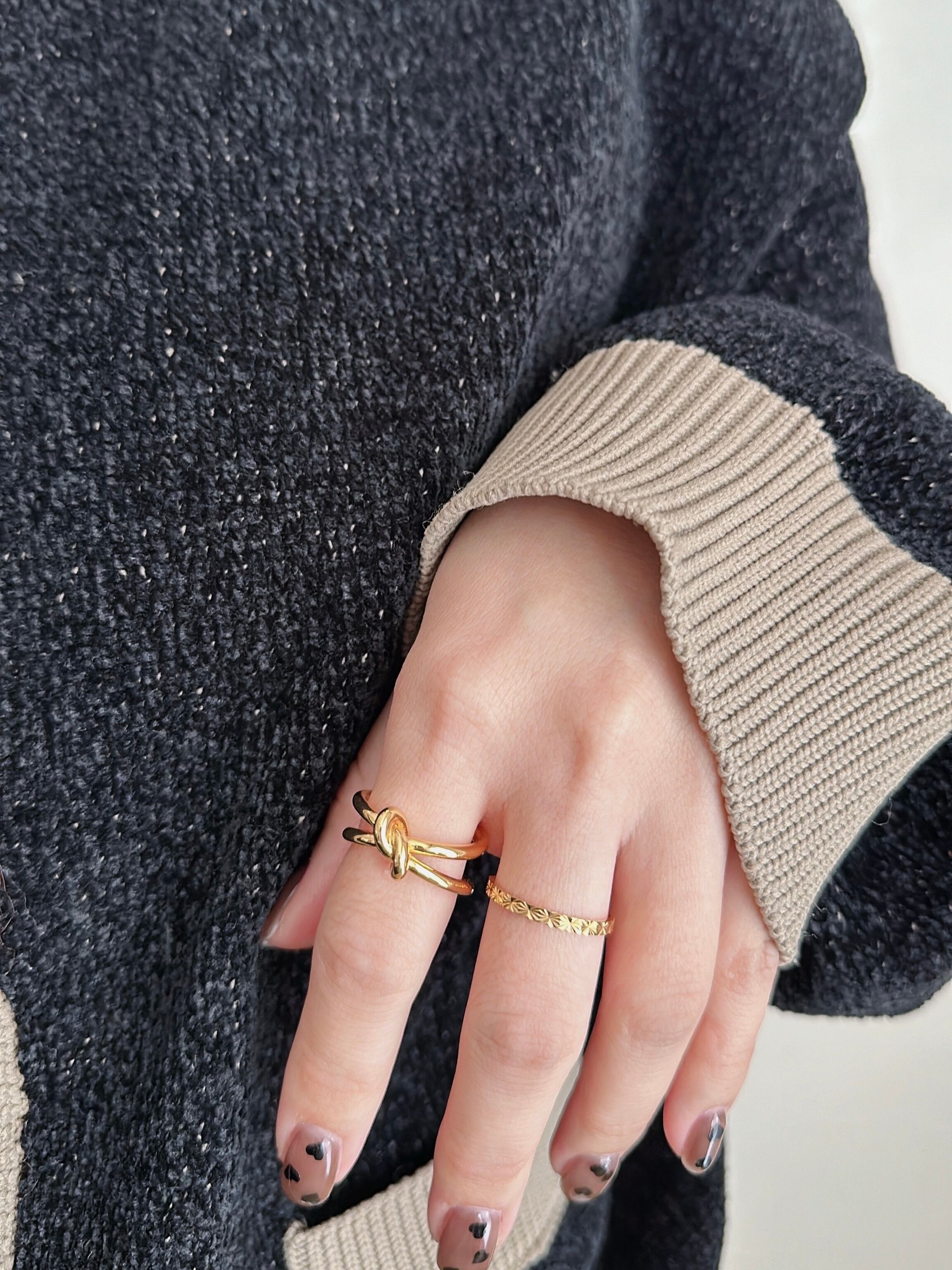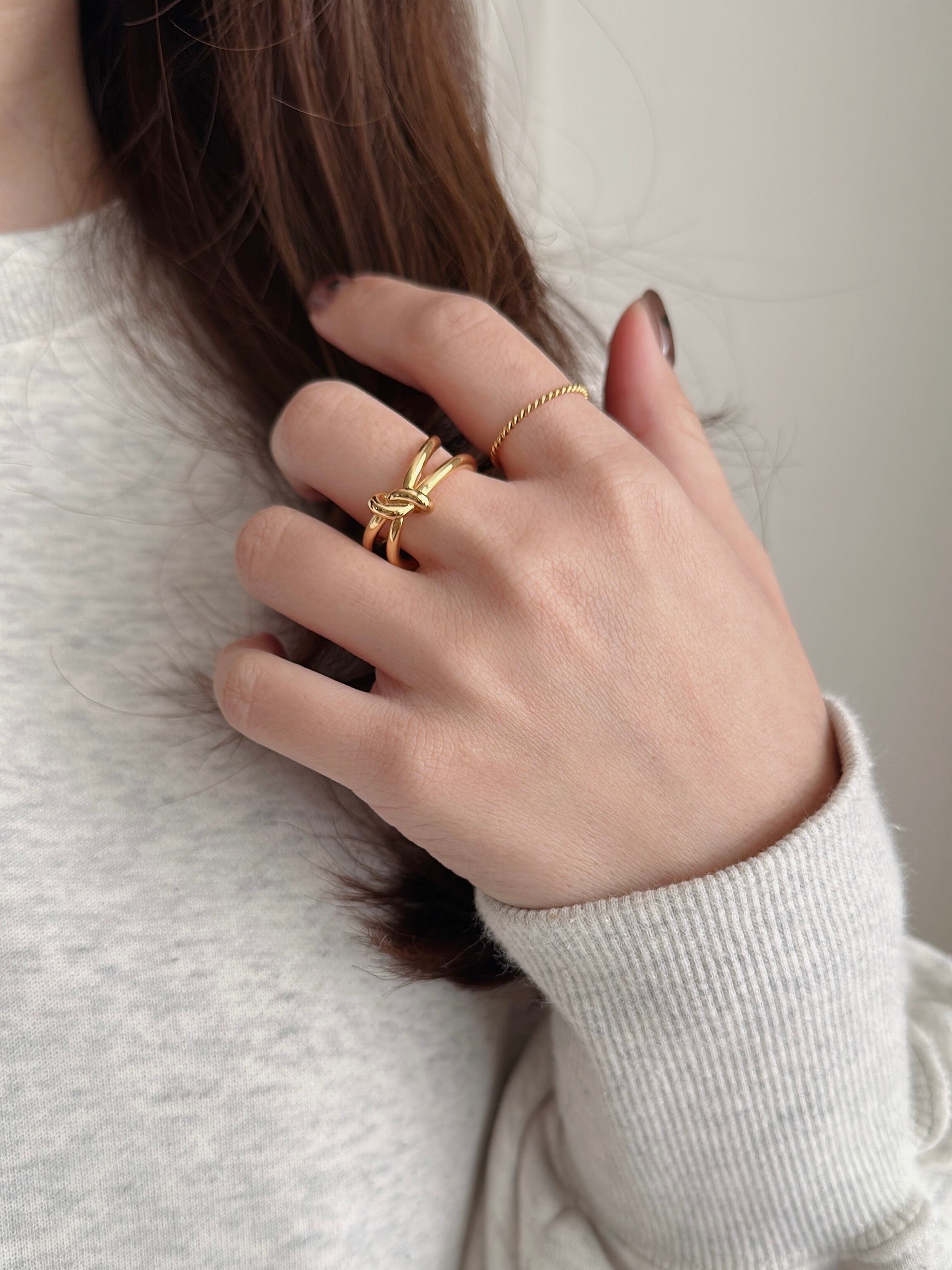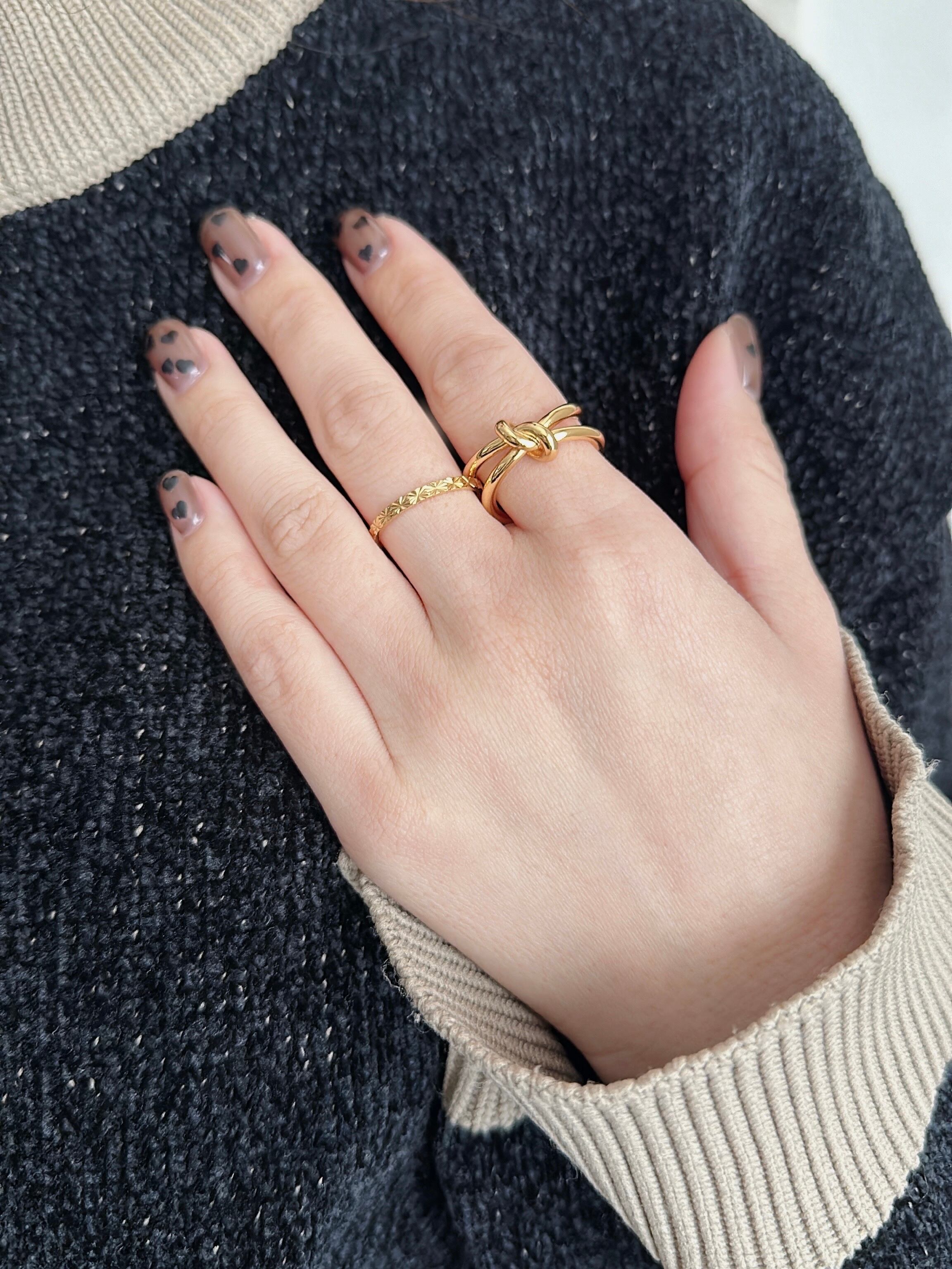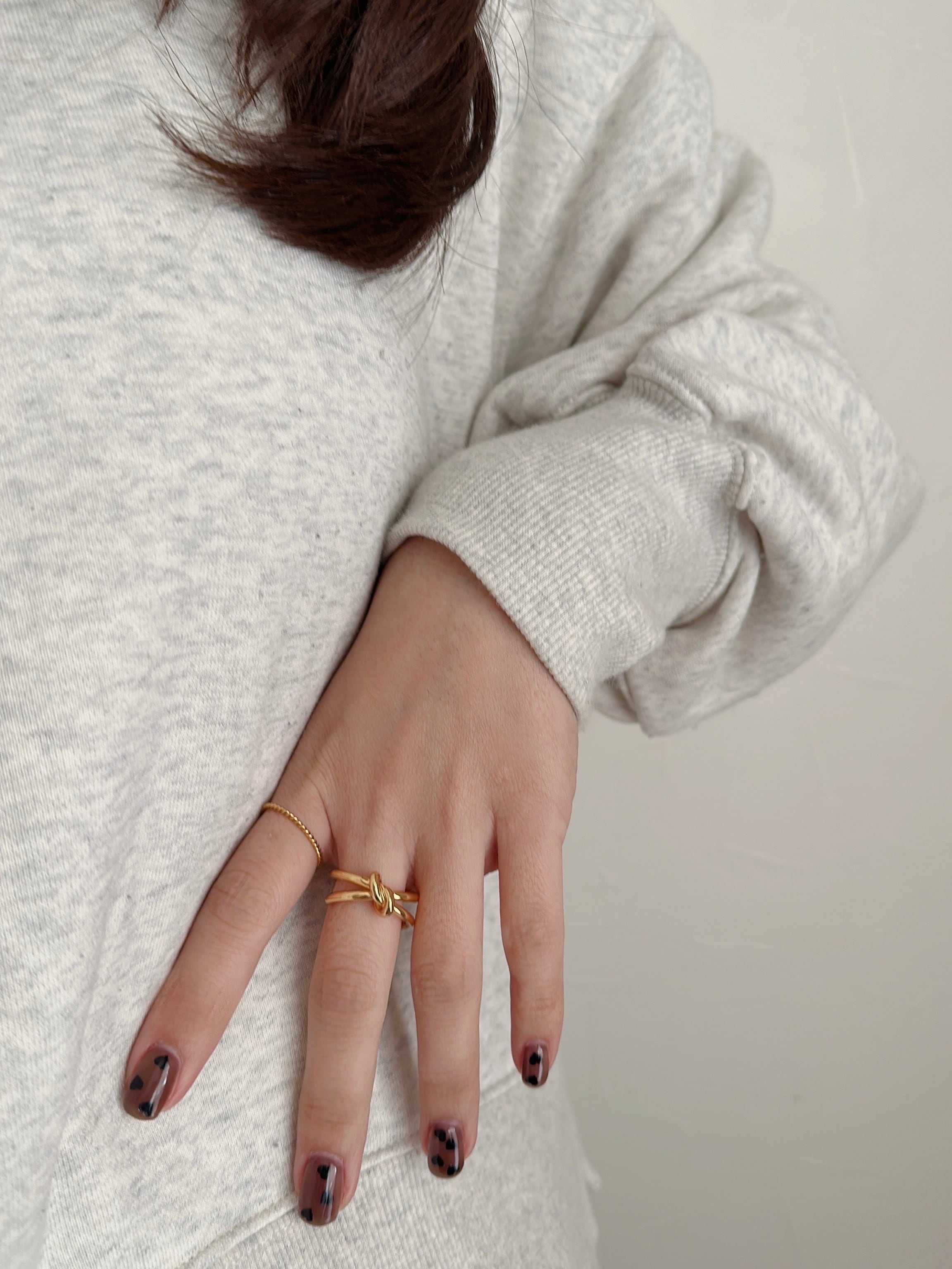 まるで“偶然できた結び目”のようなこのリングは、かしこまりすぎず、それでいて洗練された印象を演出します。