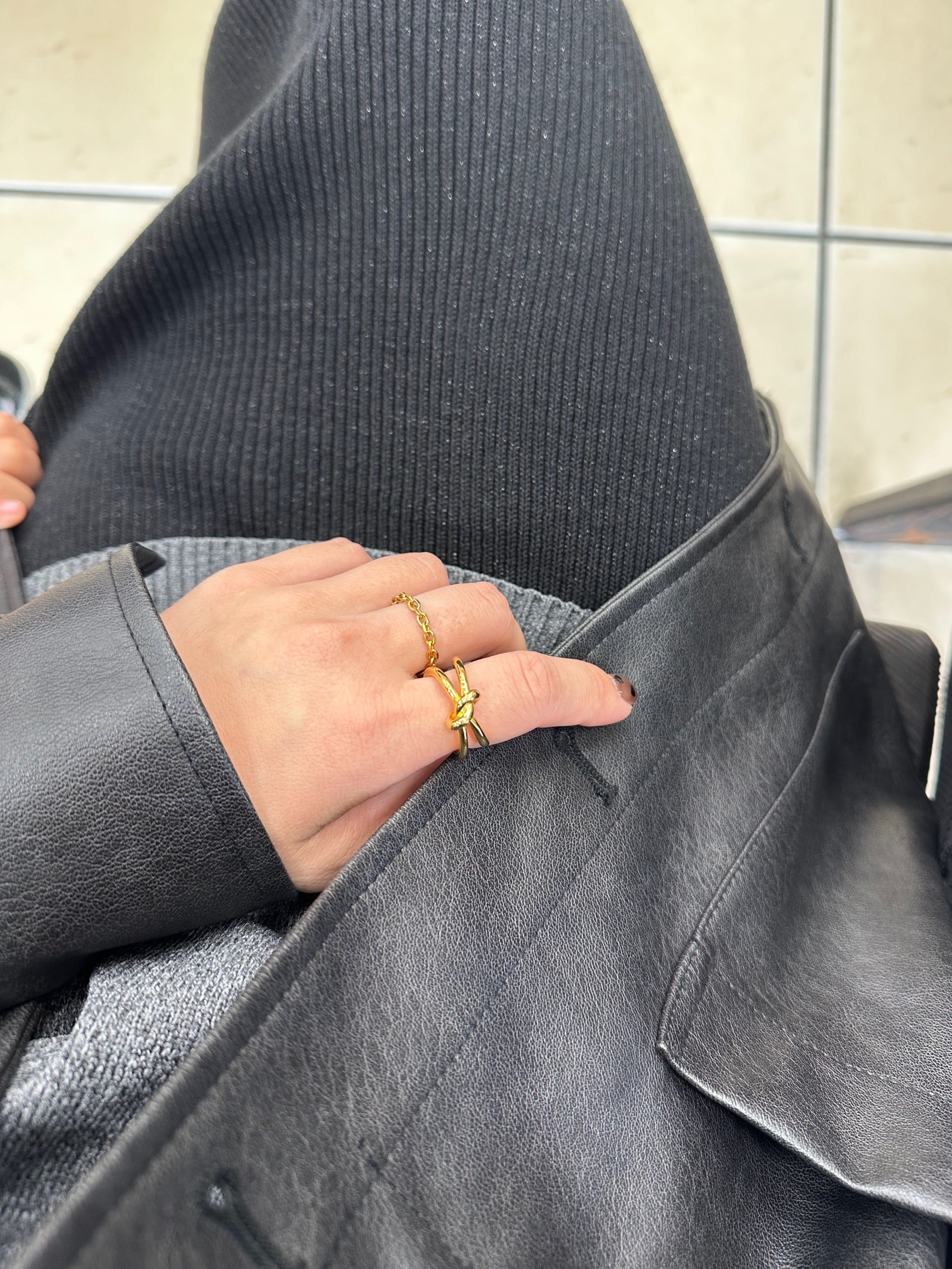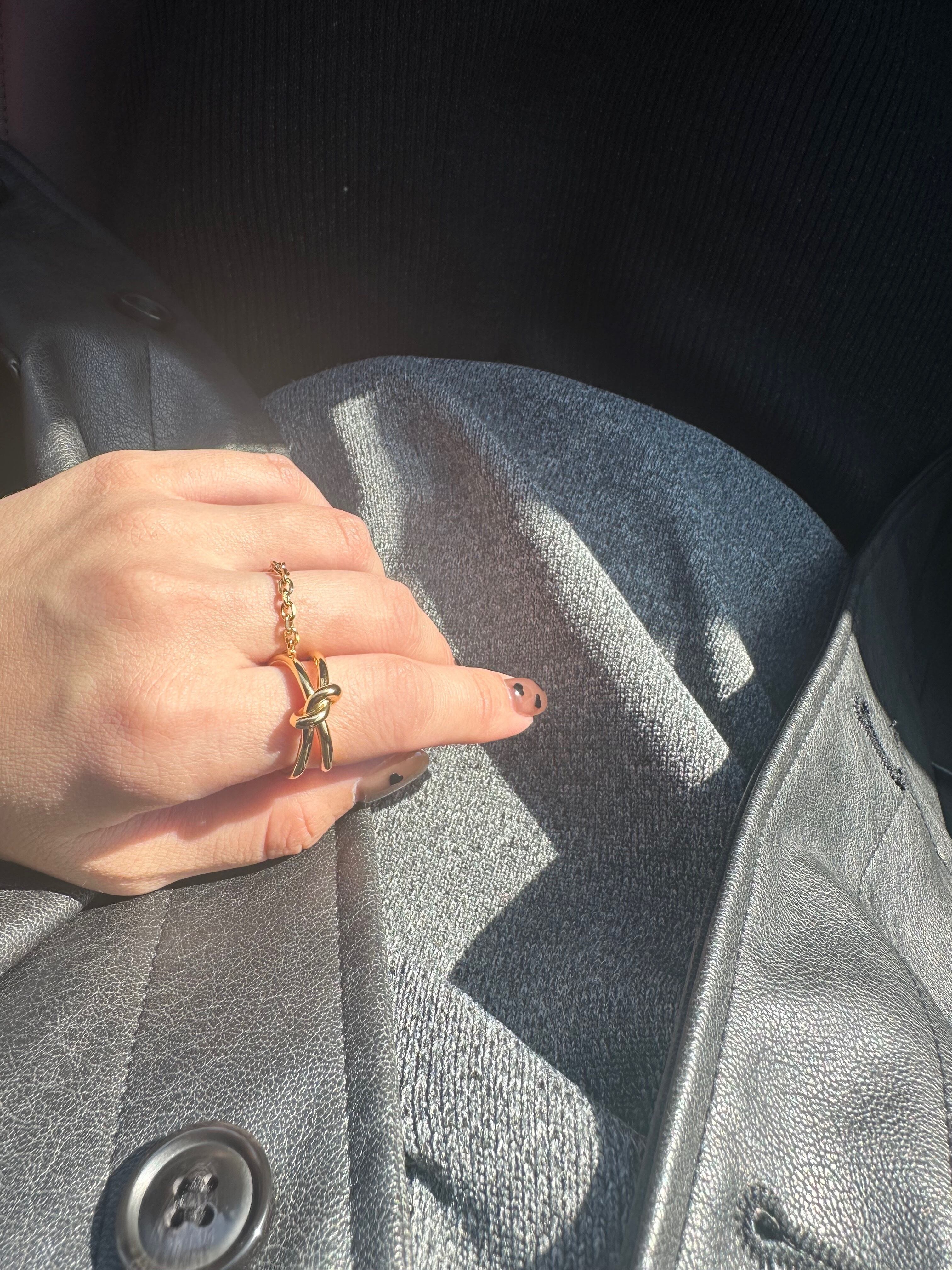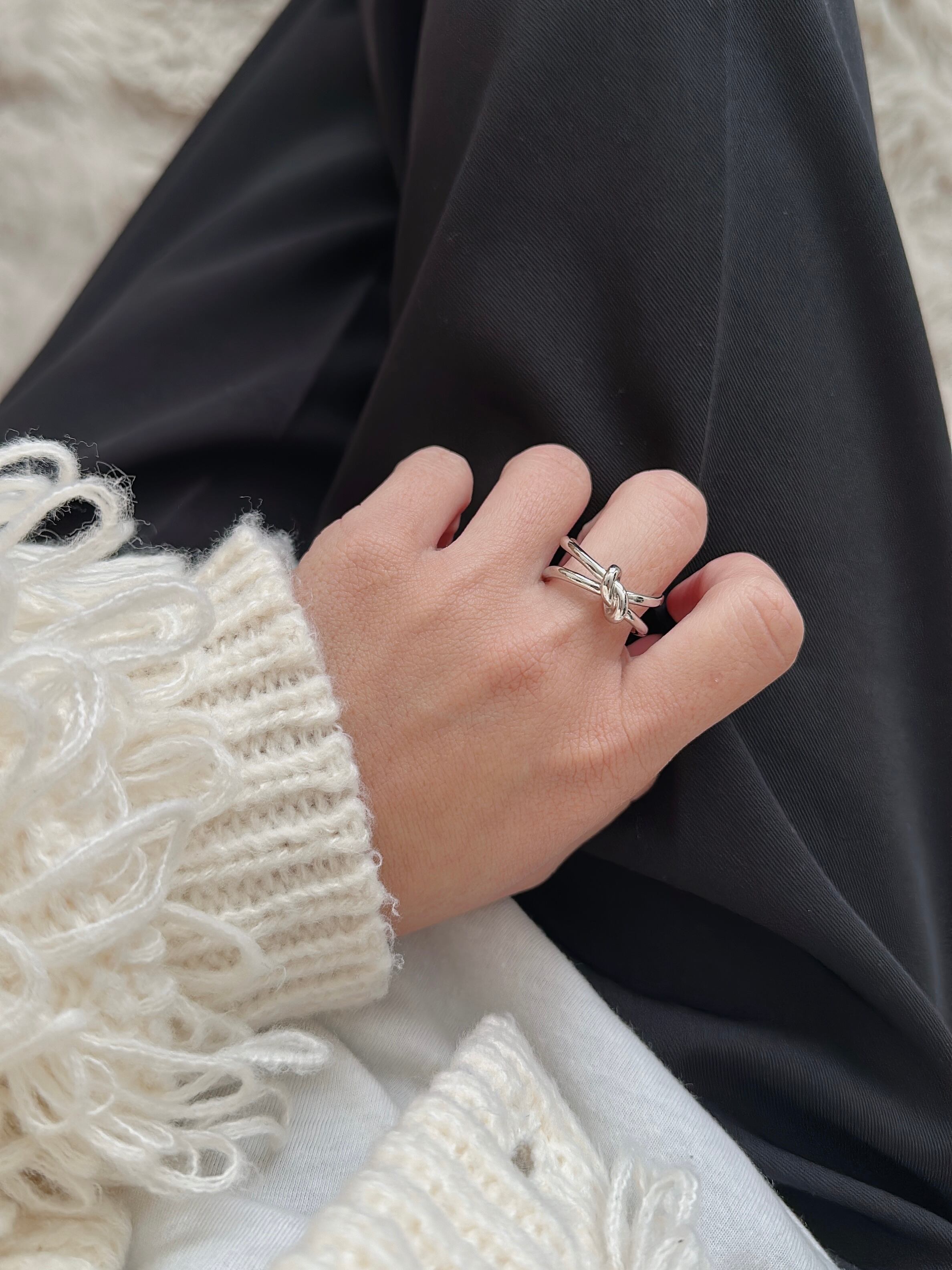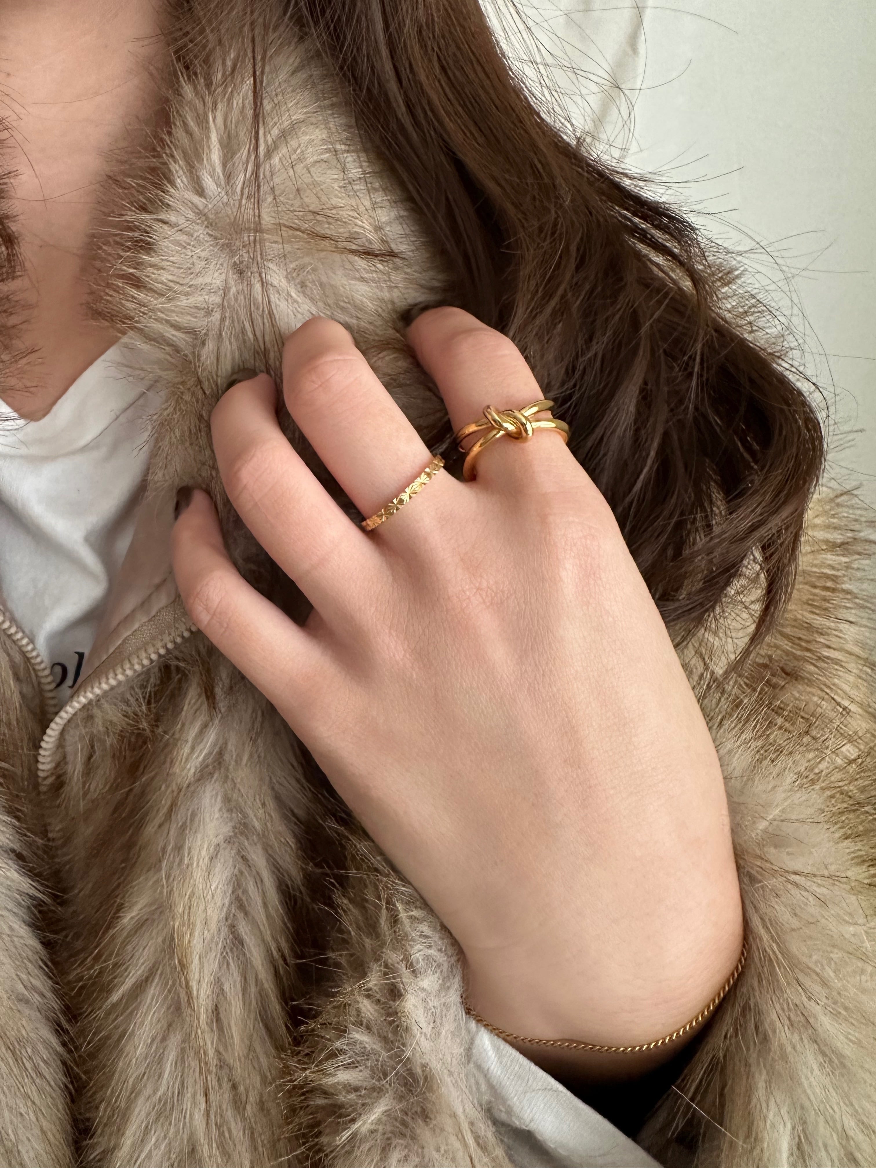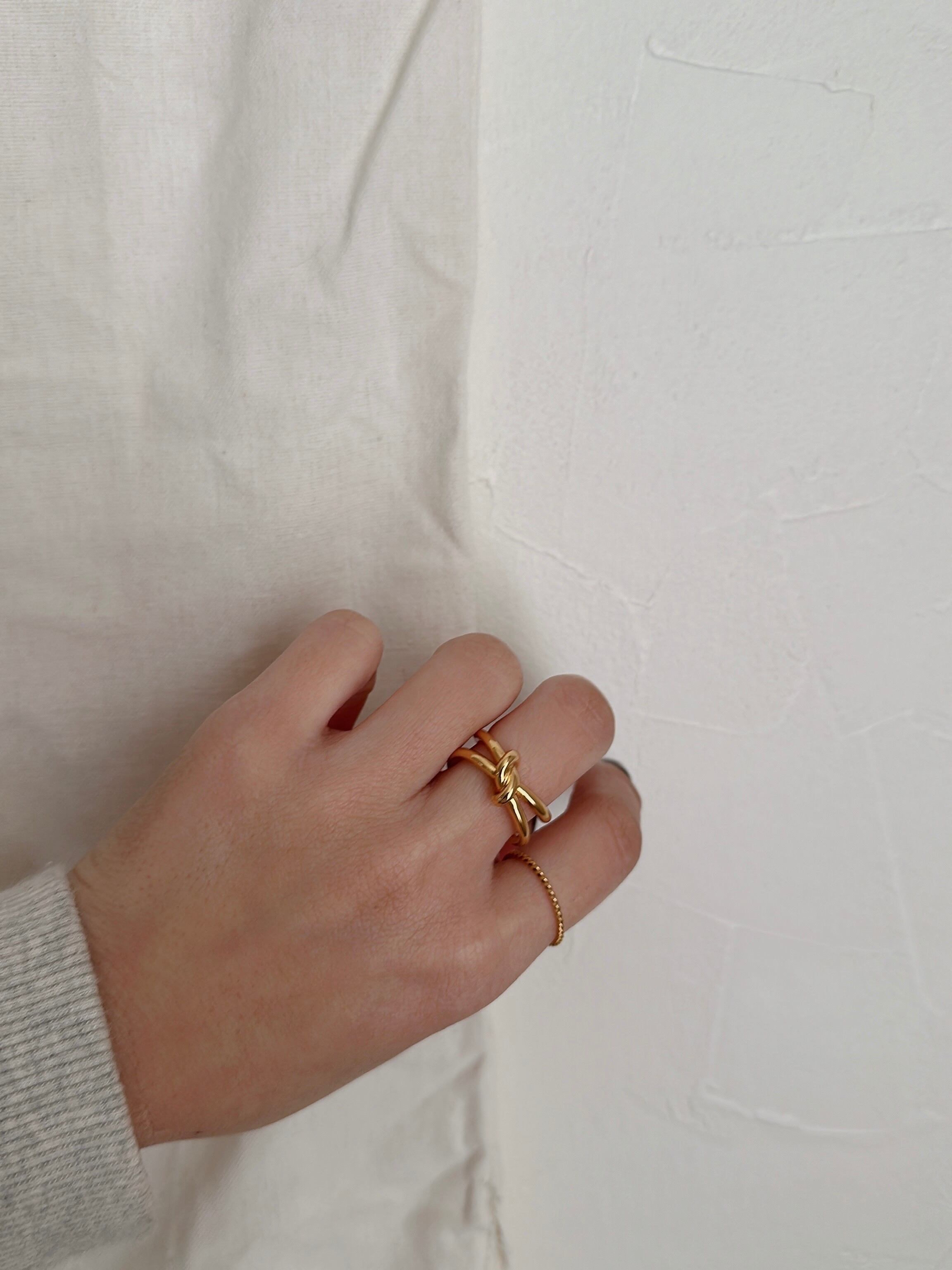 まるで“偶然できた結び目”のようなこのリングは、かしこまりすぎず、それでいて洗練された印象を演出します。