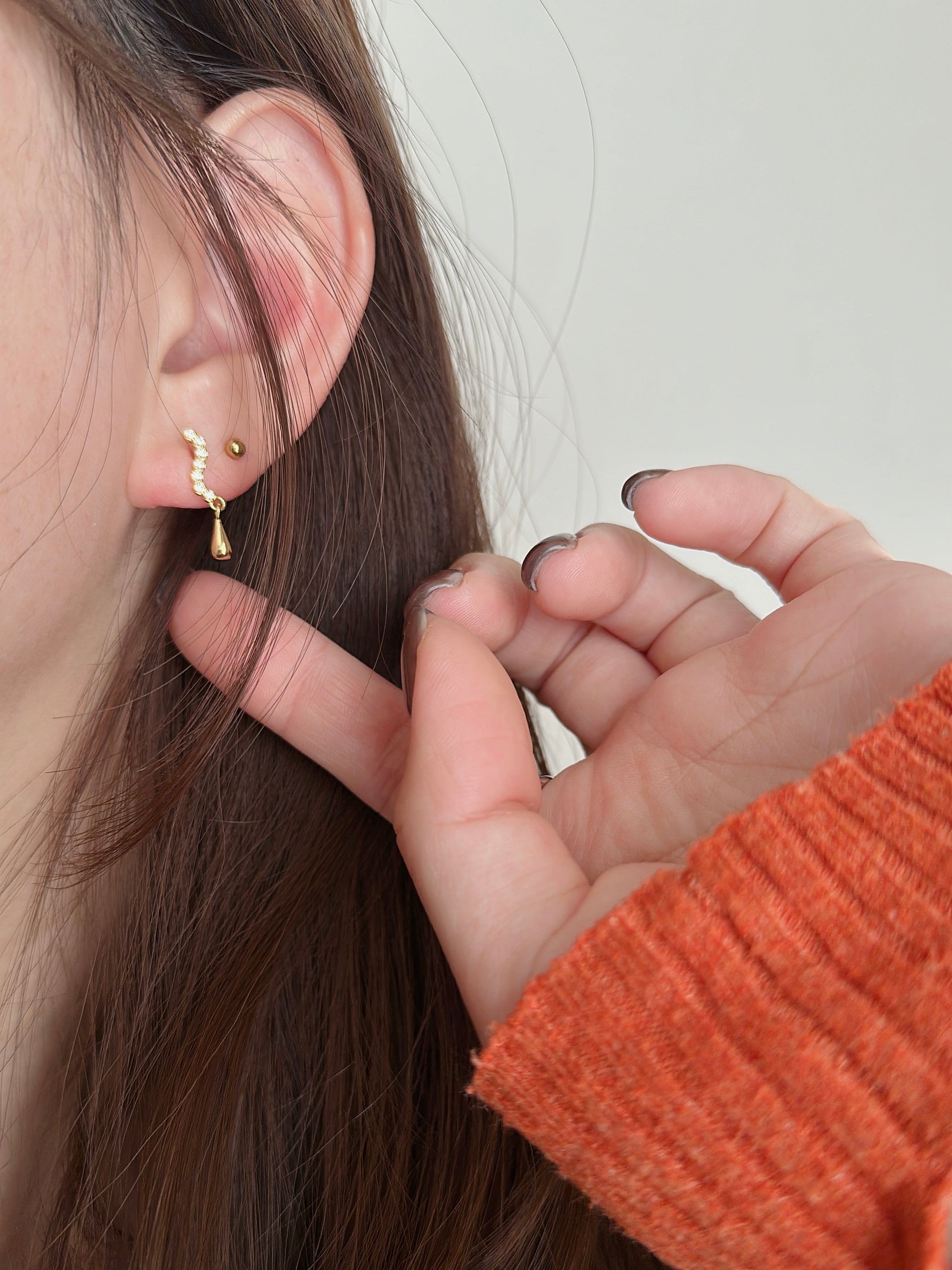 しずくのような輝きが、耳元で優しく揺れる ―