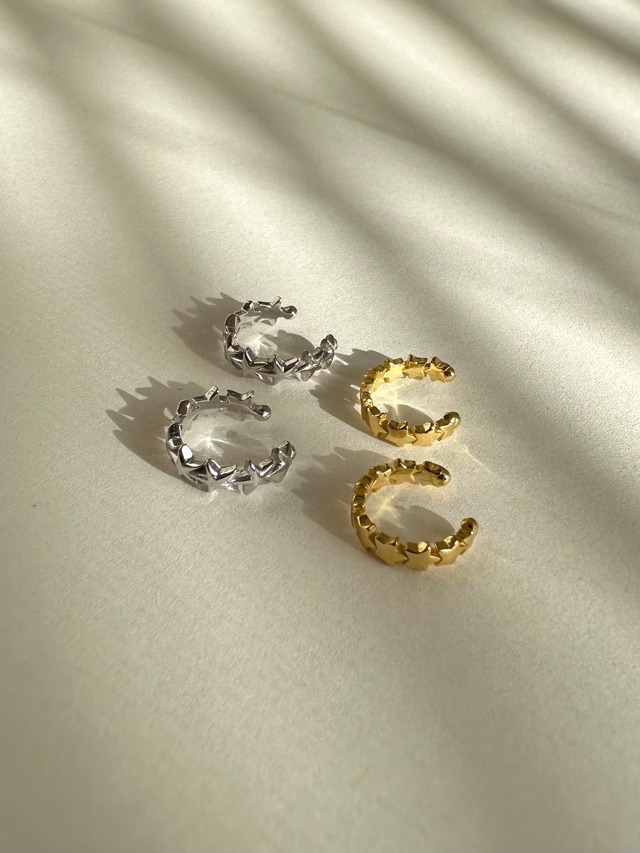 ゴールドとシルバー、異なる2色のリングを重ねたトップが、控えめながらも確かな存在感を演出。