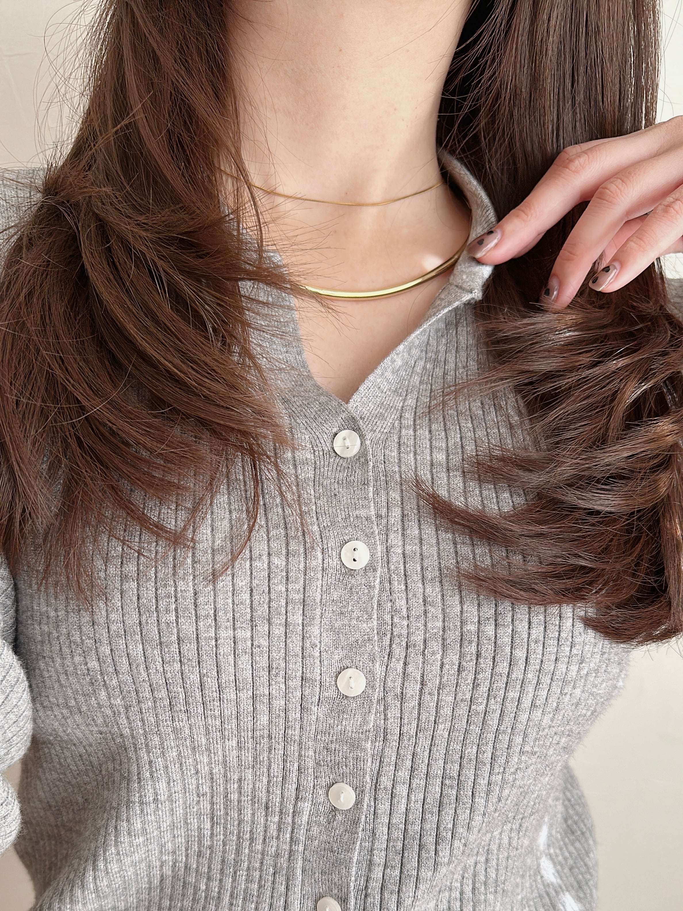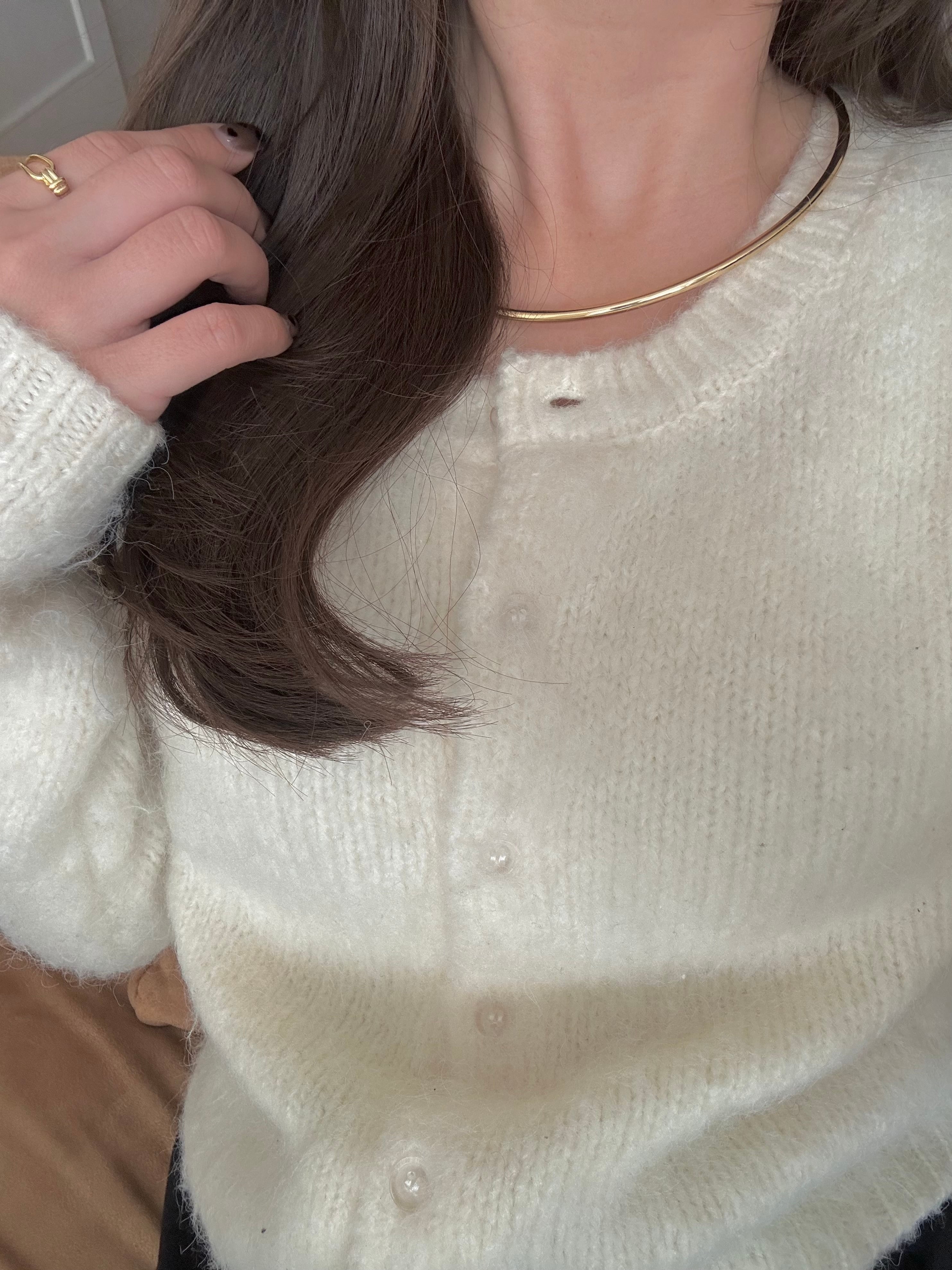 程よい太さとしなやかなカーブがデコルテを美しく引き立て、ニットやシャツ、Tシャツなど、どんなトップスにも自然に馴染みます。