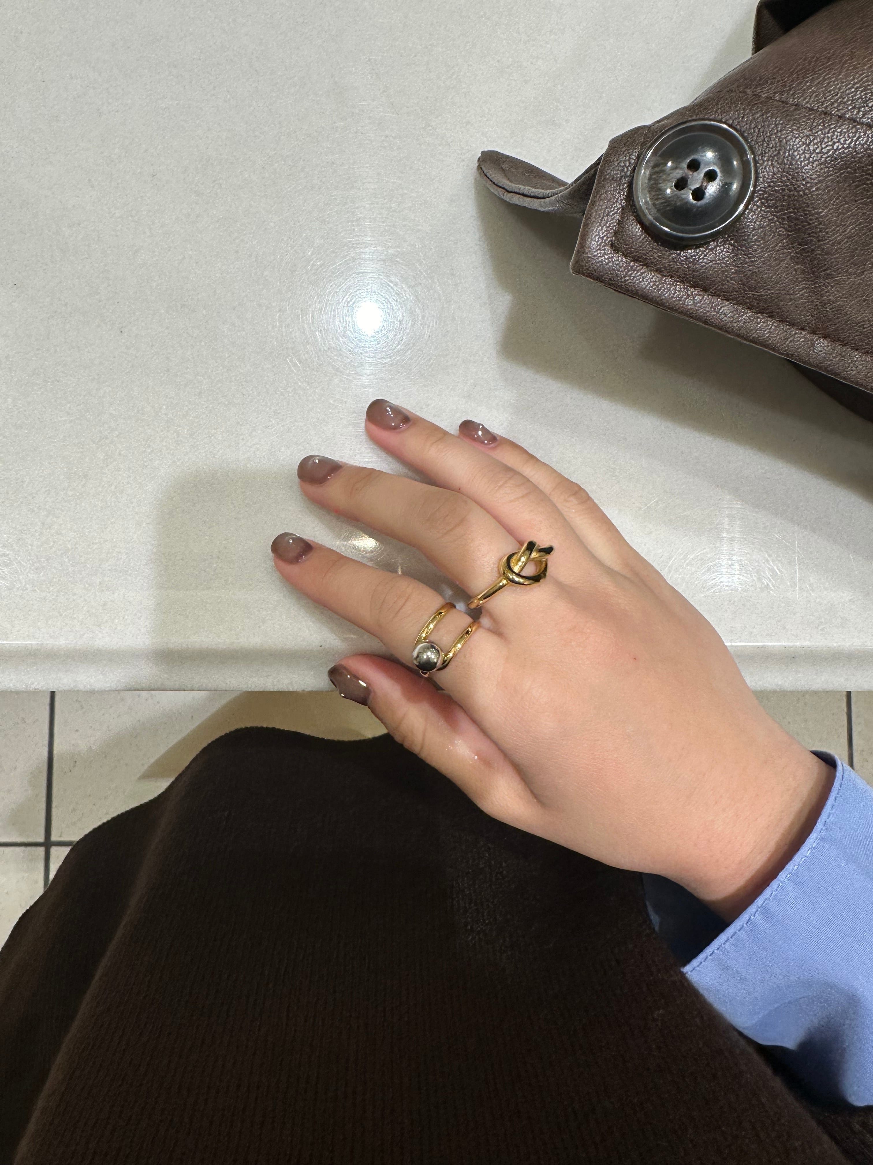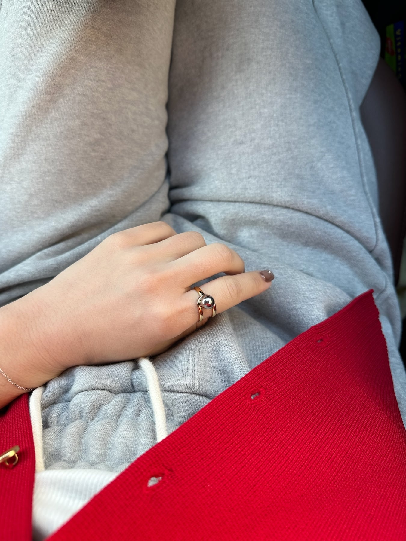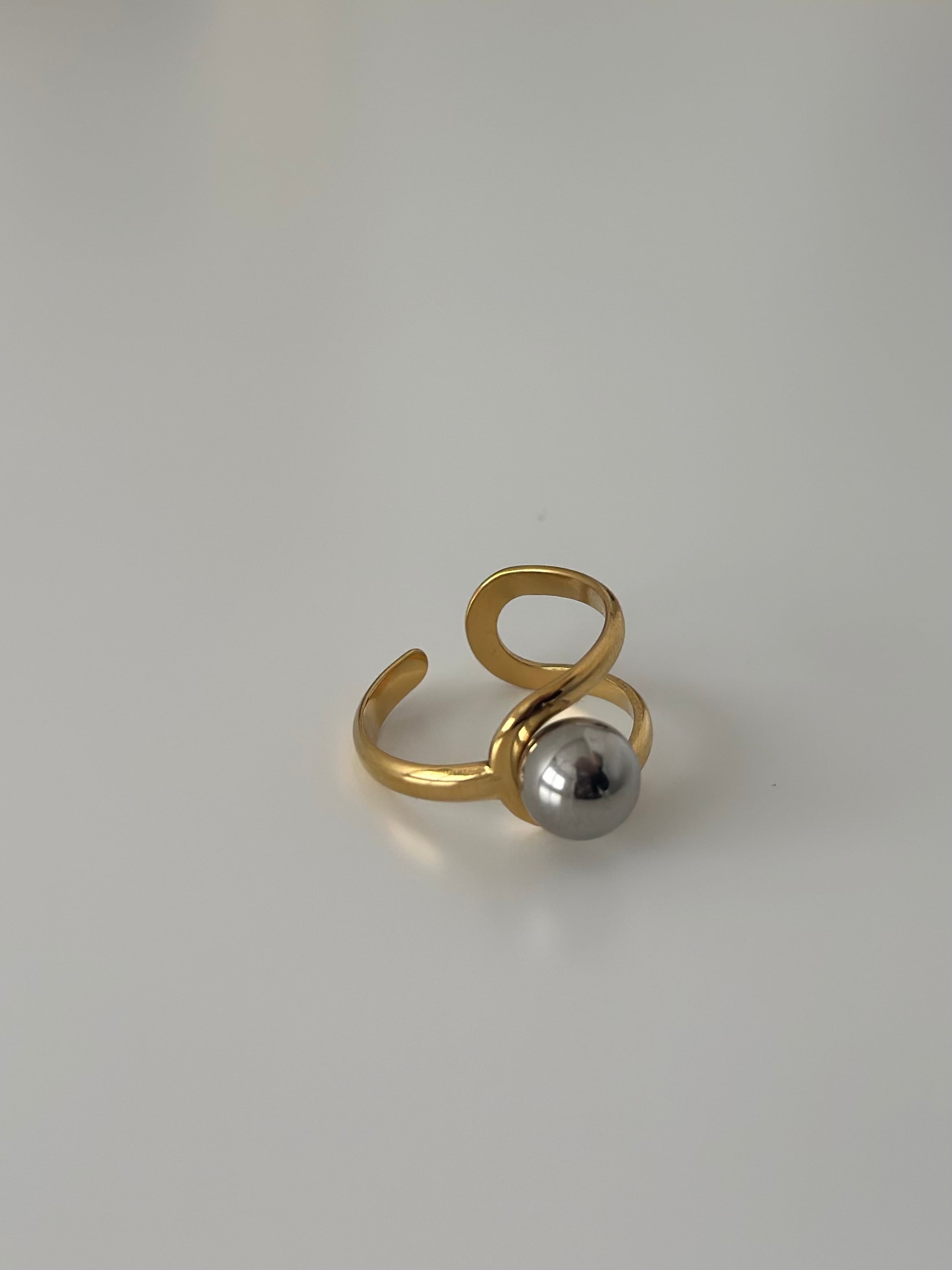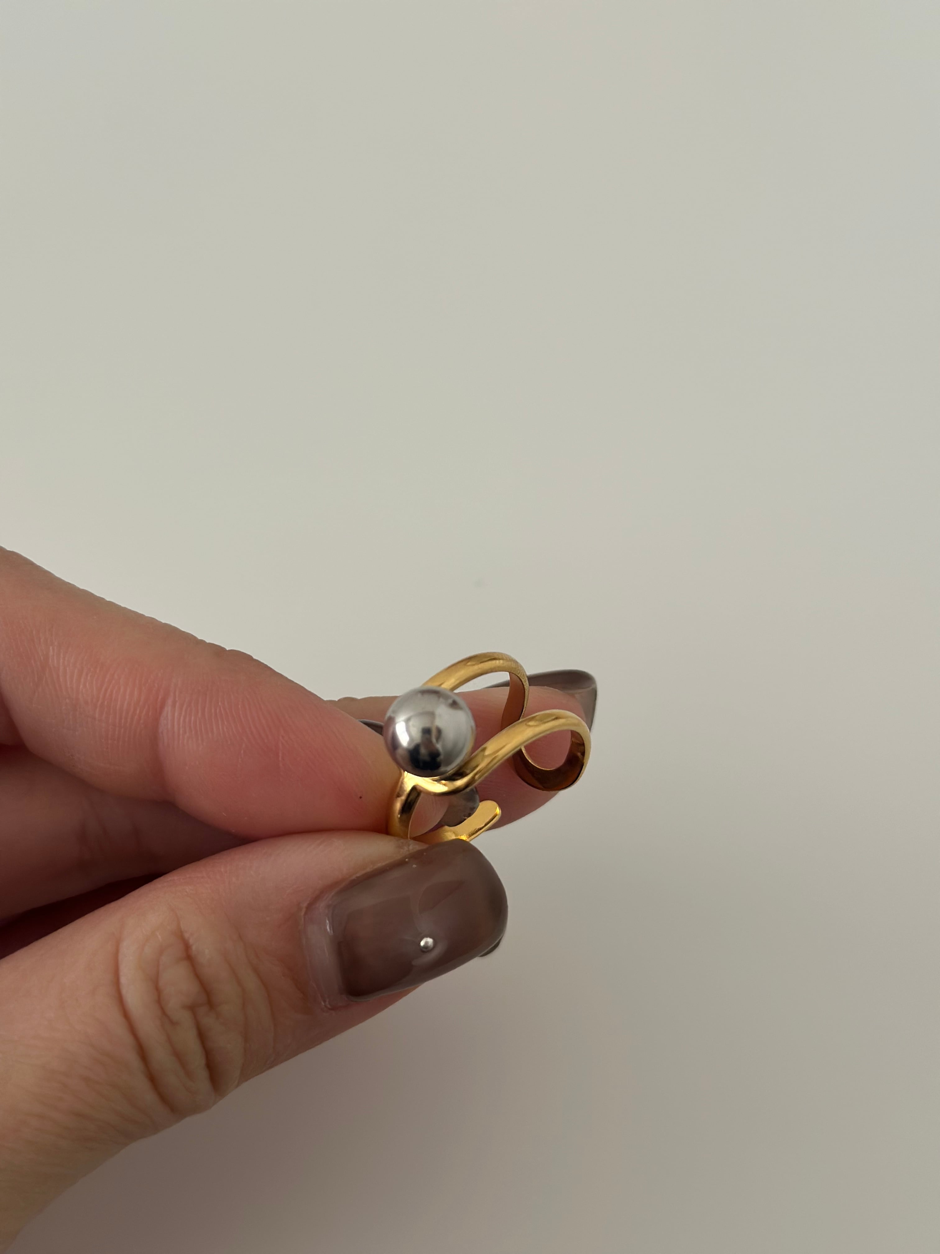 ゴールドとシルバーのコントラストが印象的な、バイカラーデザインリング。