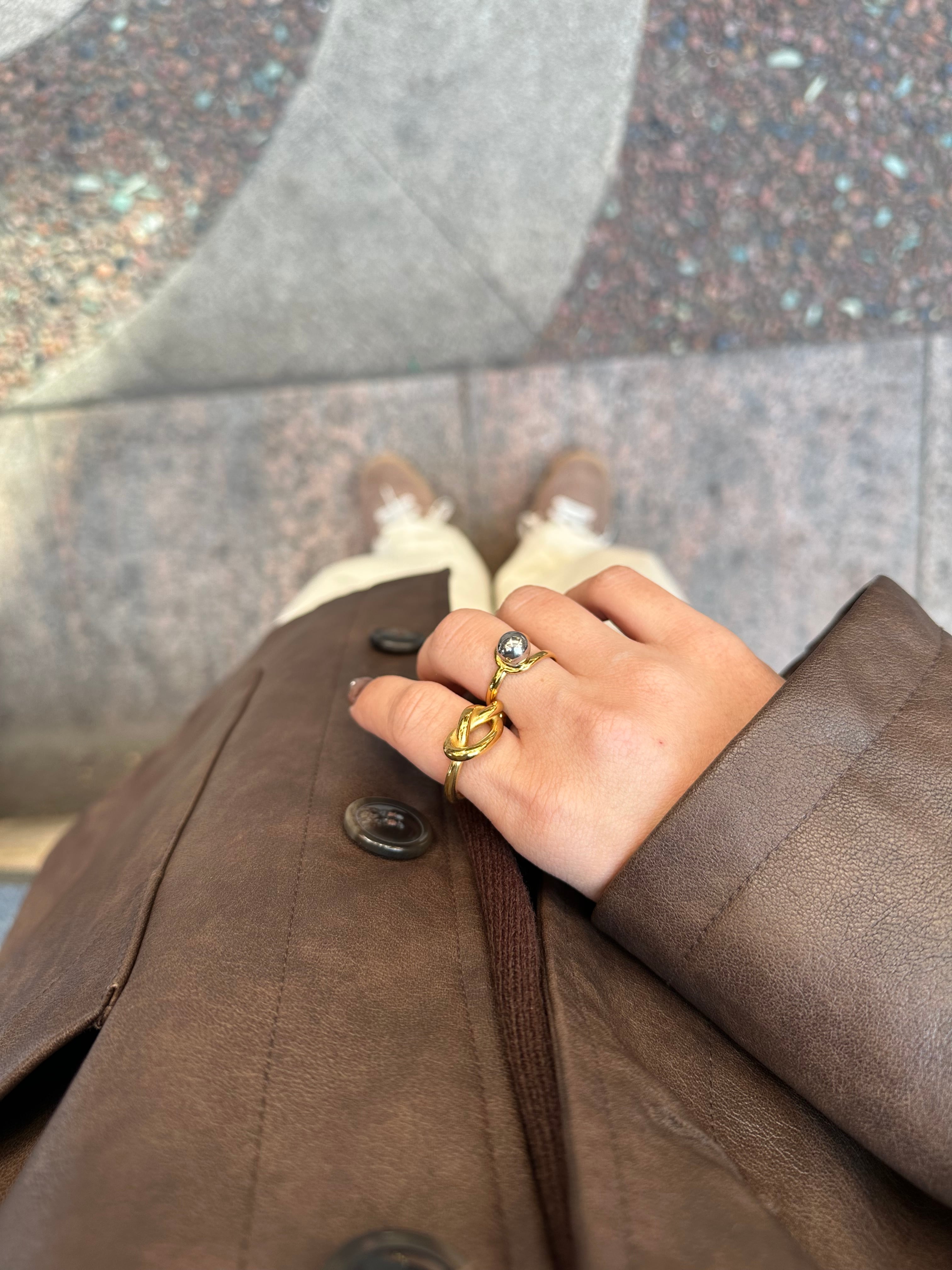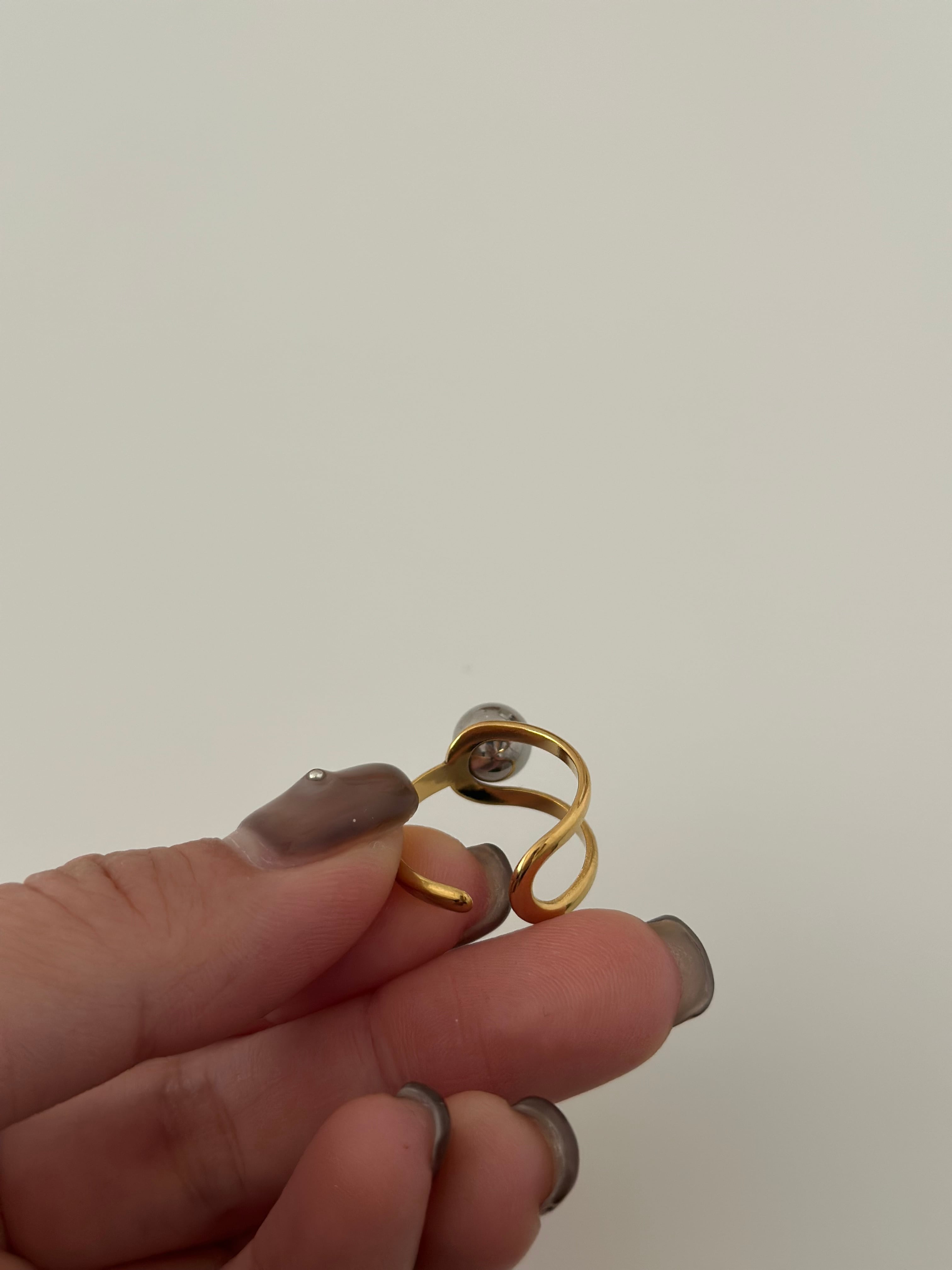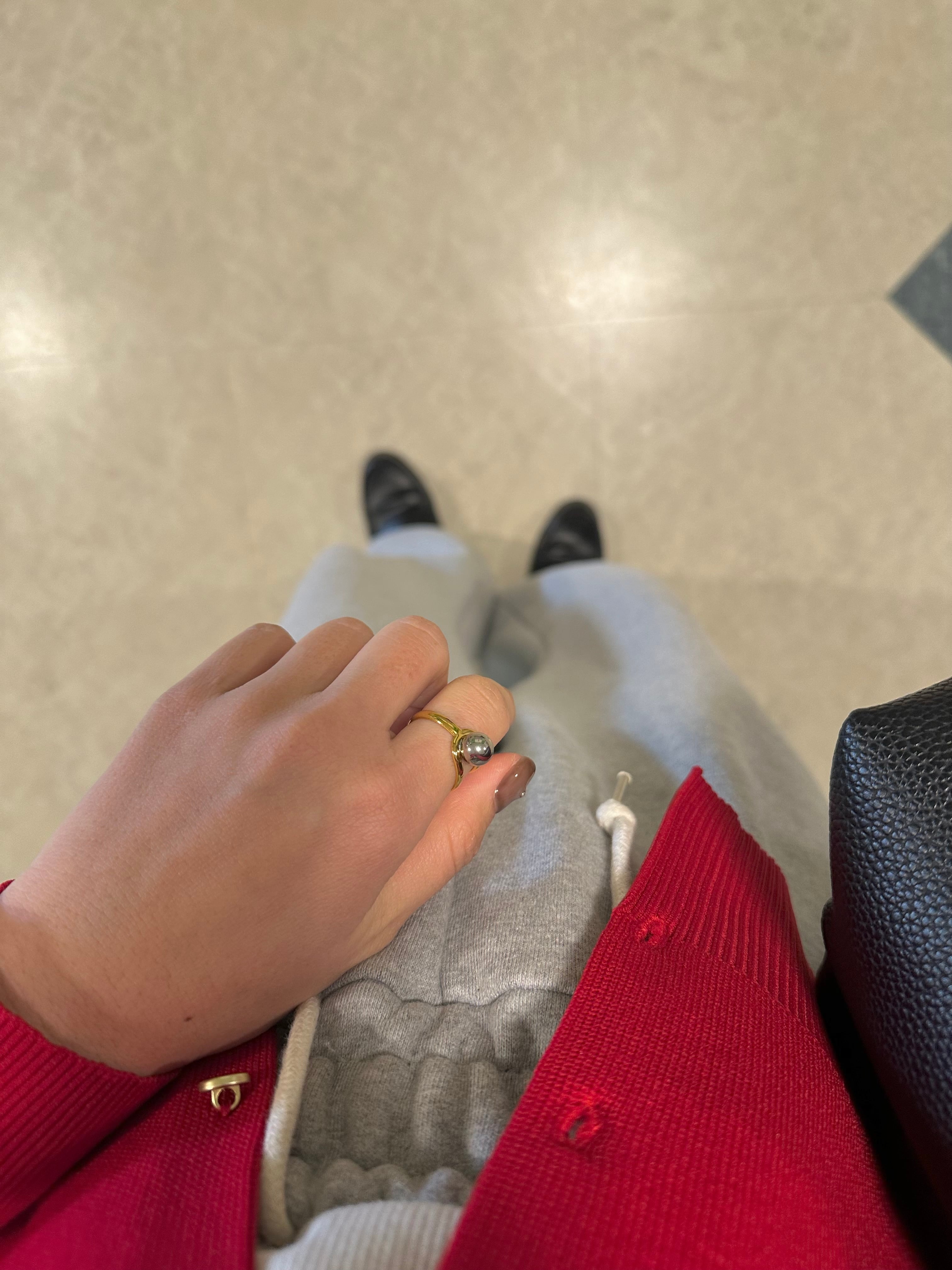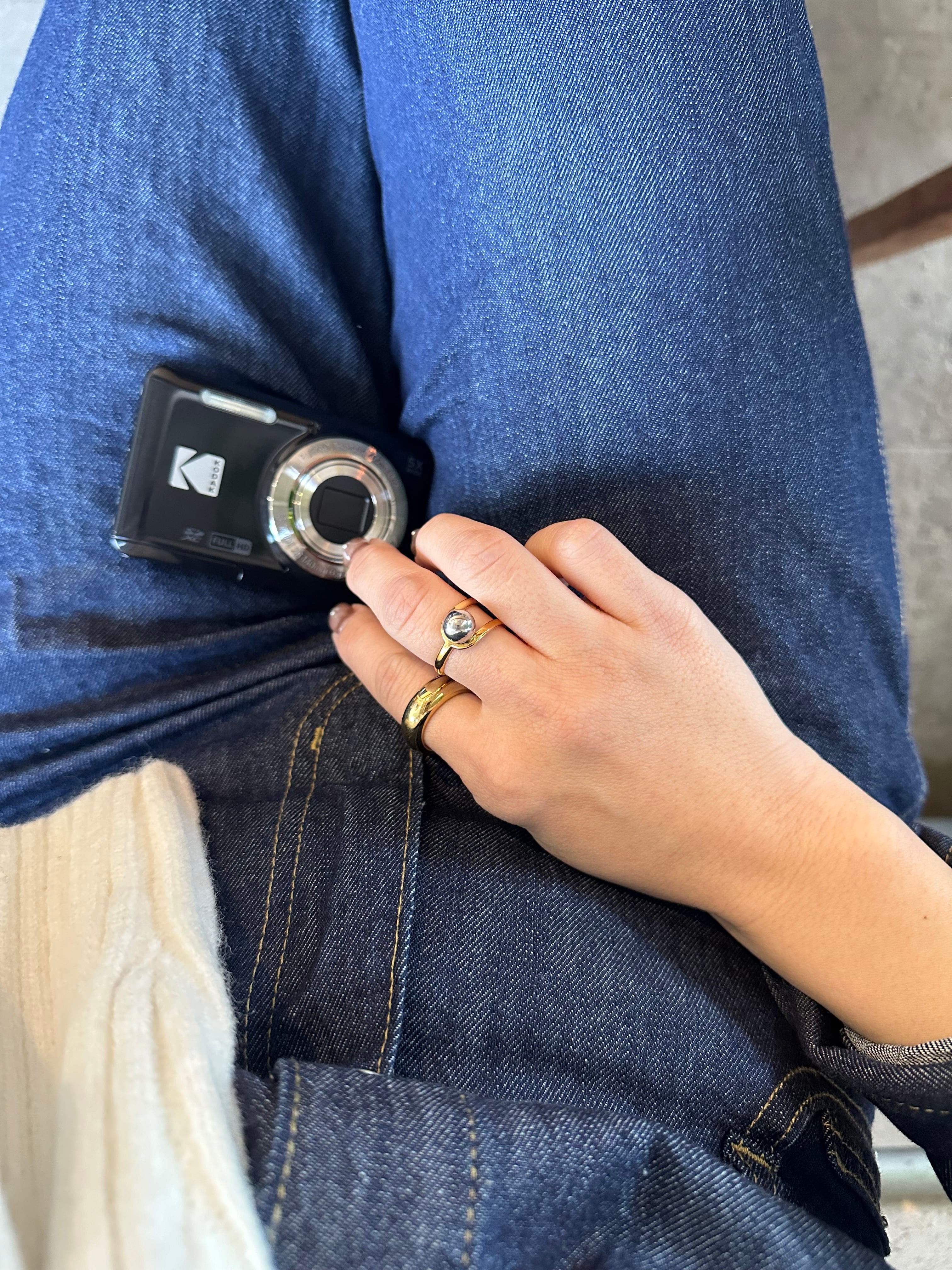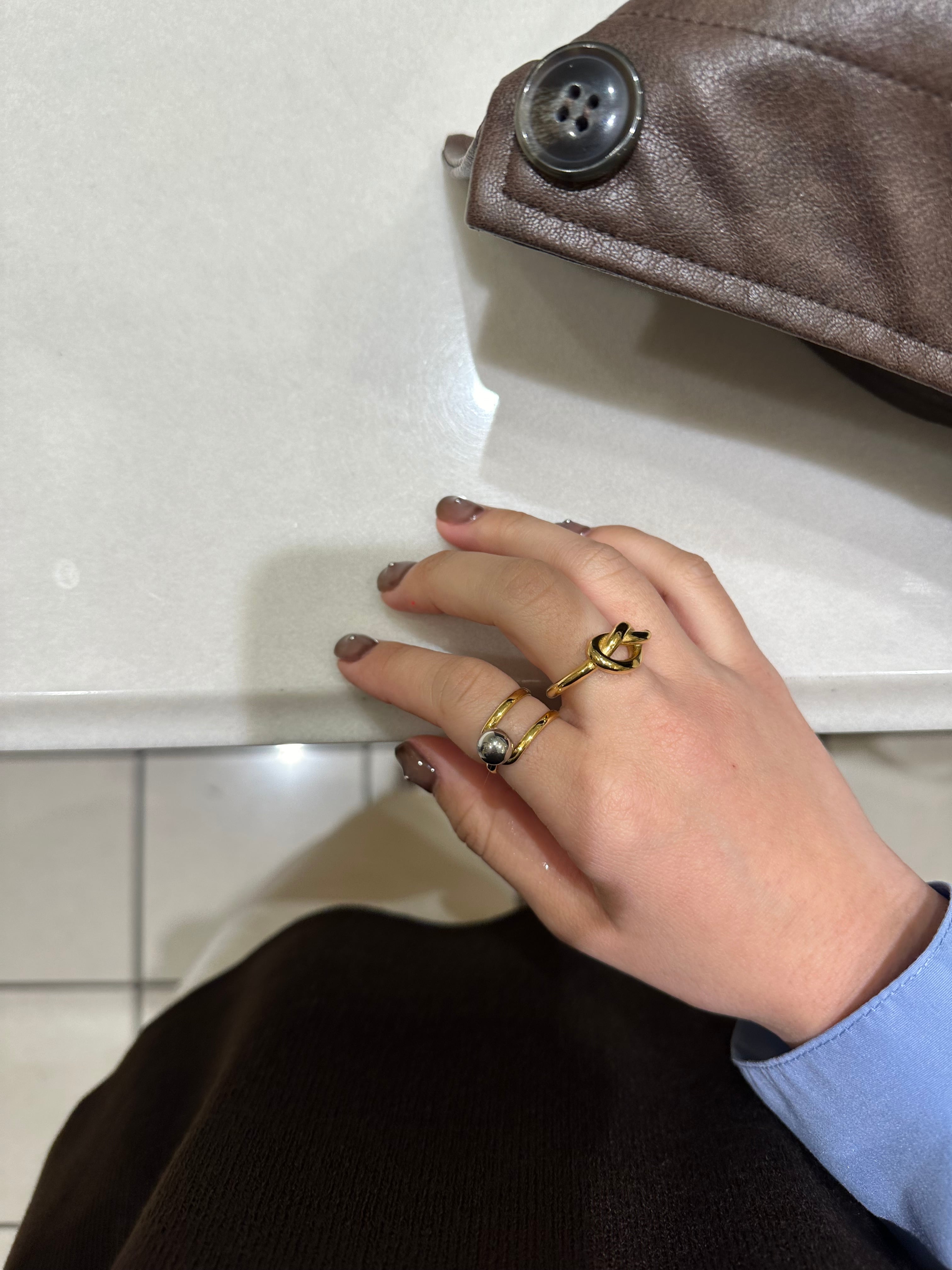ゴールドとシルバーのコントラストが印象的な、バイカラーデザインリング。