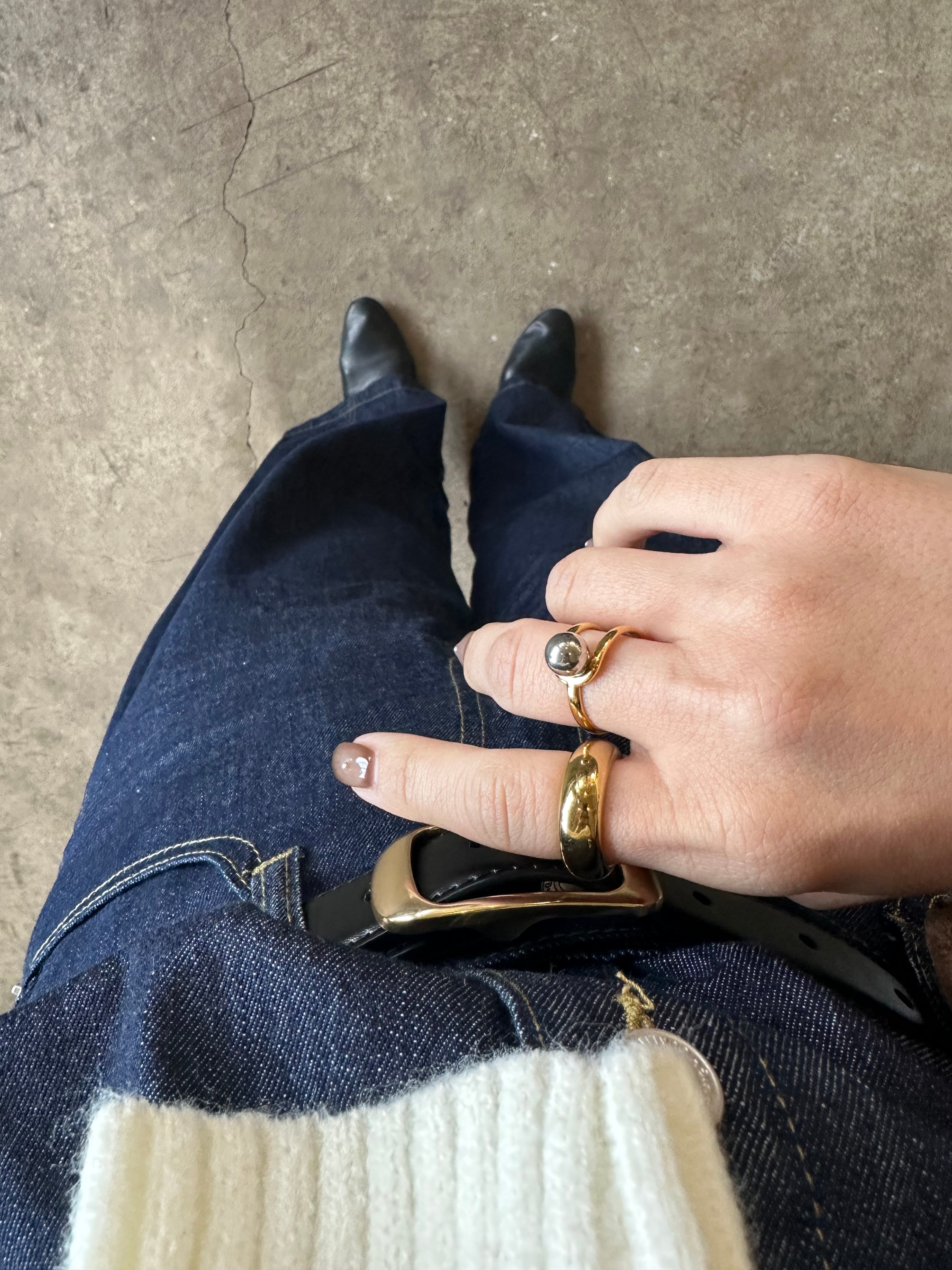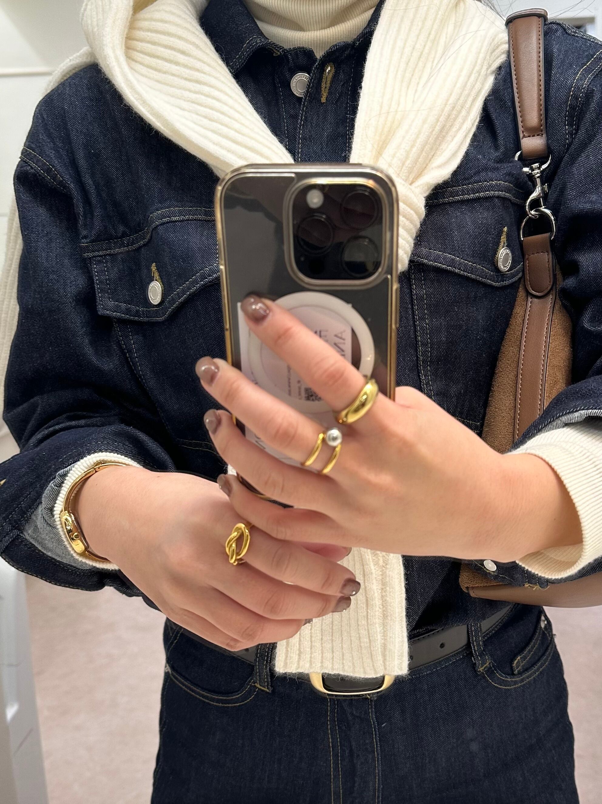 ゴールド・シルバーどちらのアクセサリーとも合わせやすく、