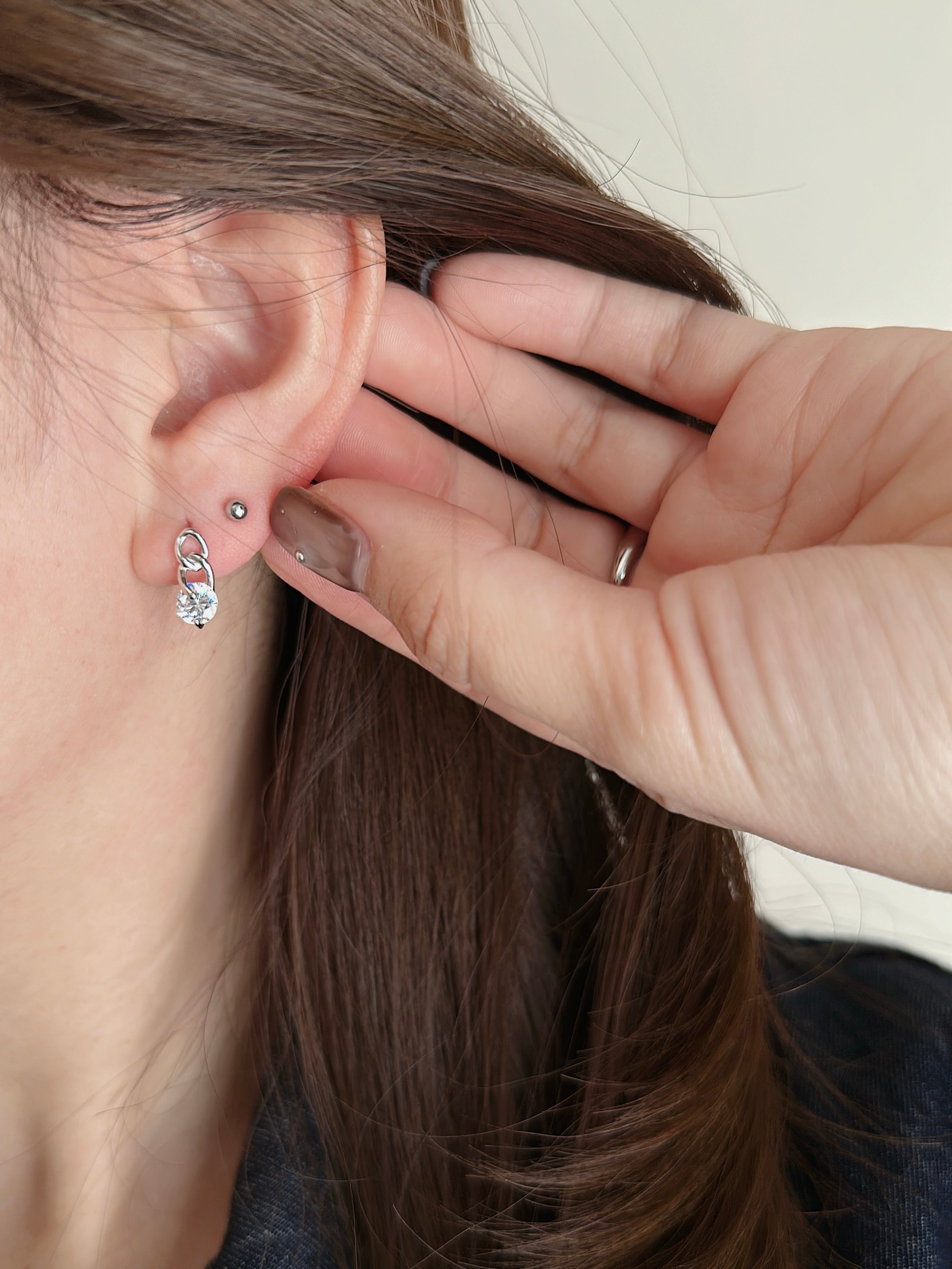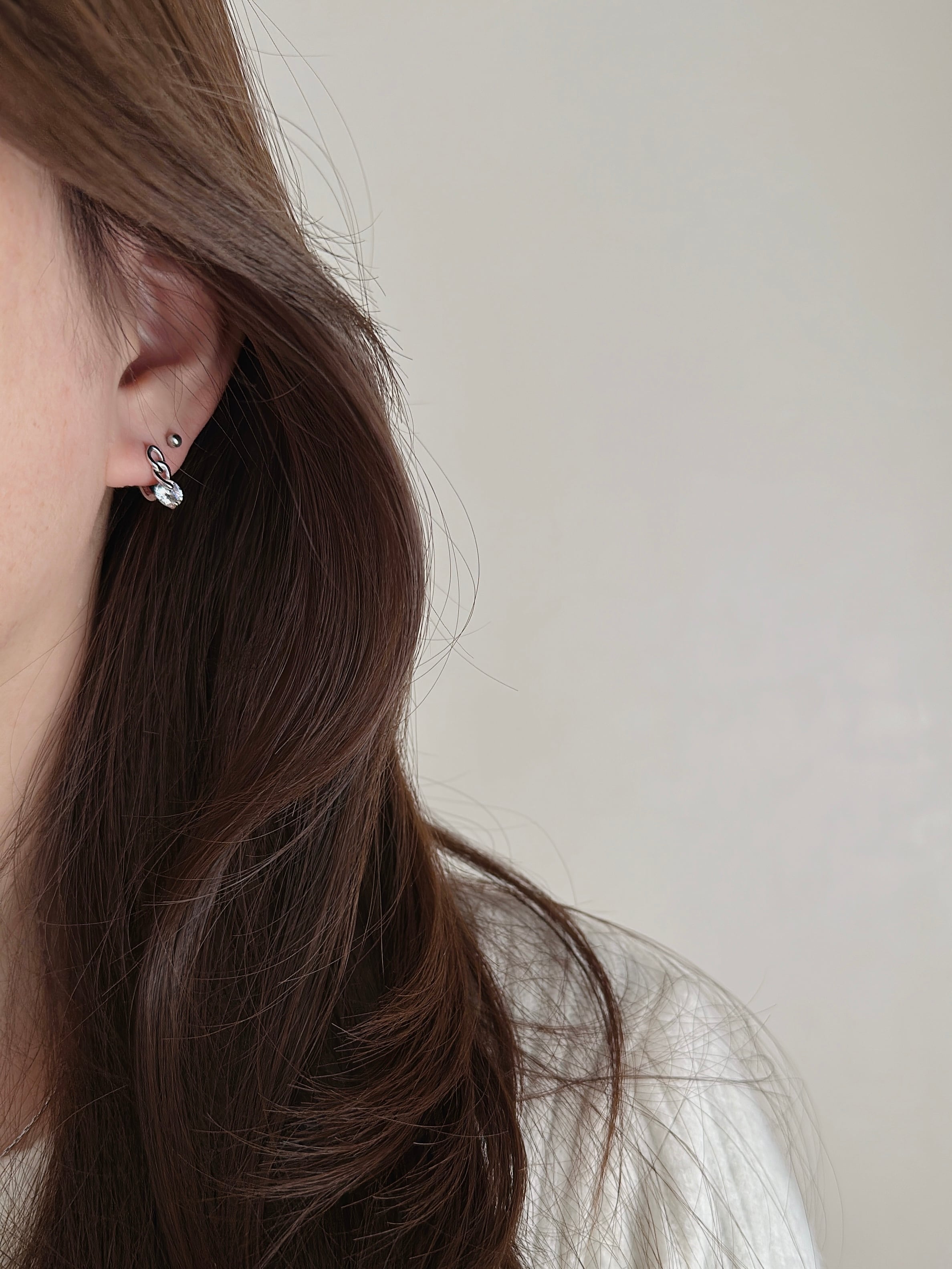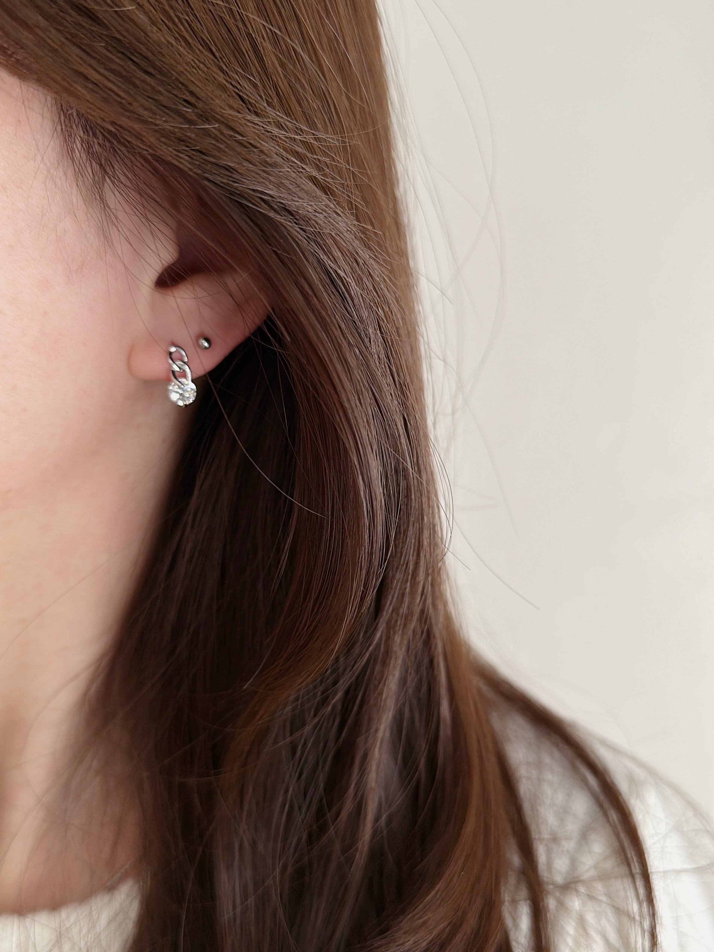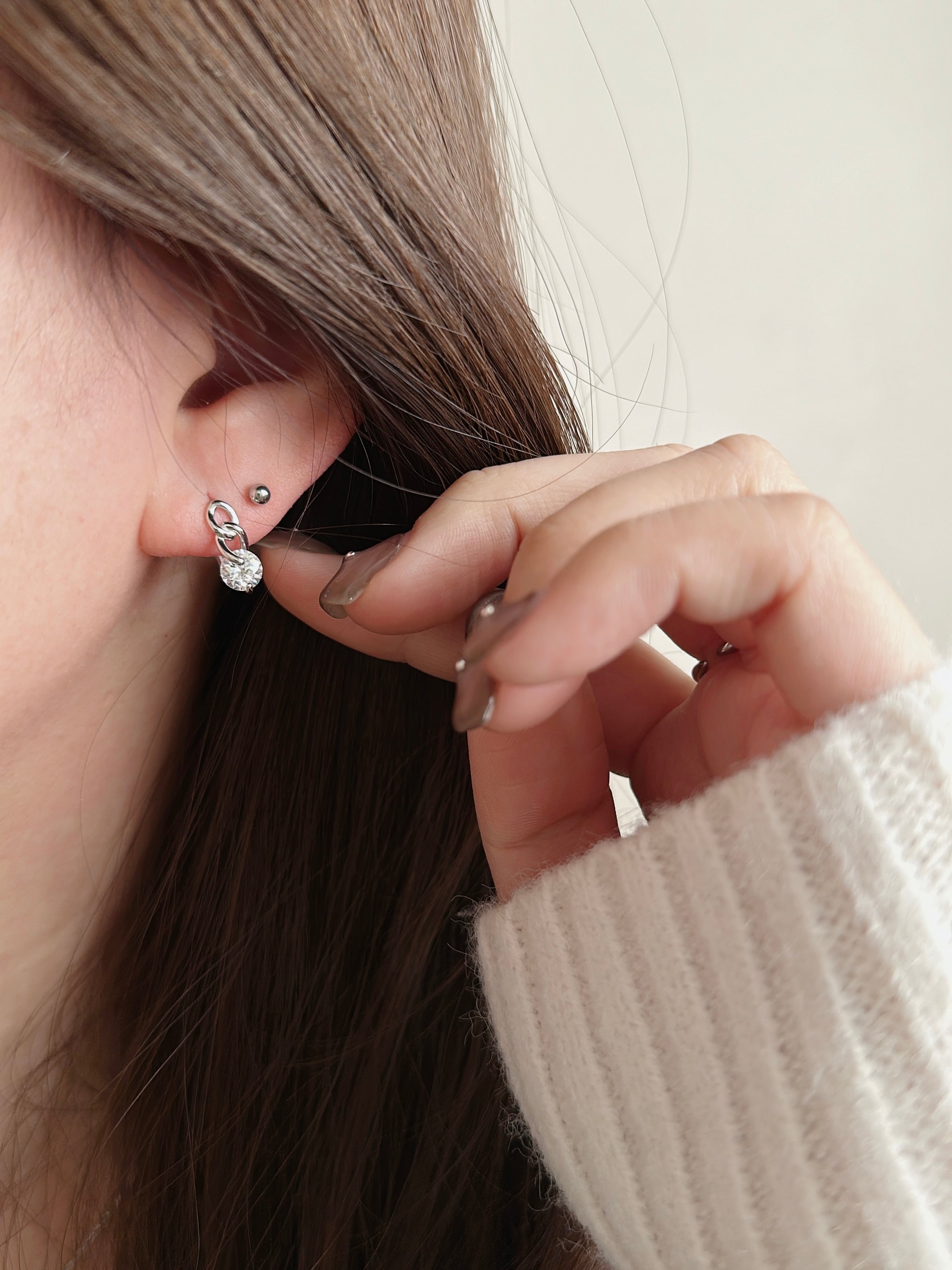 他のピアスとのレイヤードスタイルにもおすすめ。