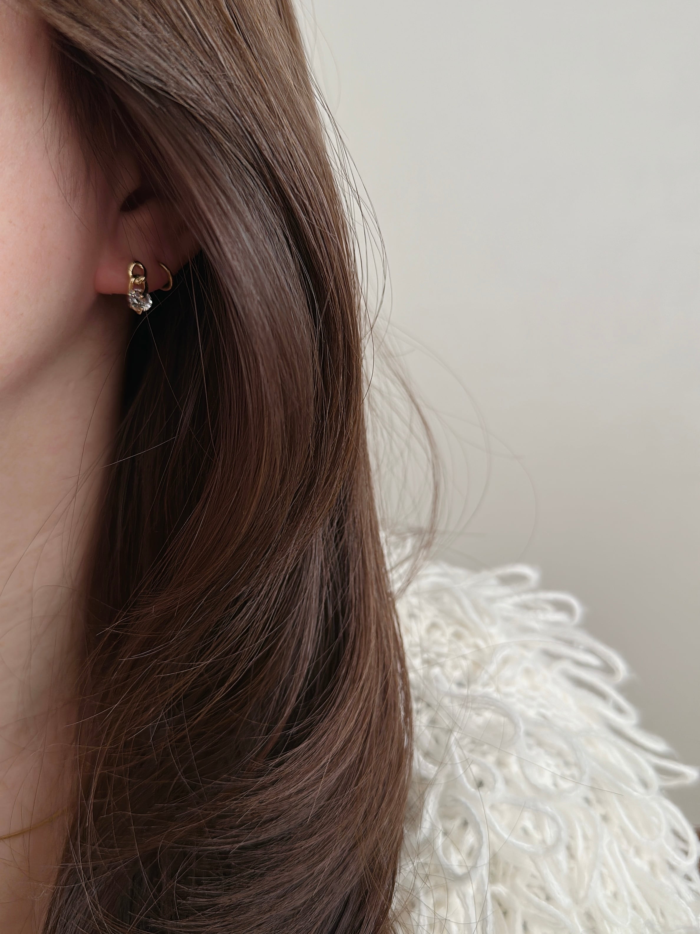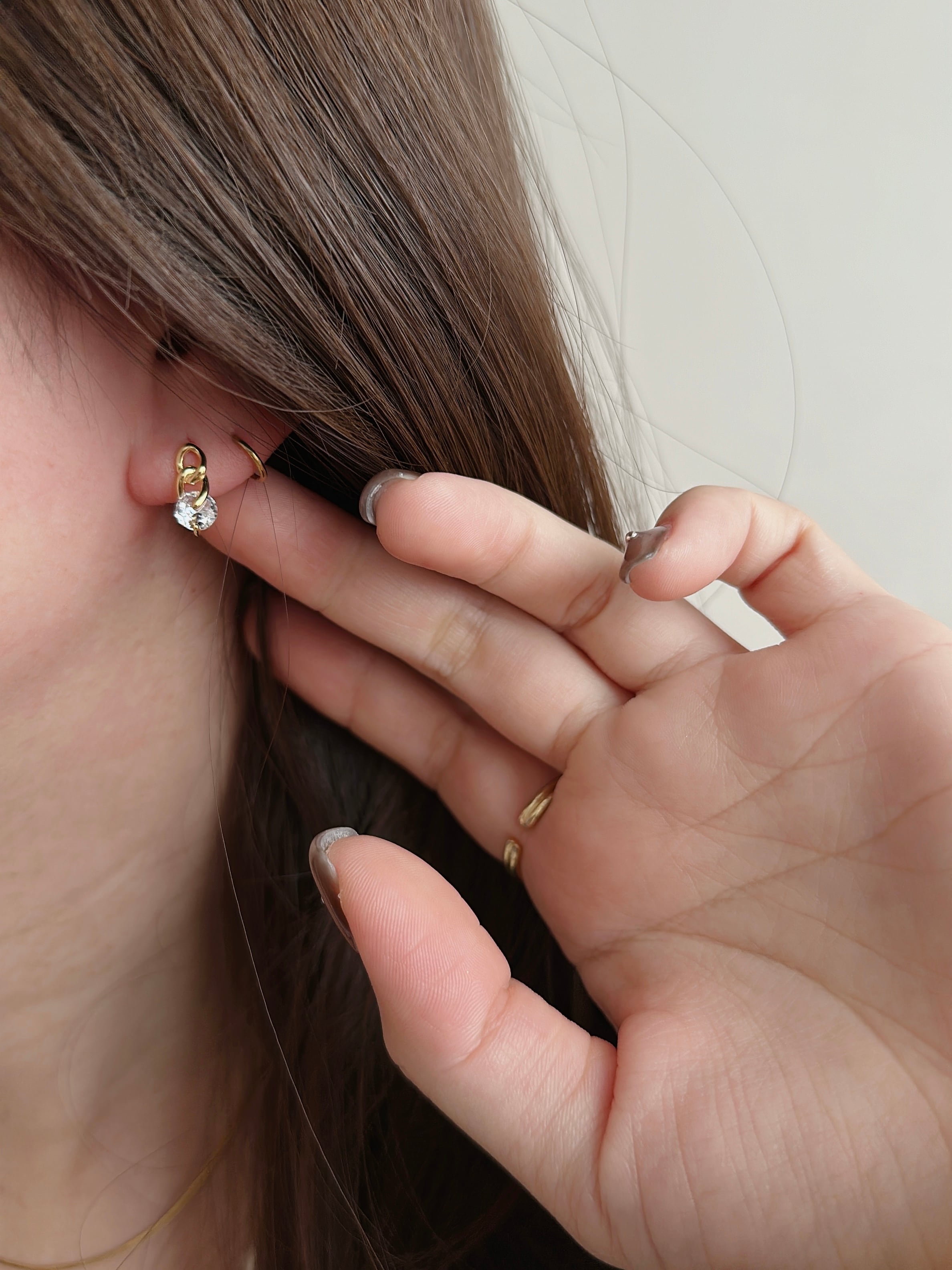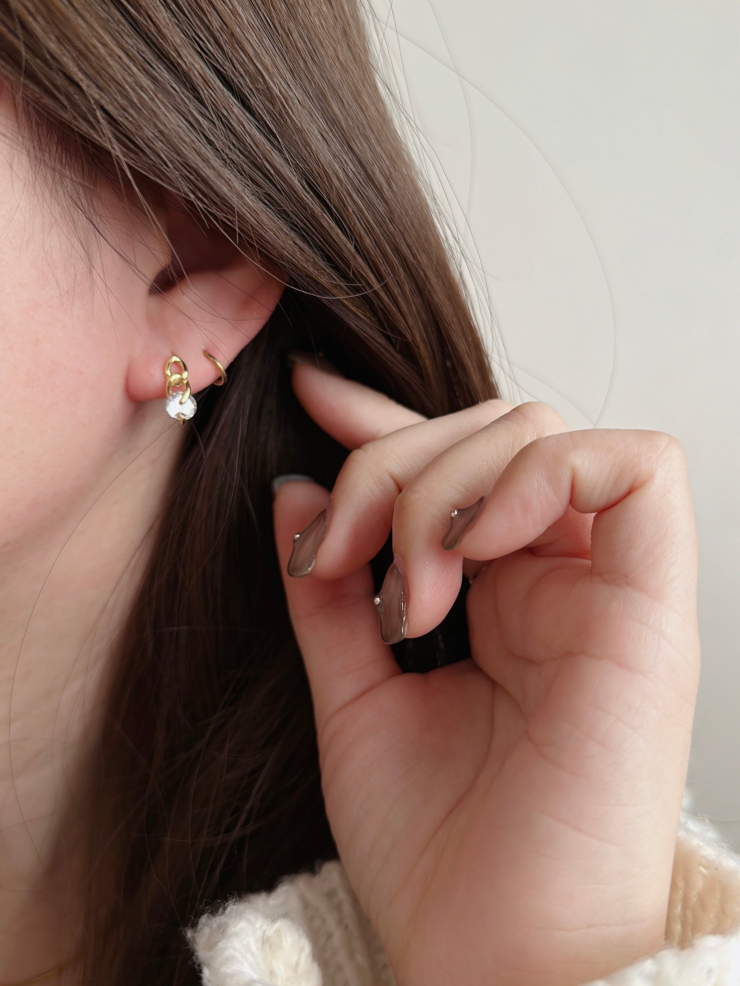 他のピアスとのレイヤードスタイルにもおすすめ。