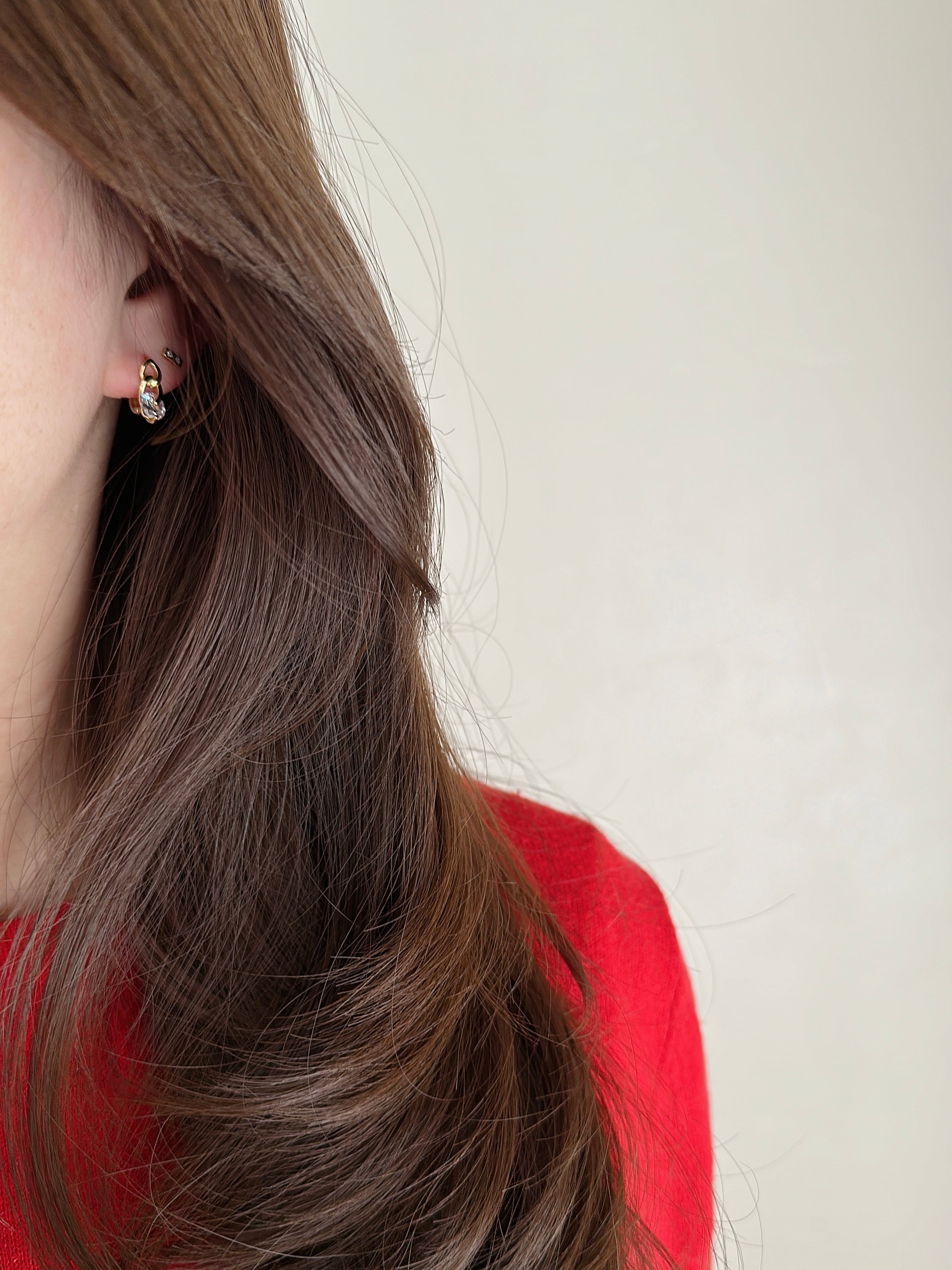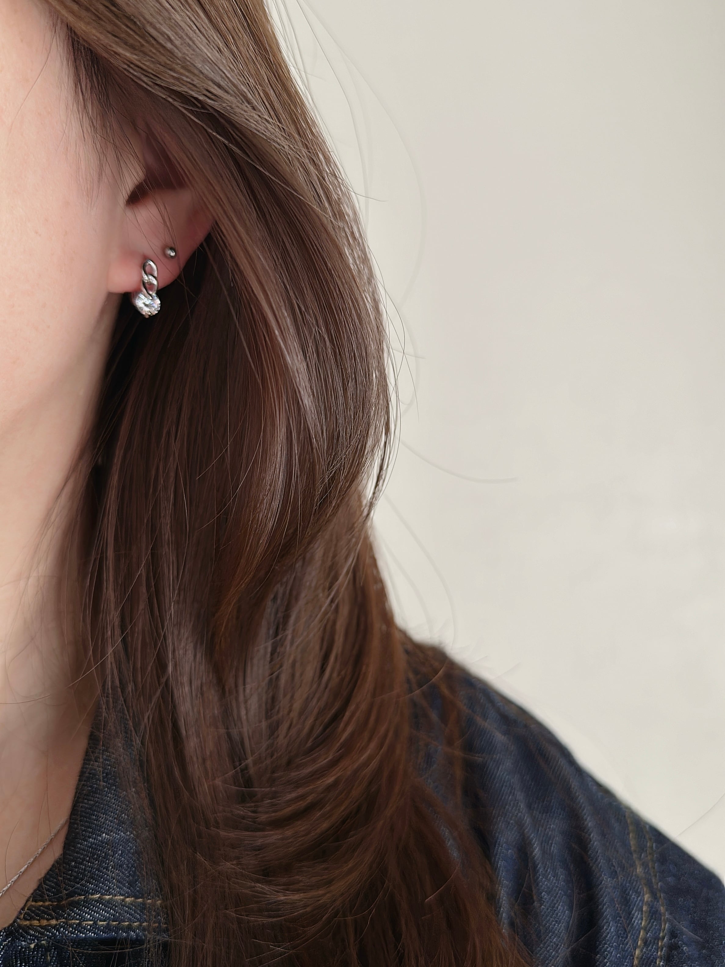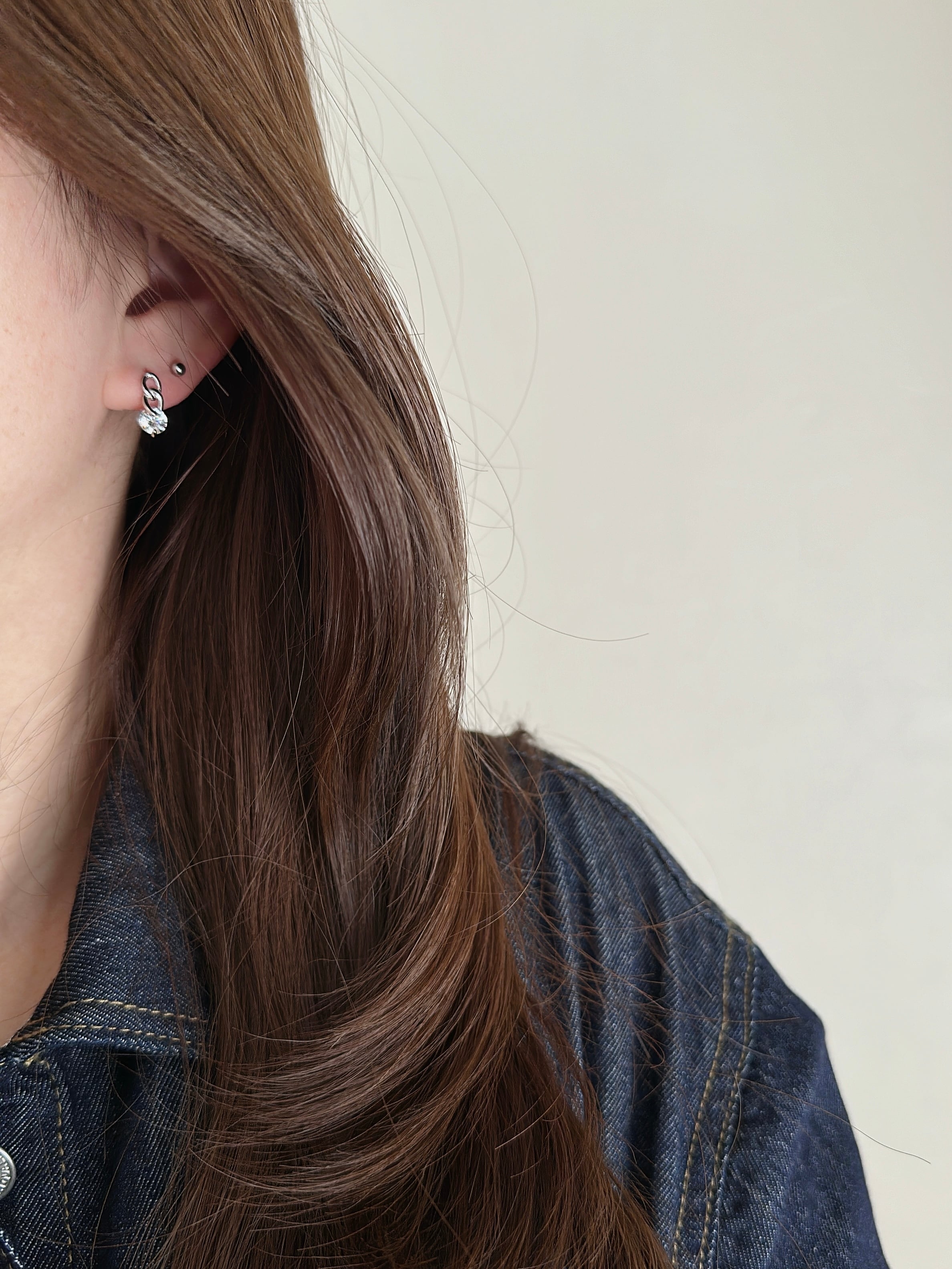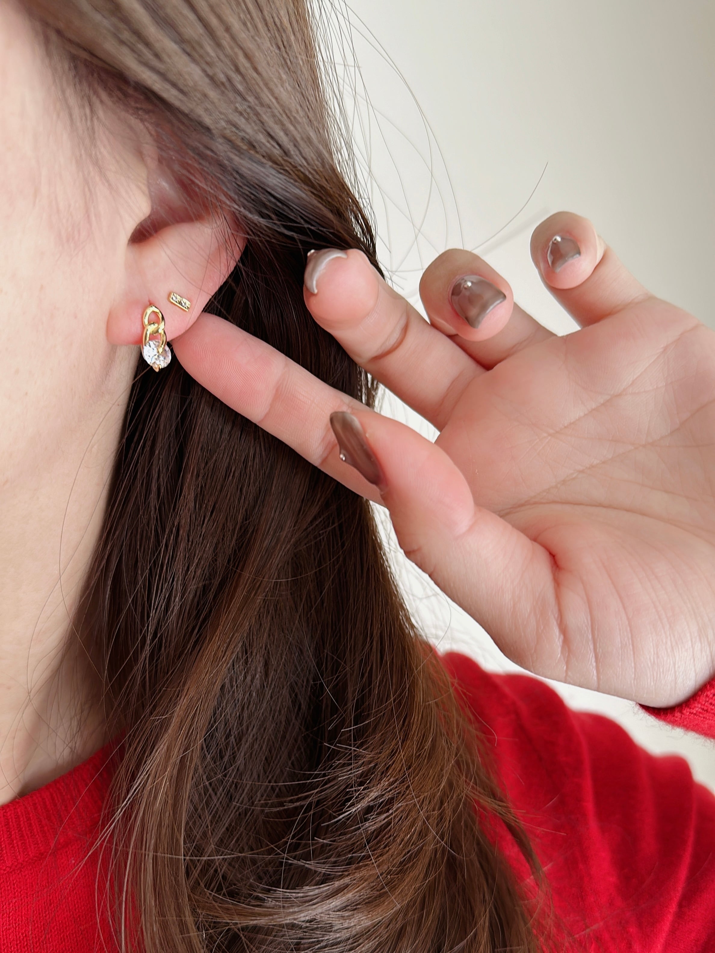 他のピアスとのレイヤードスタイルにもおすすめ。
