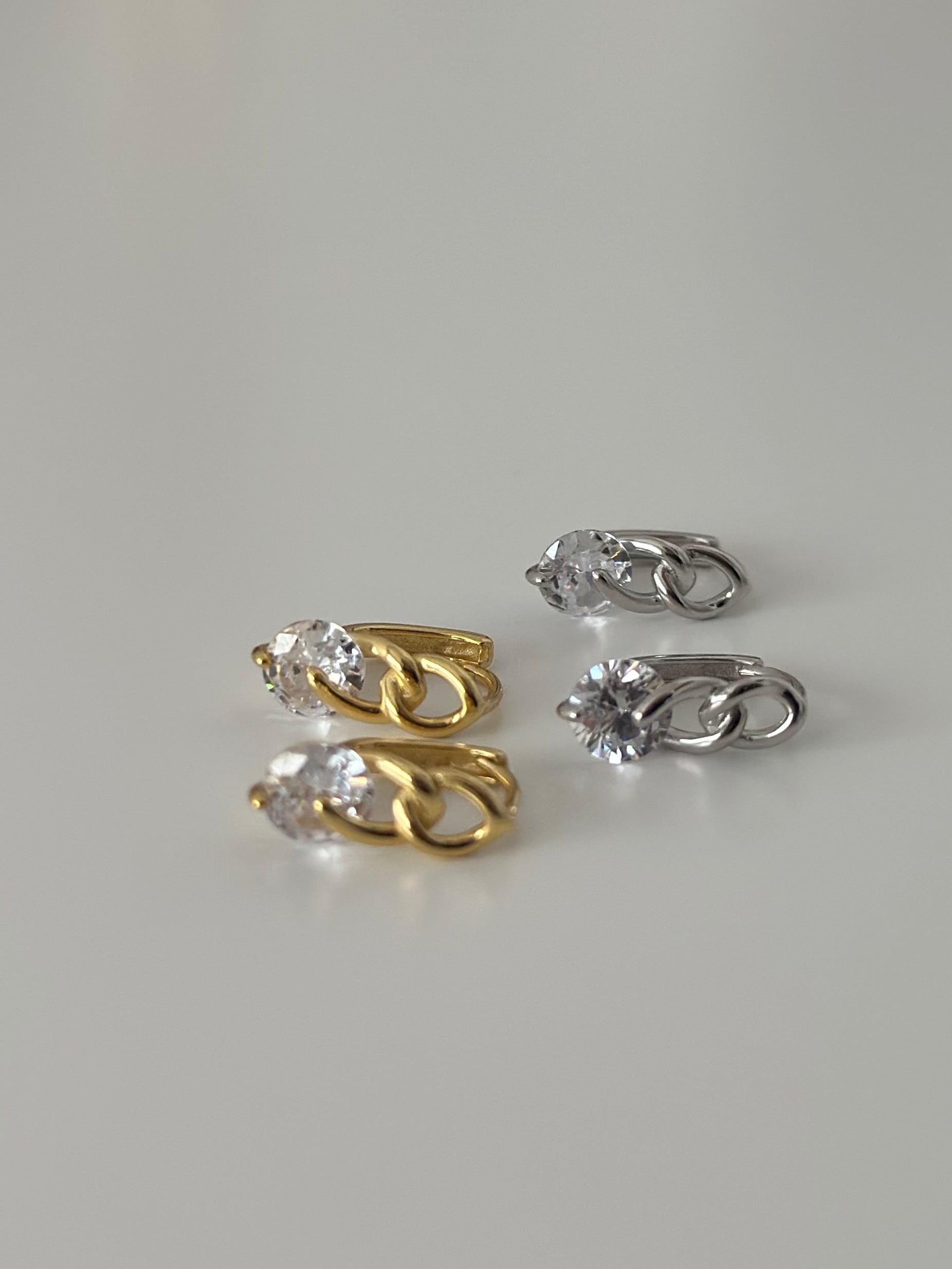 繊細なチェーンモチーフと一粒ストーンを組み合わせたデザインが、