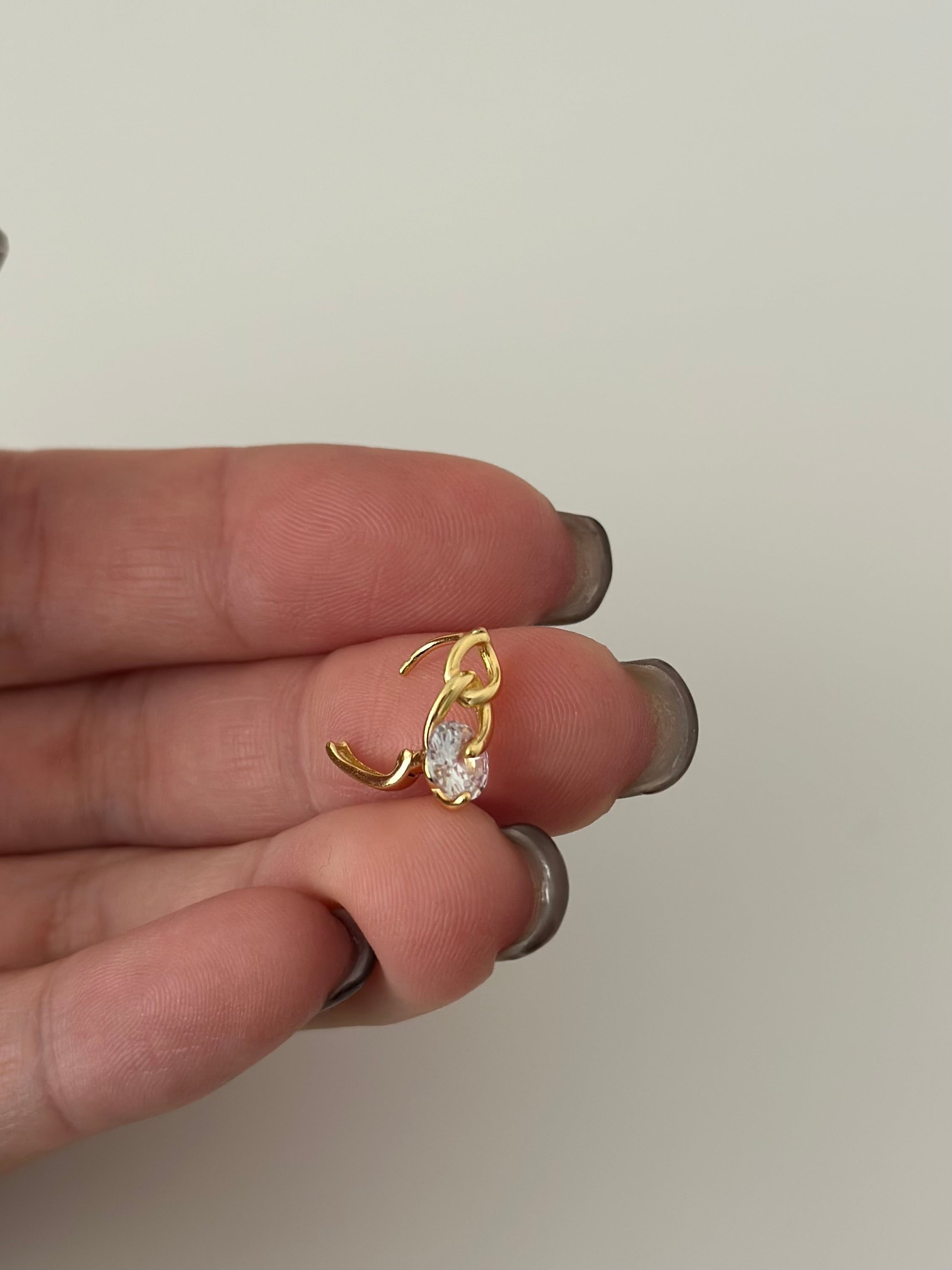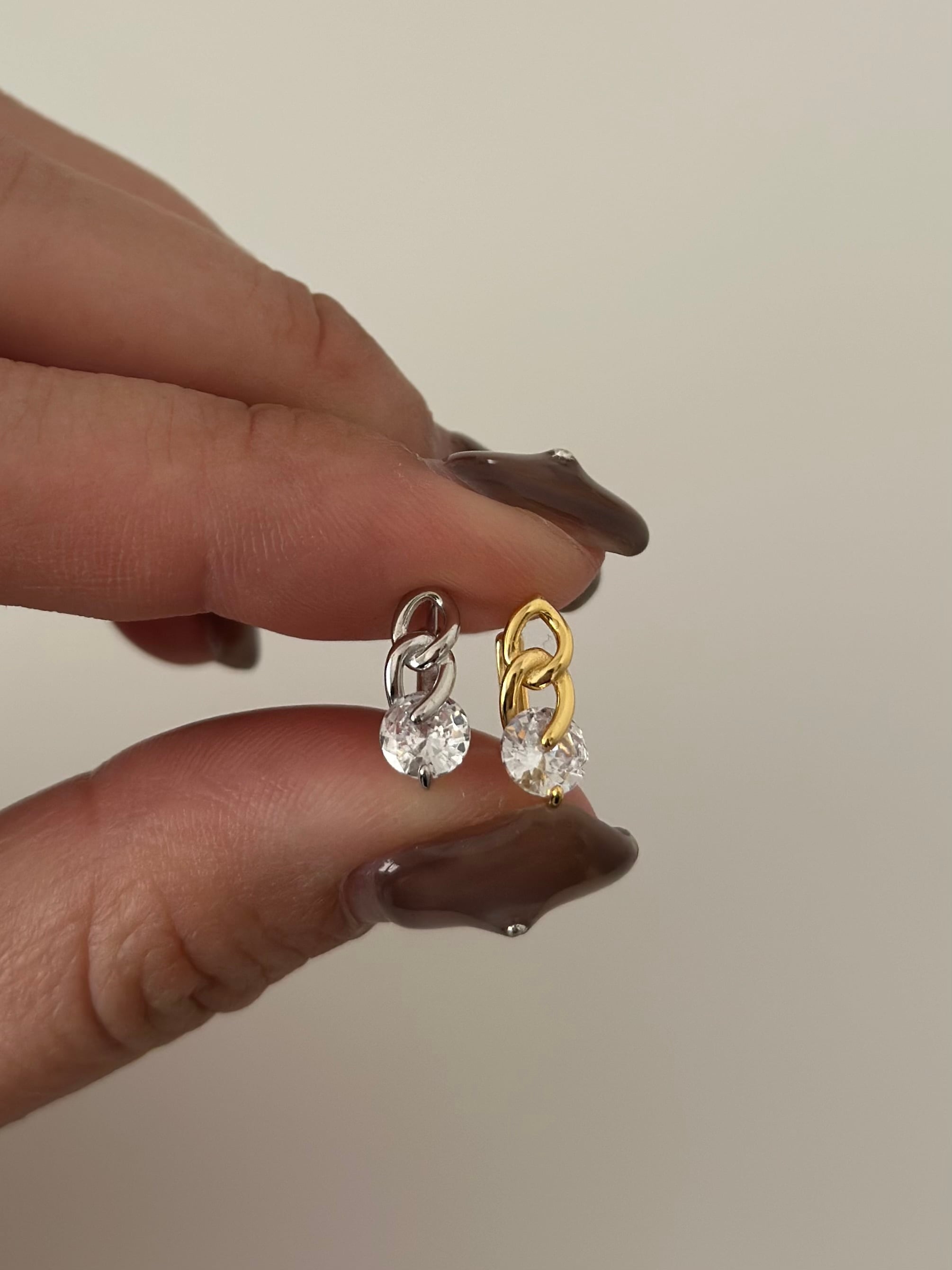 揺れる輝きが耳元に華やぎを添える、ワンストーンチェーンピアス。