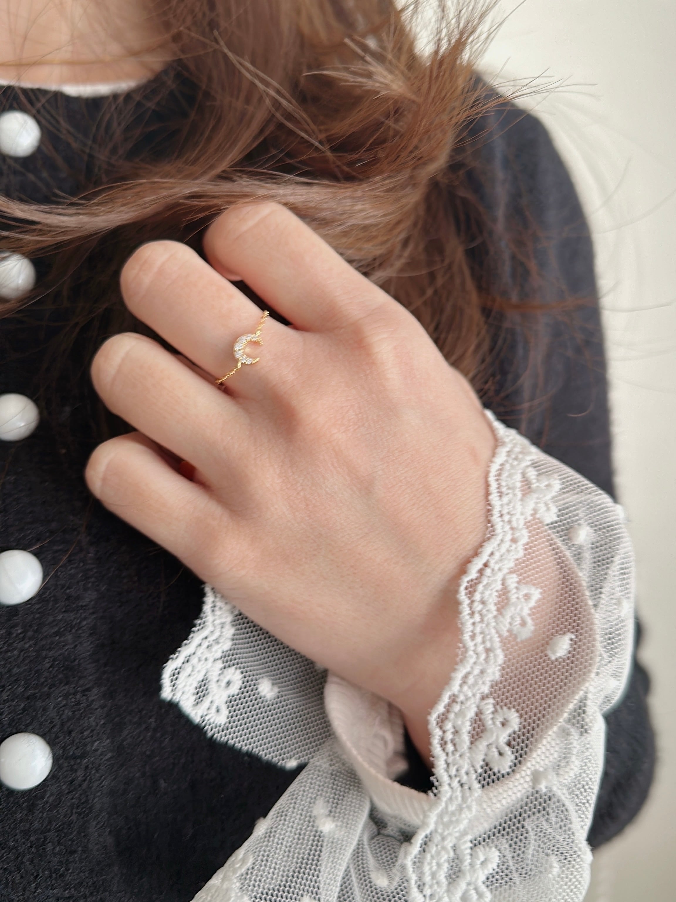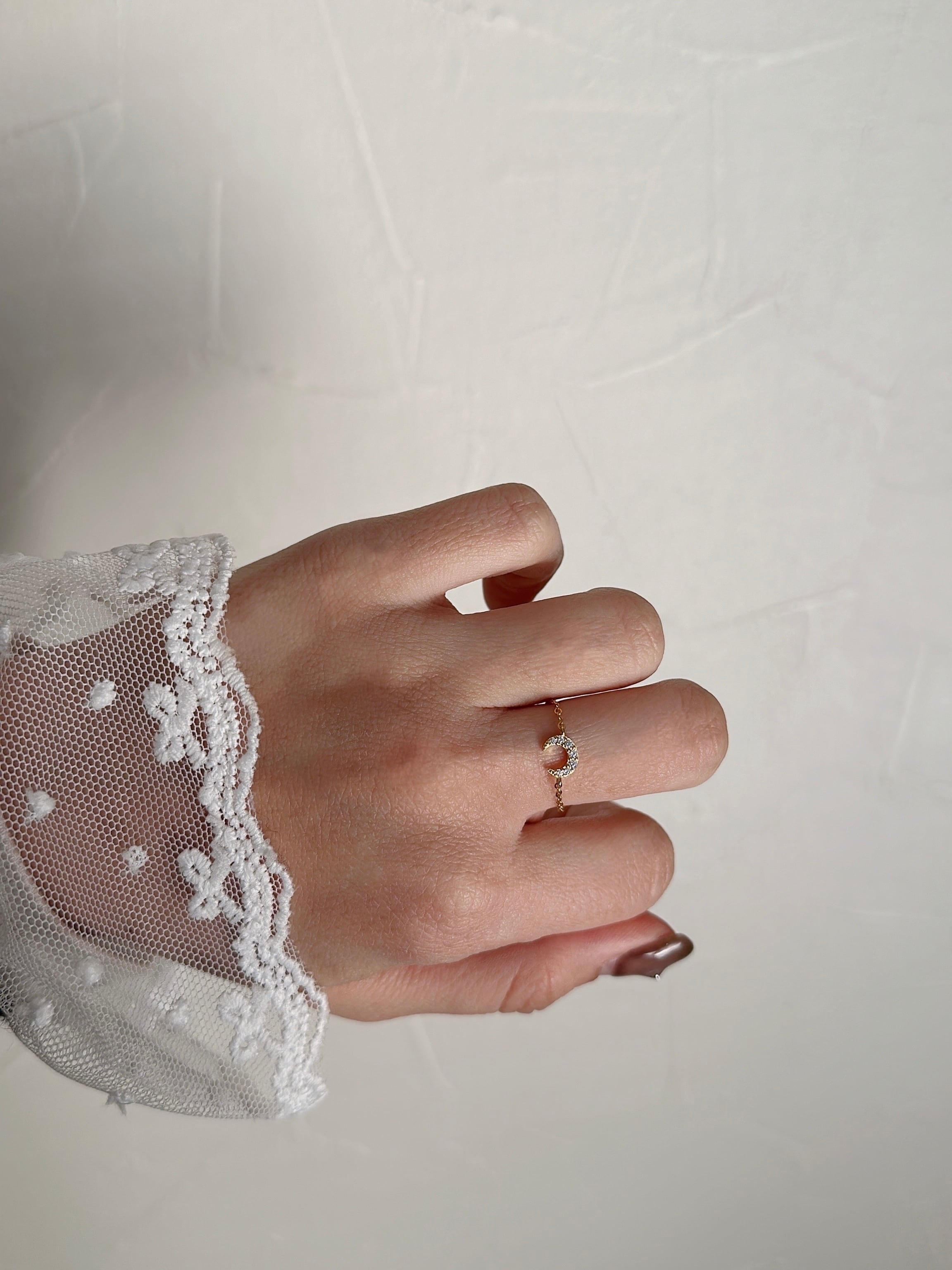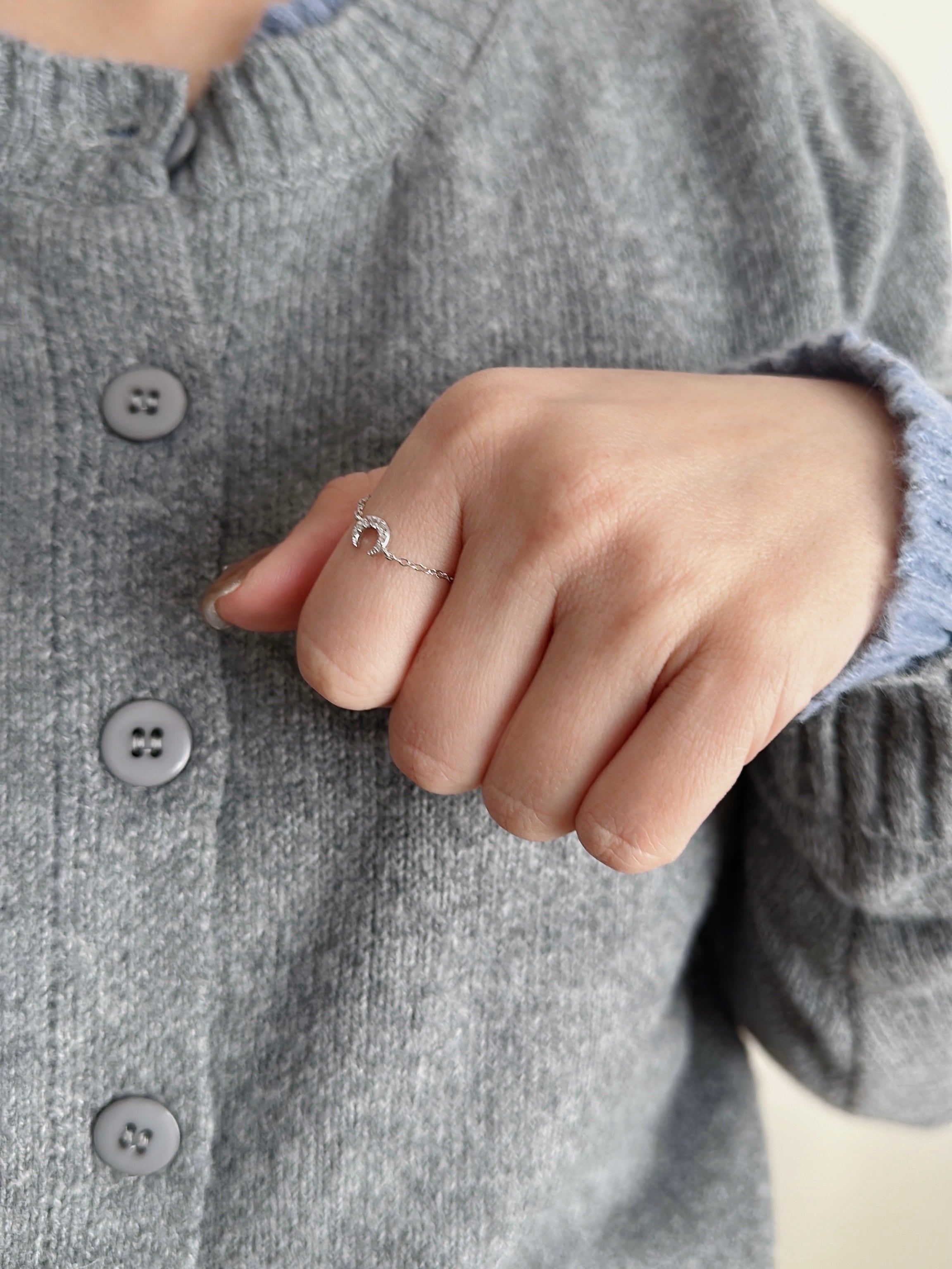 さりげない輝きを添えたムーンチェーンリング。