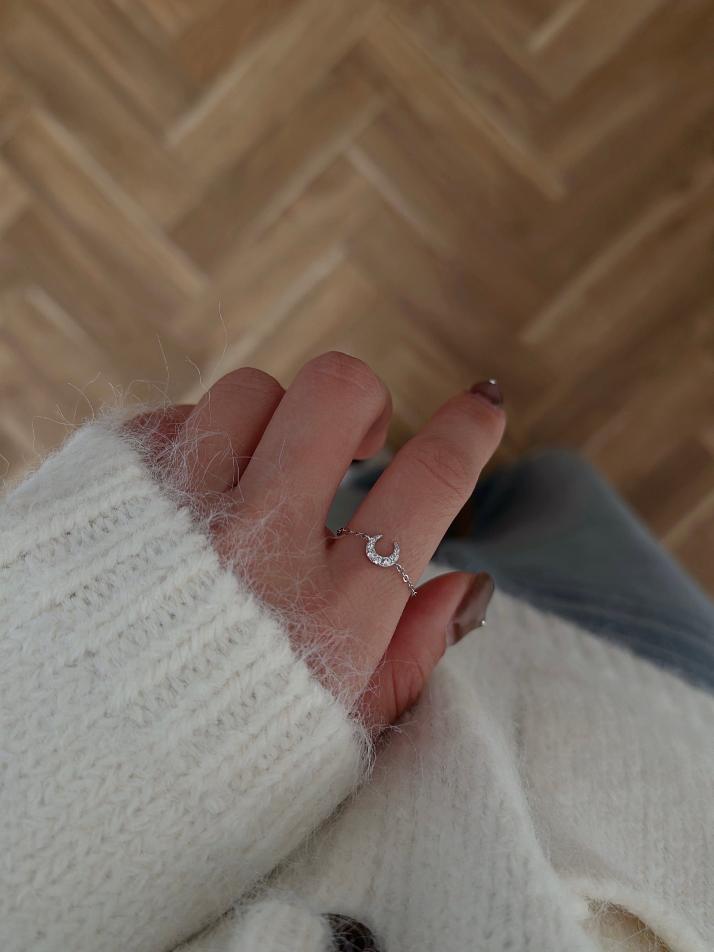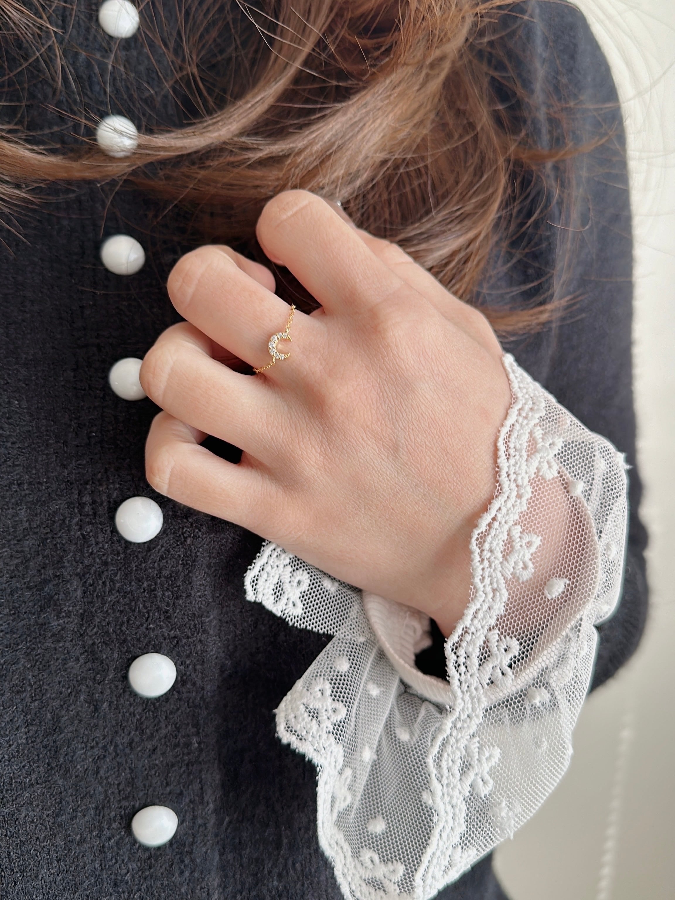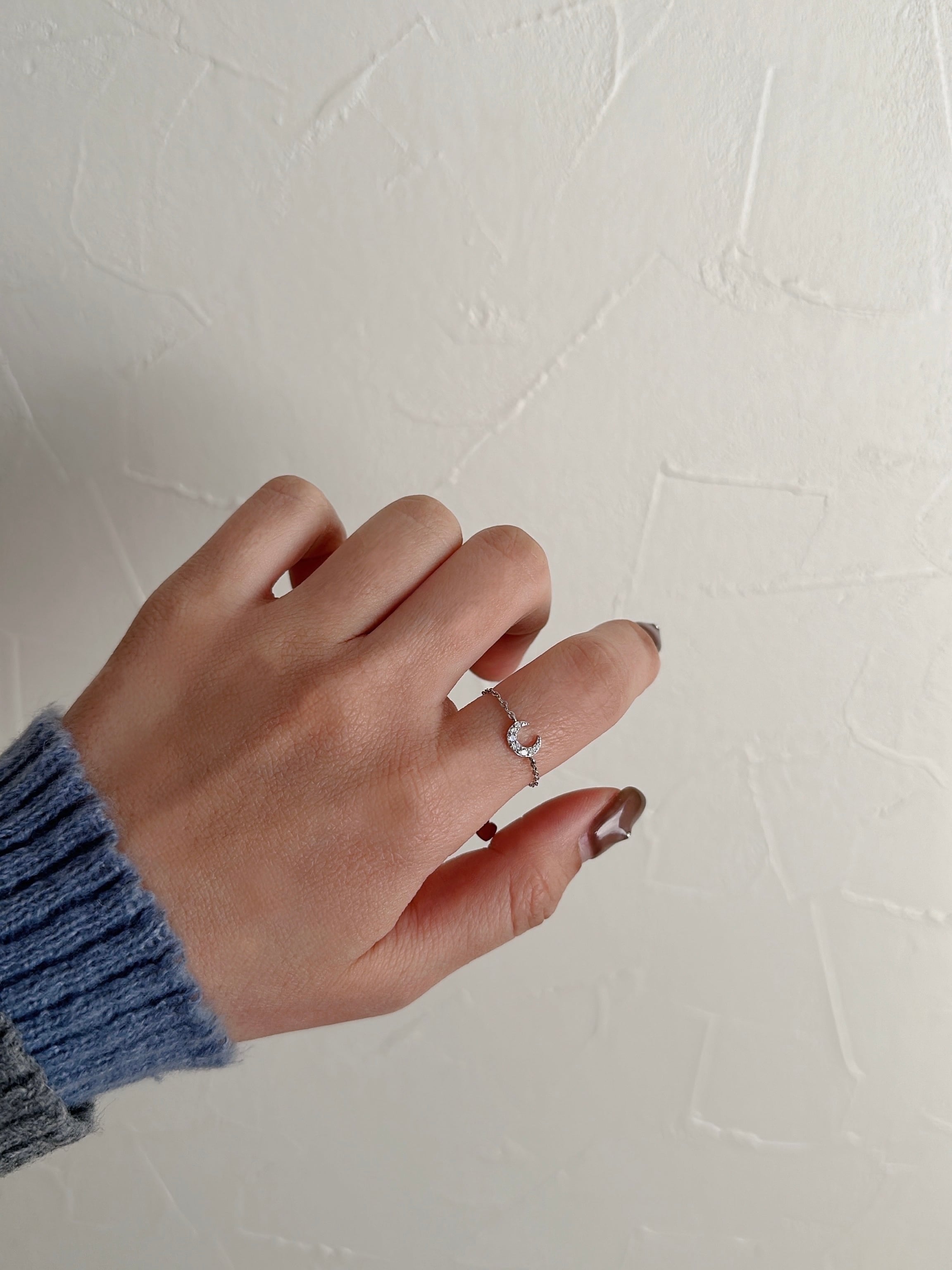 さりげない輝きを添えたムーンチェーンリング。