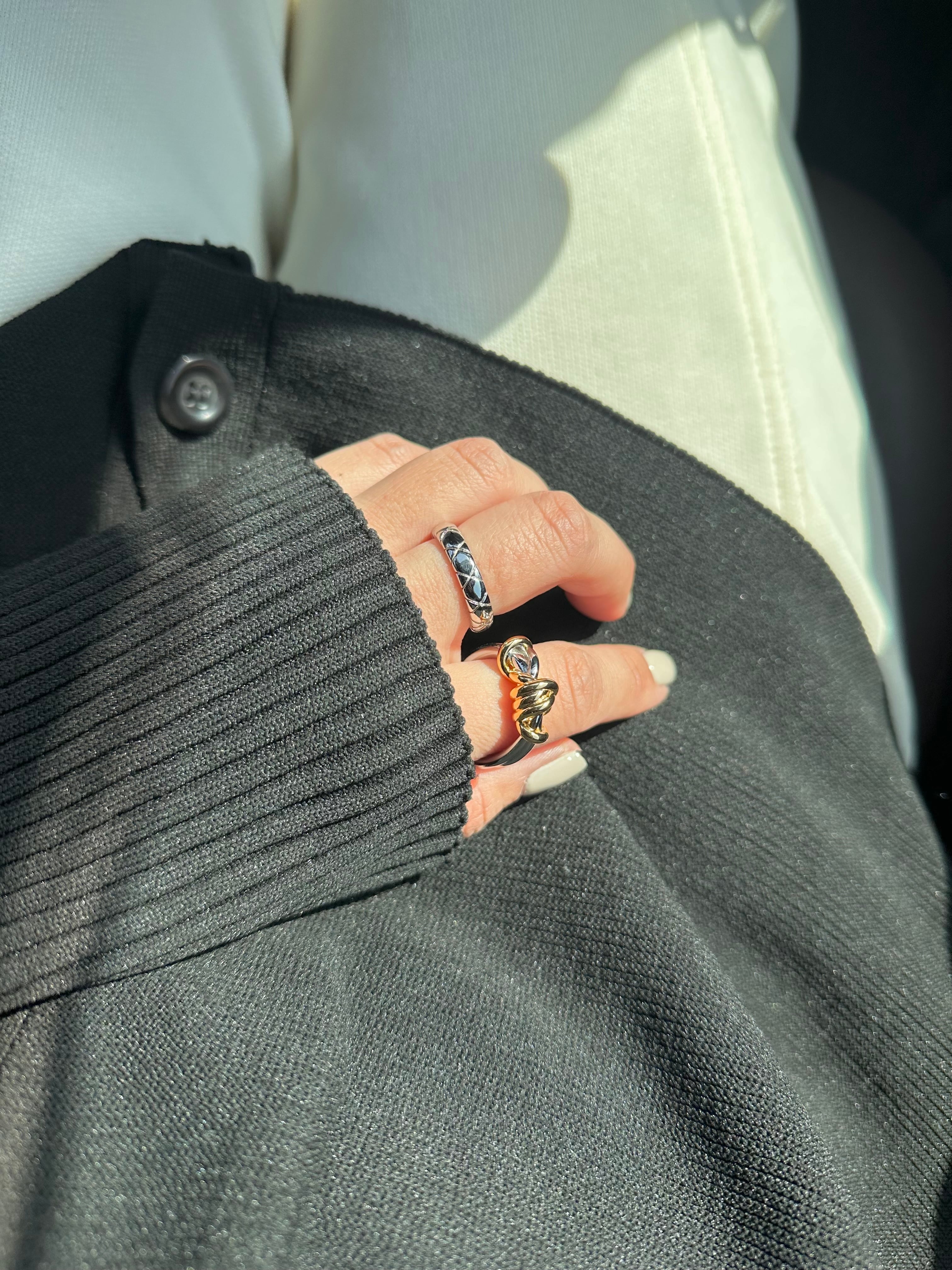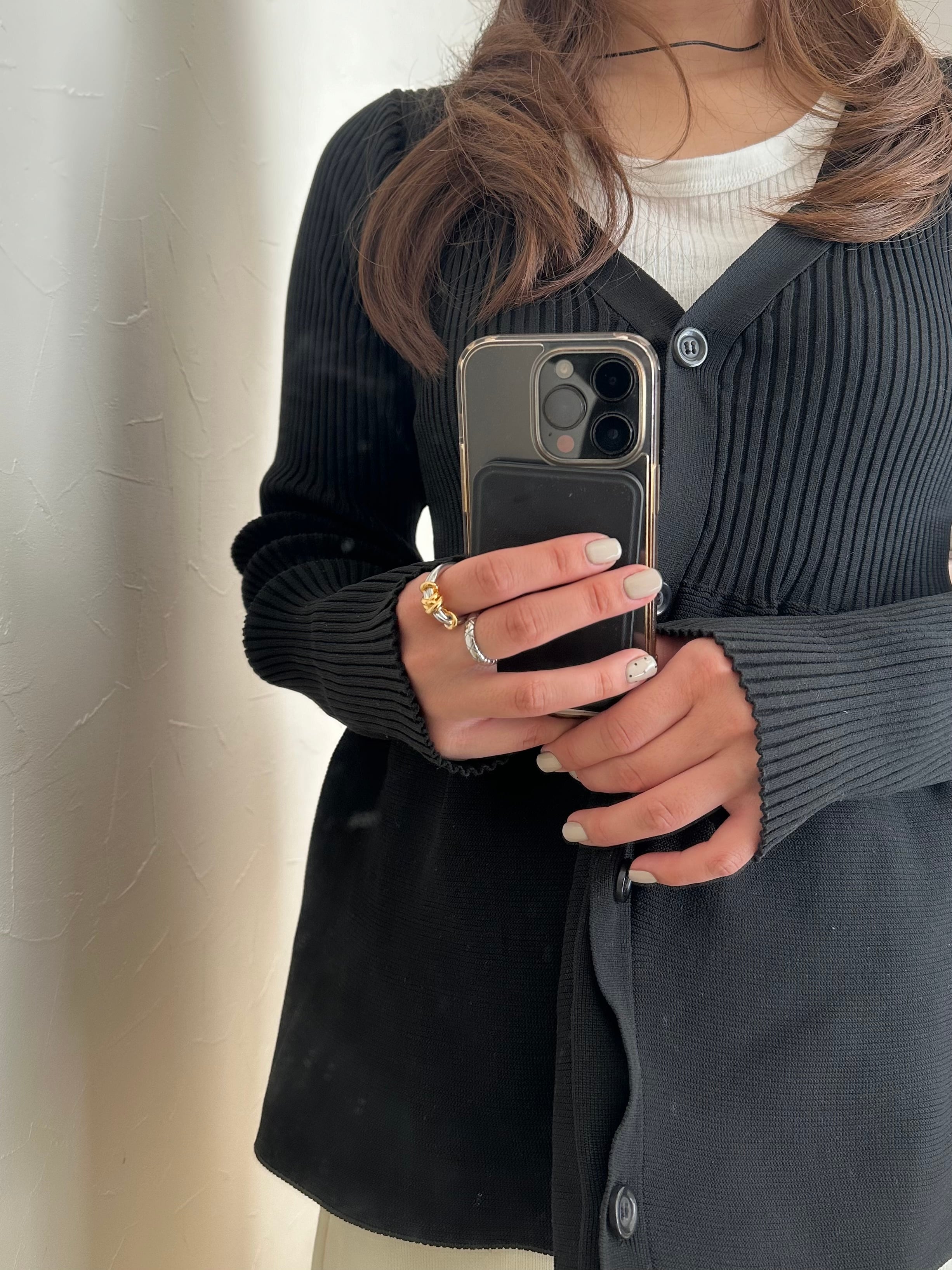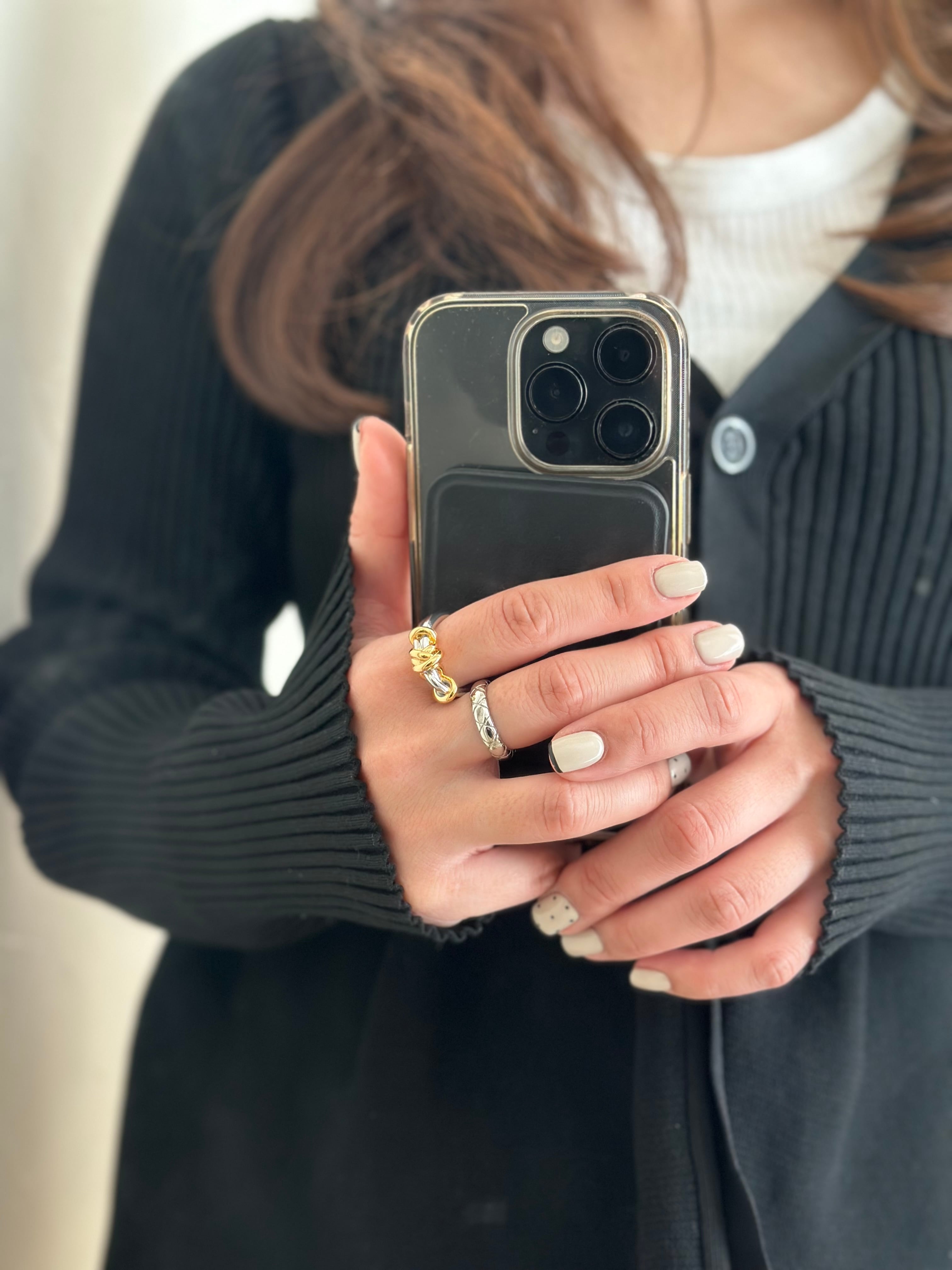 華奢なリングとの重ね付けもおすすめです。