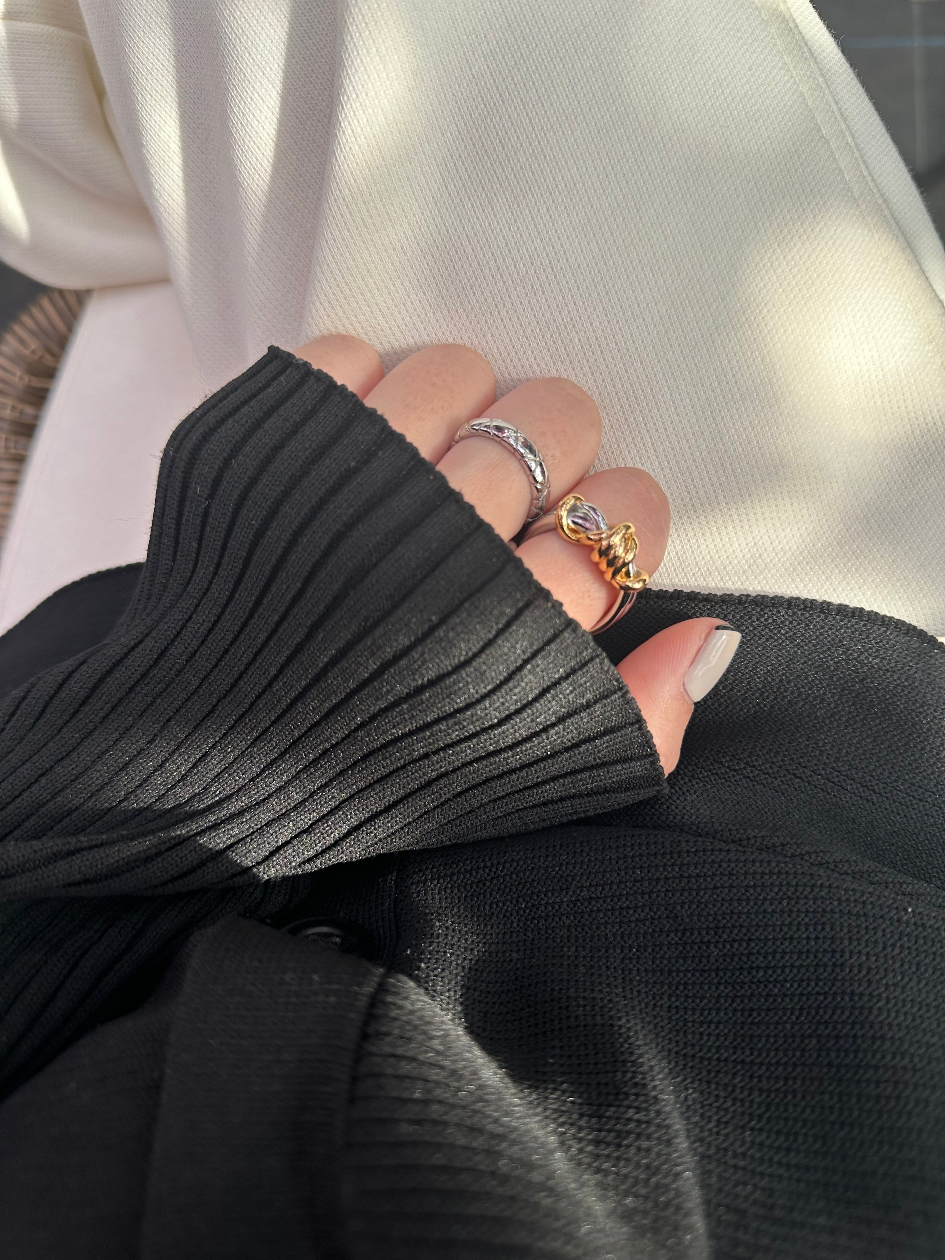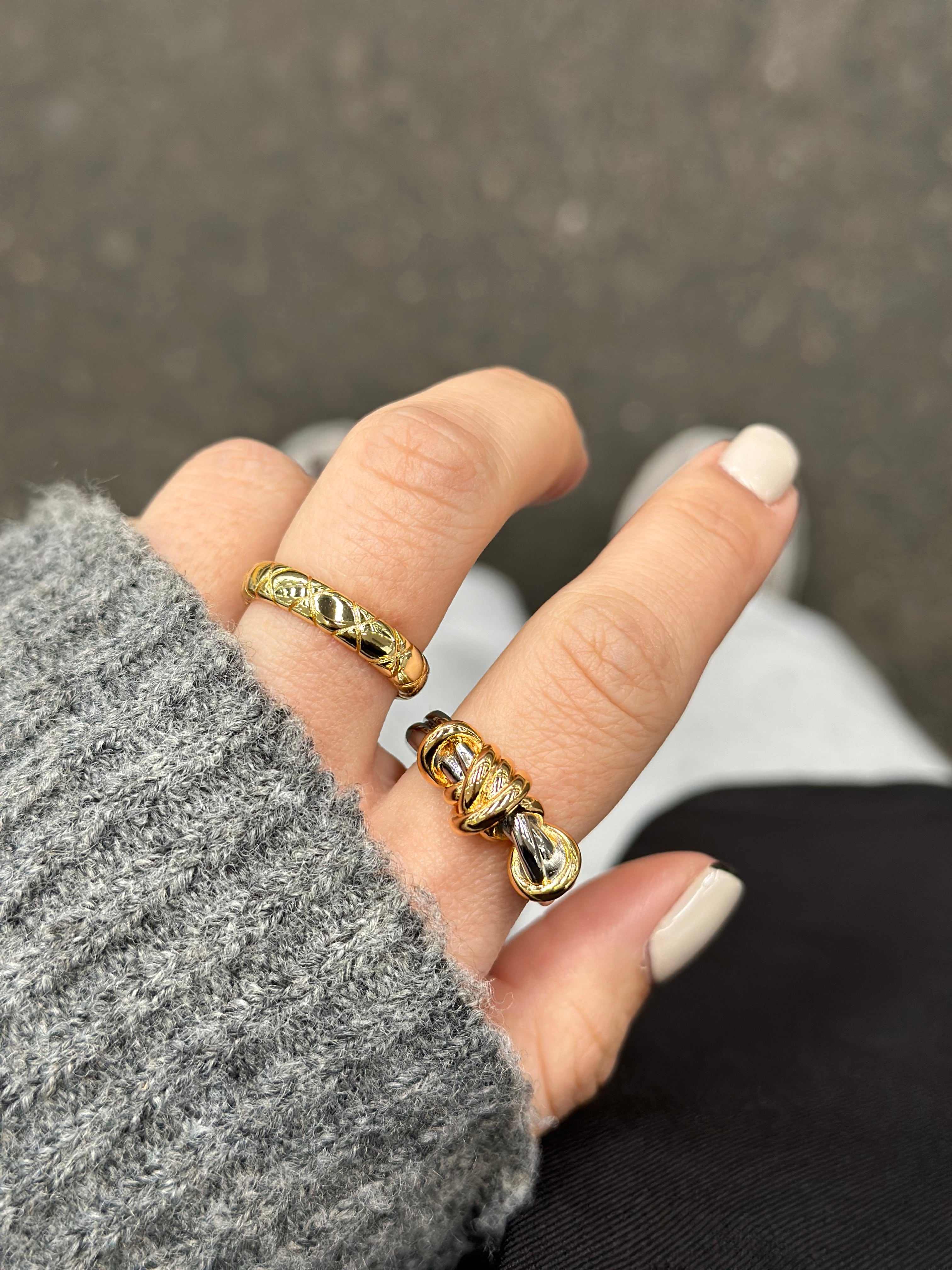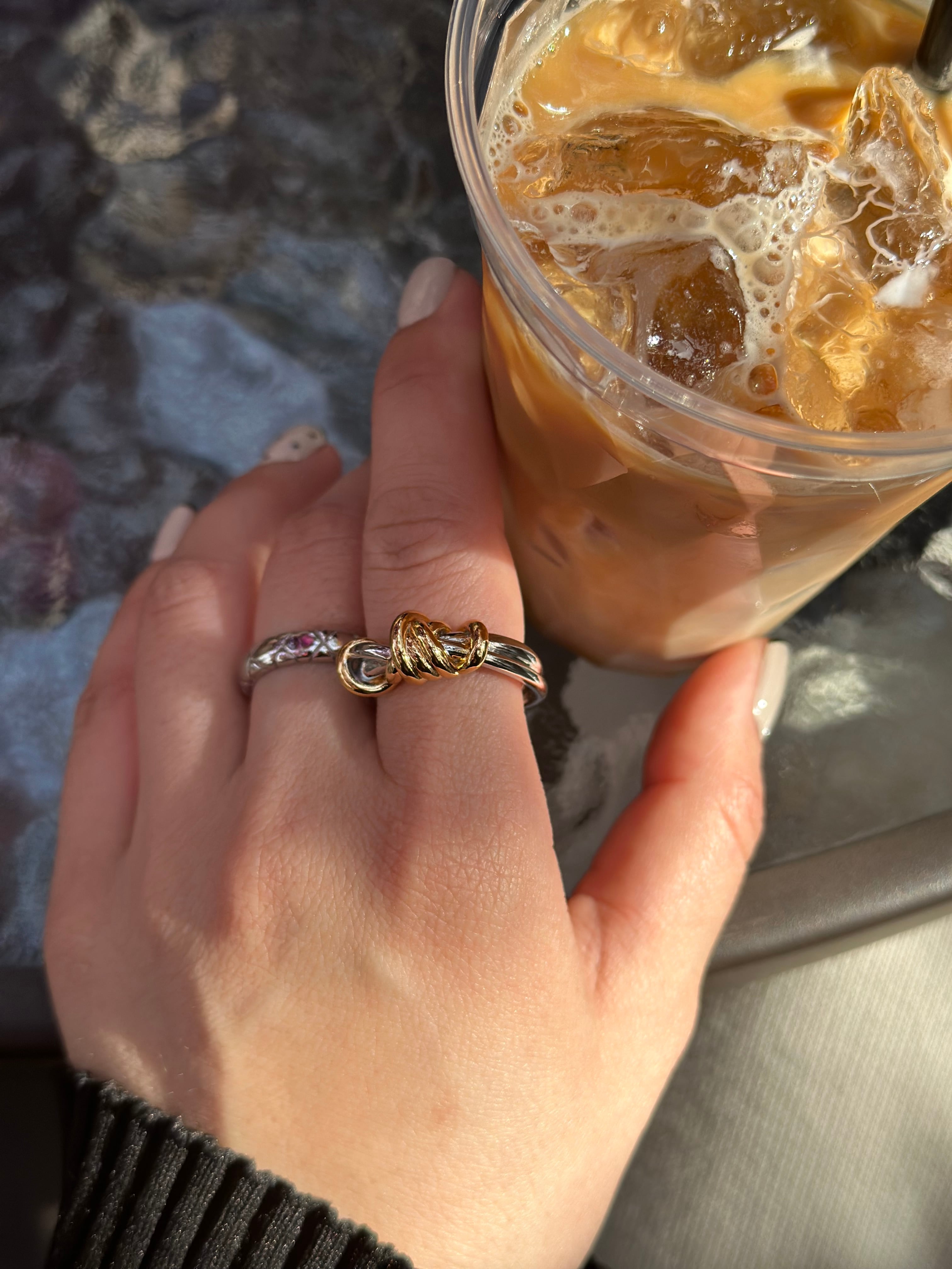 華奢なリングとの重ね付けもおすすめです。