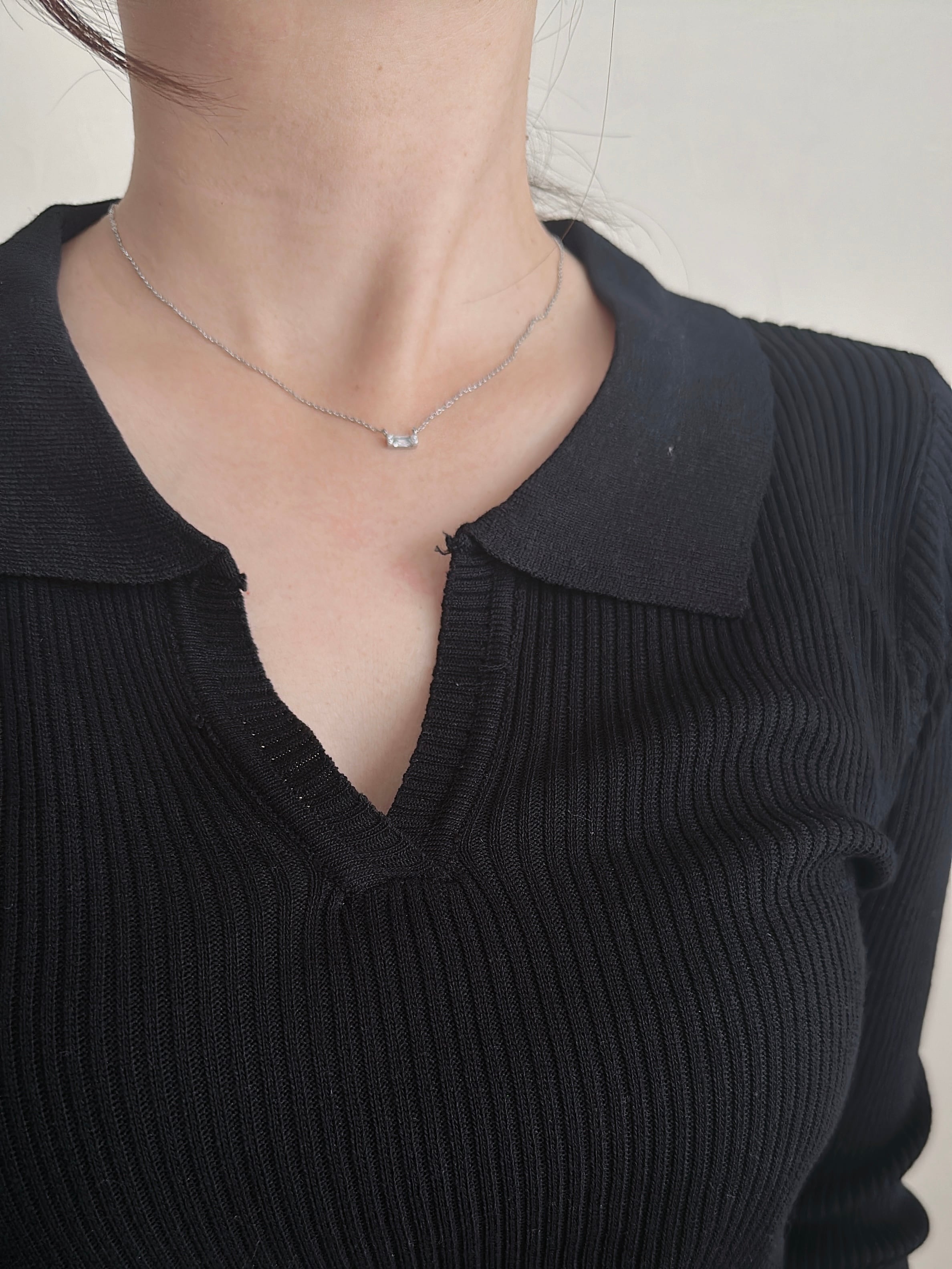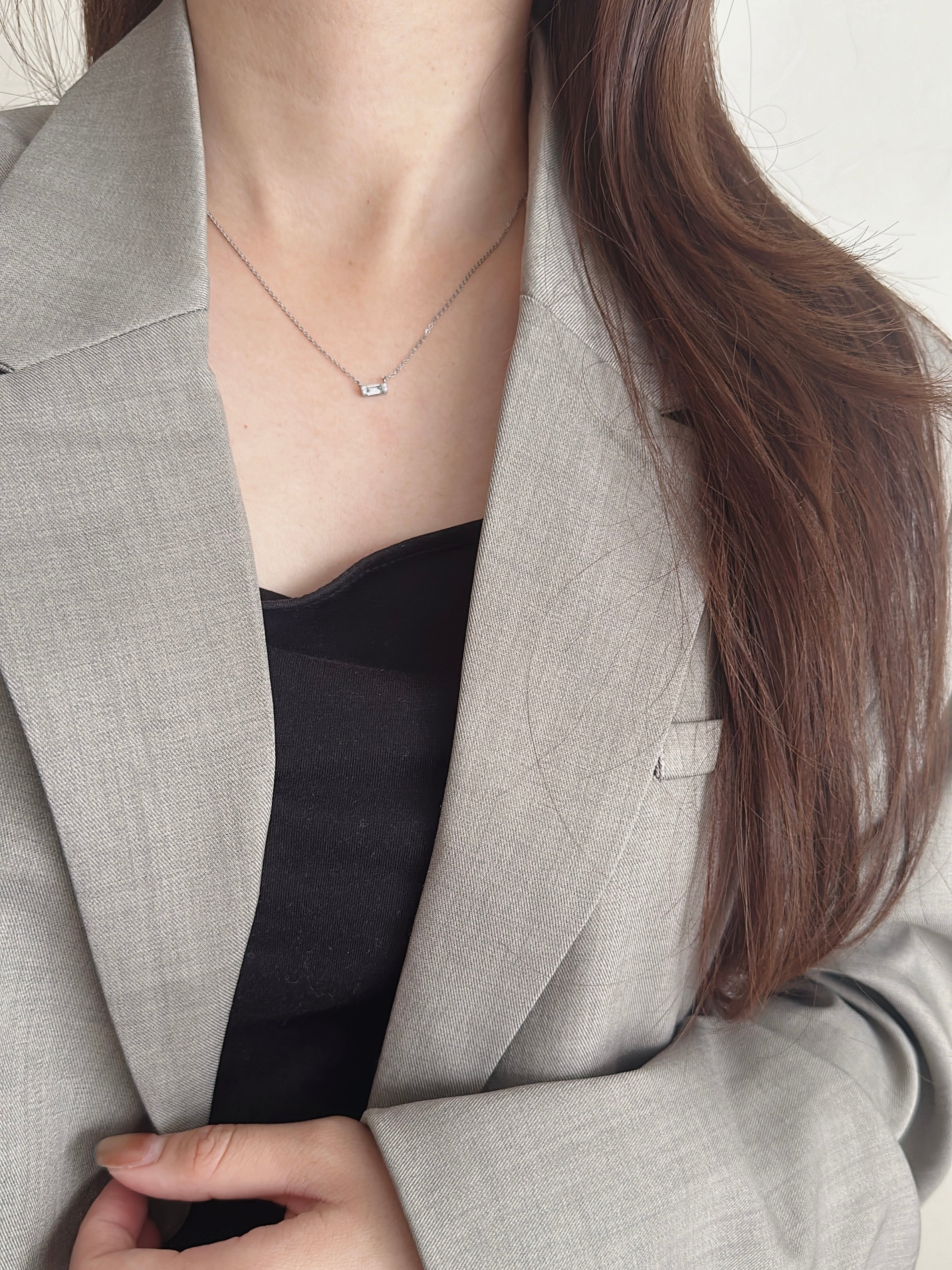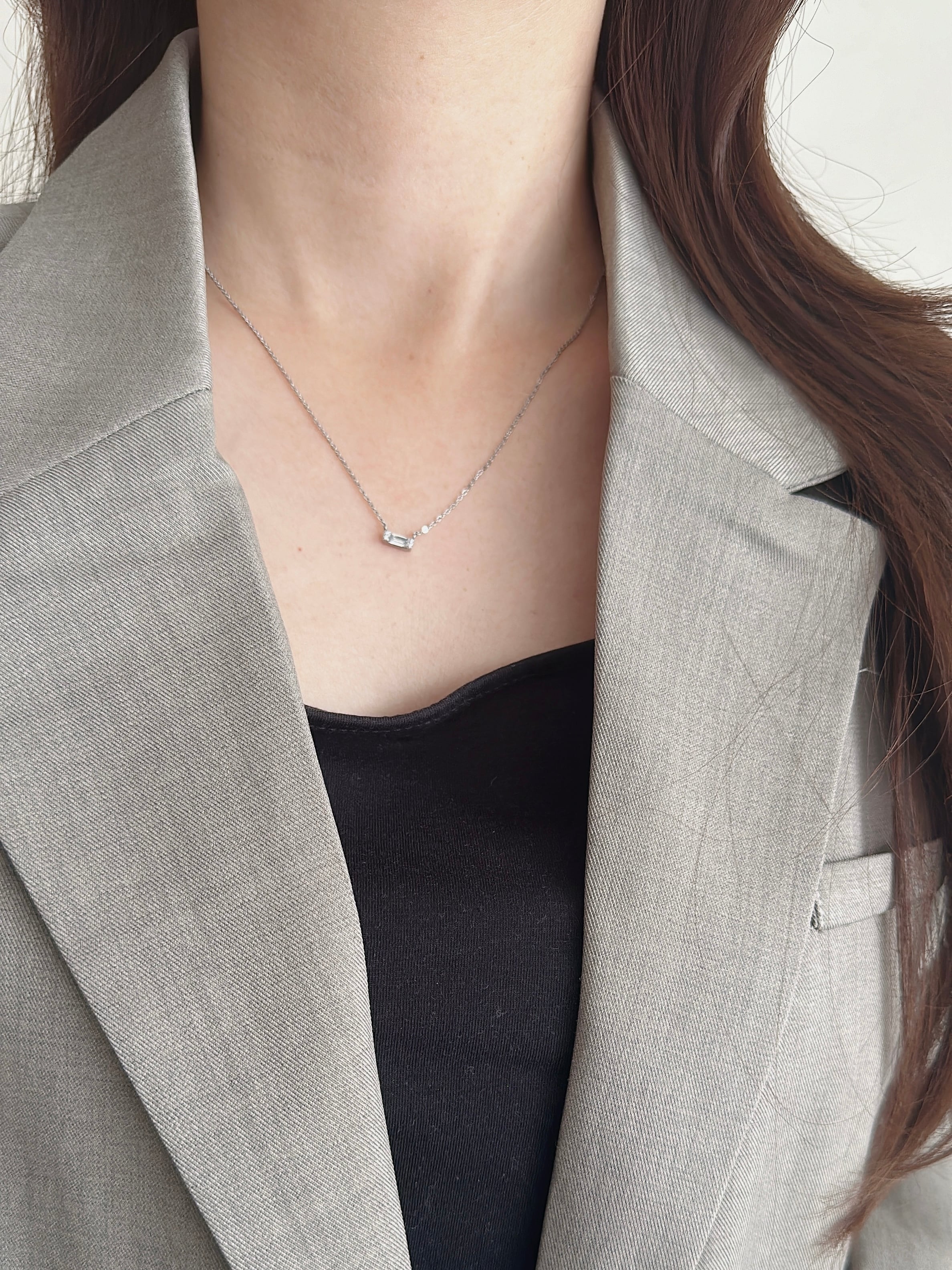 小ぶりの長方形のジルコンを1粒あしらった、ペンダントネックレス。