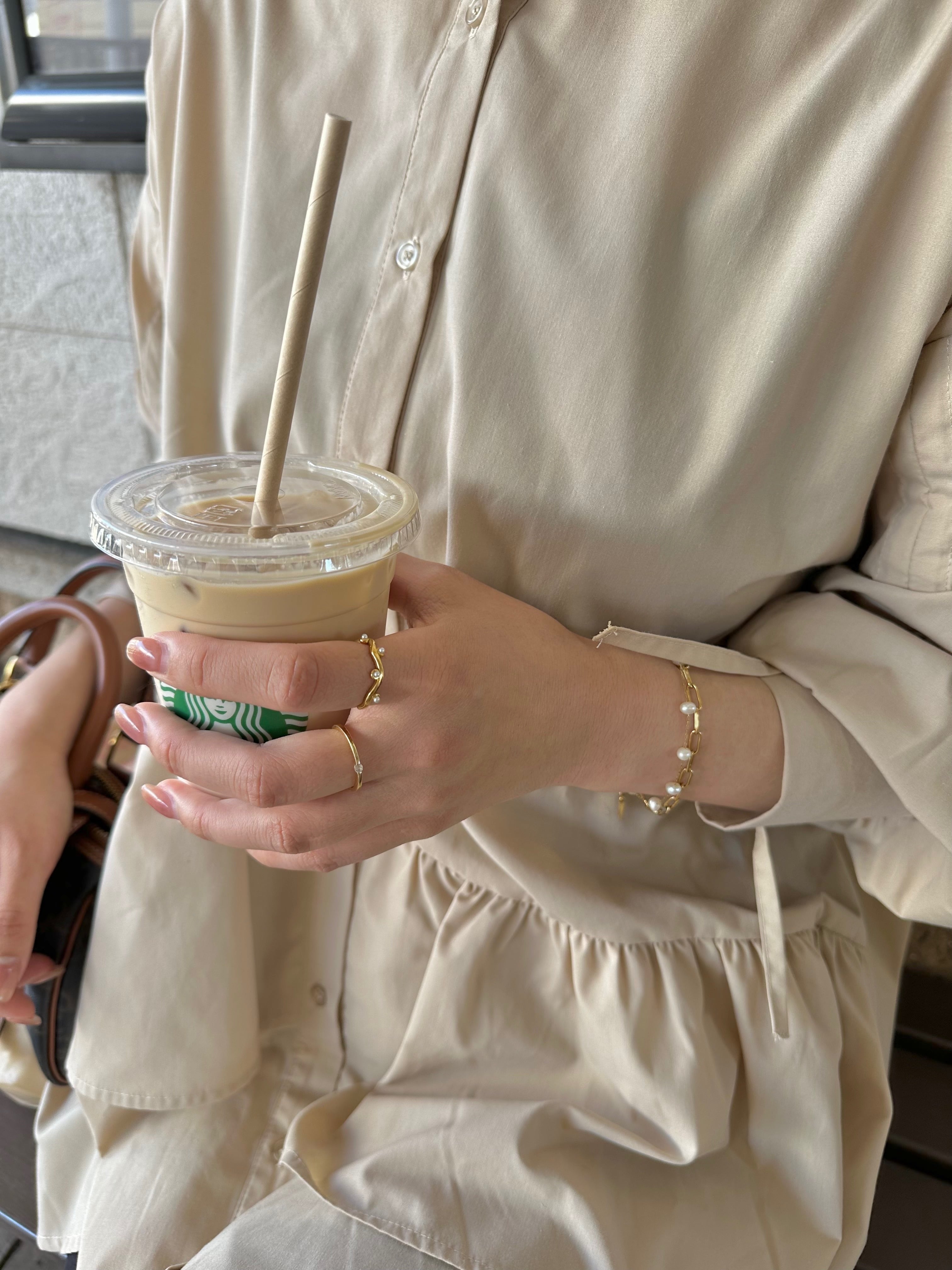 パールの輝きが手元に上品な輝きを添え、