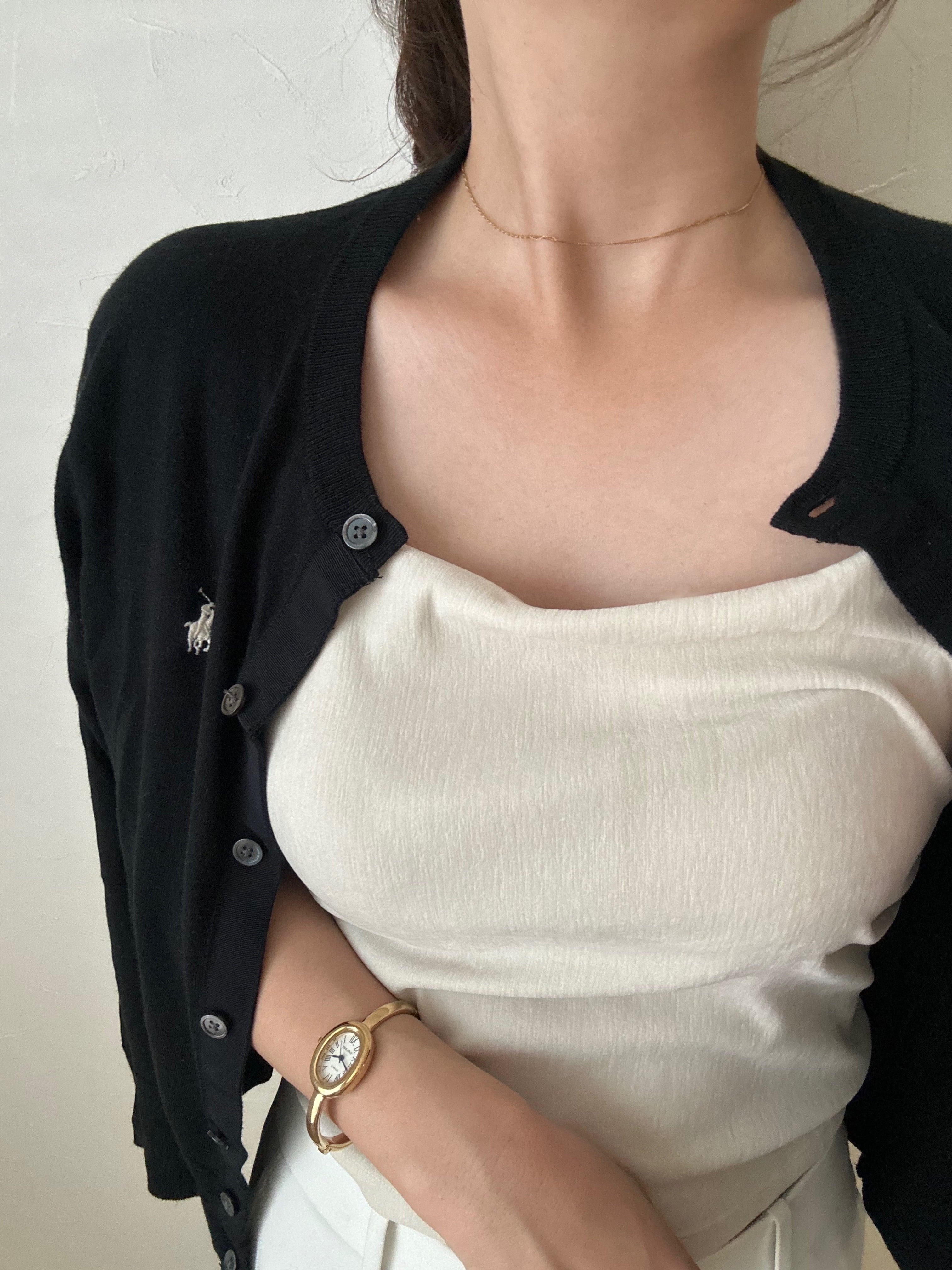 繊細に編み込まれたチェーンが、さりげなく輝きを放ち、どんなスタイルにも合わせやすい万能なアイテムです。