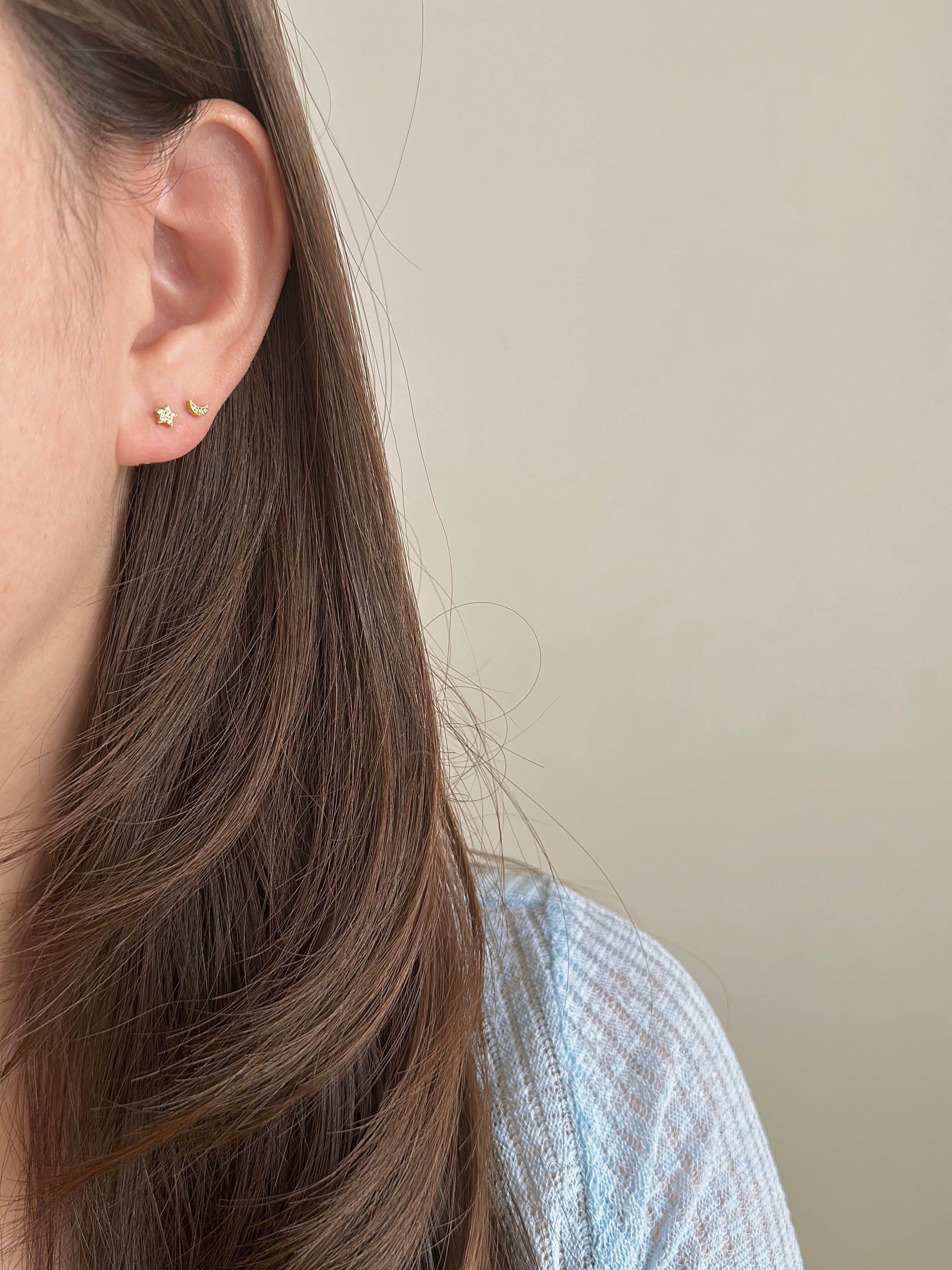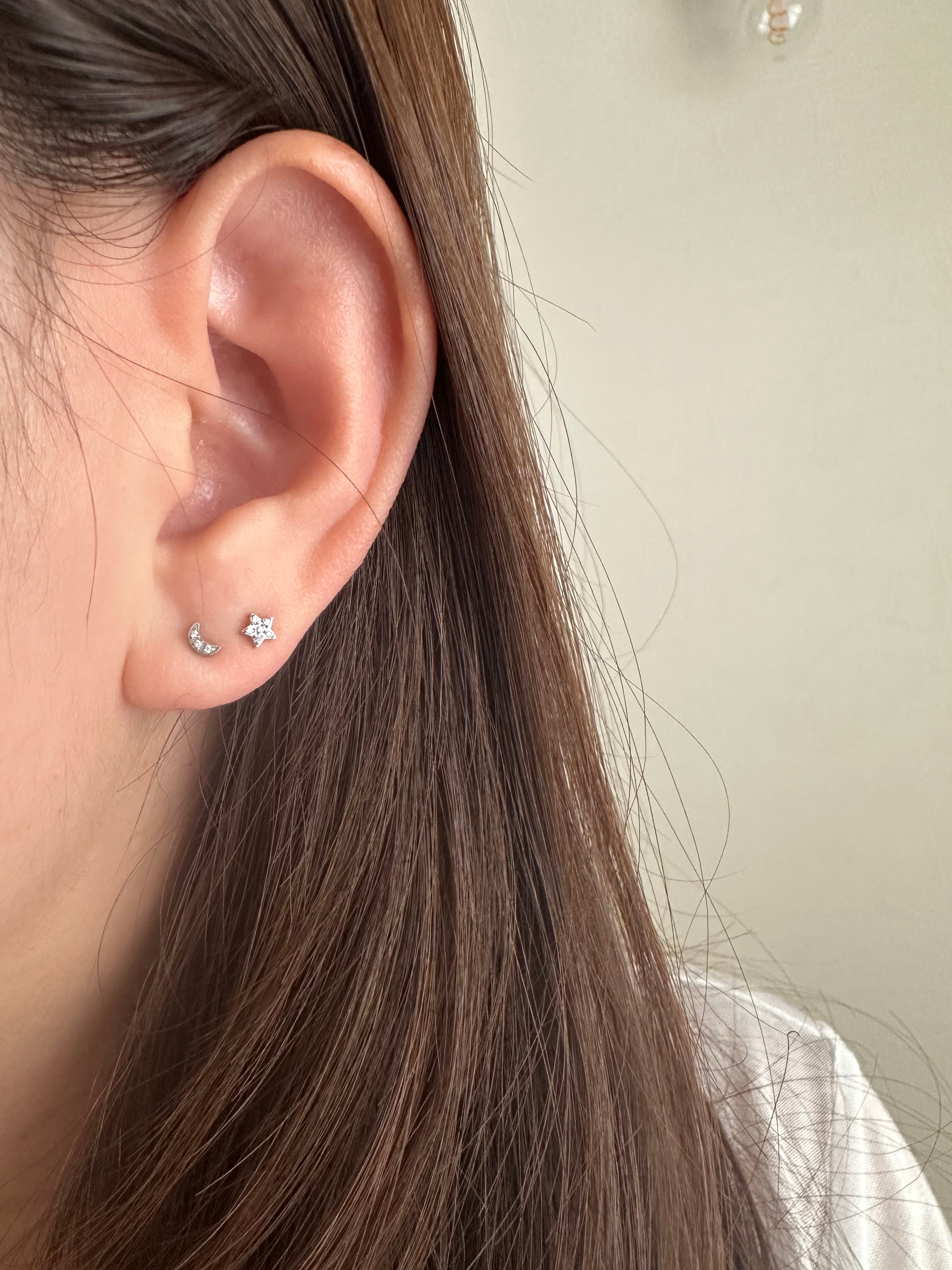 小さな星型のモチーフが、耳元で静かに光を放ち、どんなシーンにも自然に溶け込む上品なアクセントを提供します。