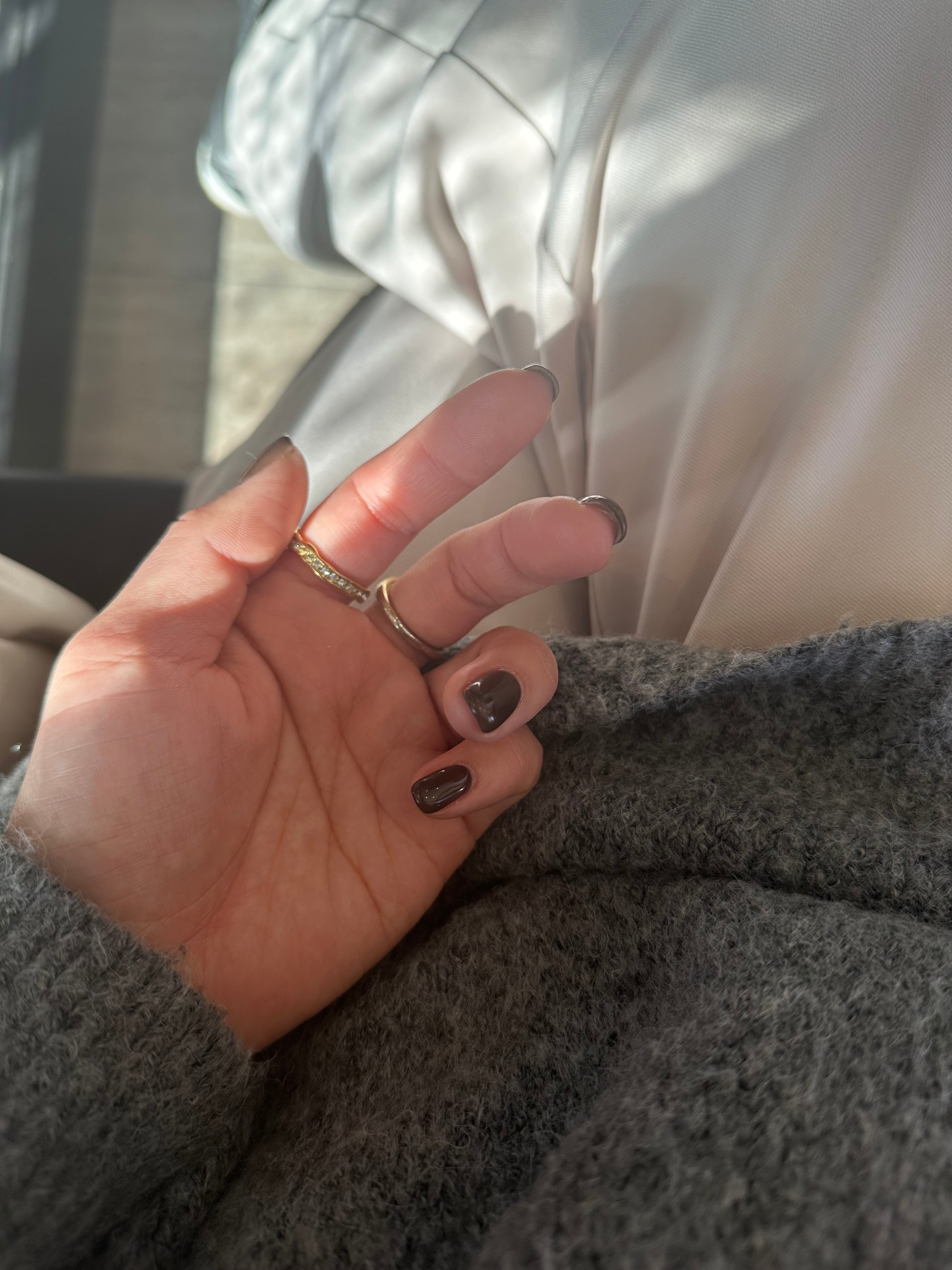 上品なラインストーンと柔らかなニュアンスフォルムが指先を彩る「SS ラインストーンニュアンスリング」。ゴールドとシルバーの2色展開で、それぞれが異なる魅力を放ち、さりげなく手元に華やかさを添えます。